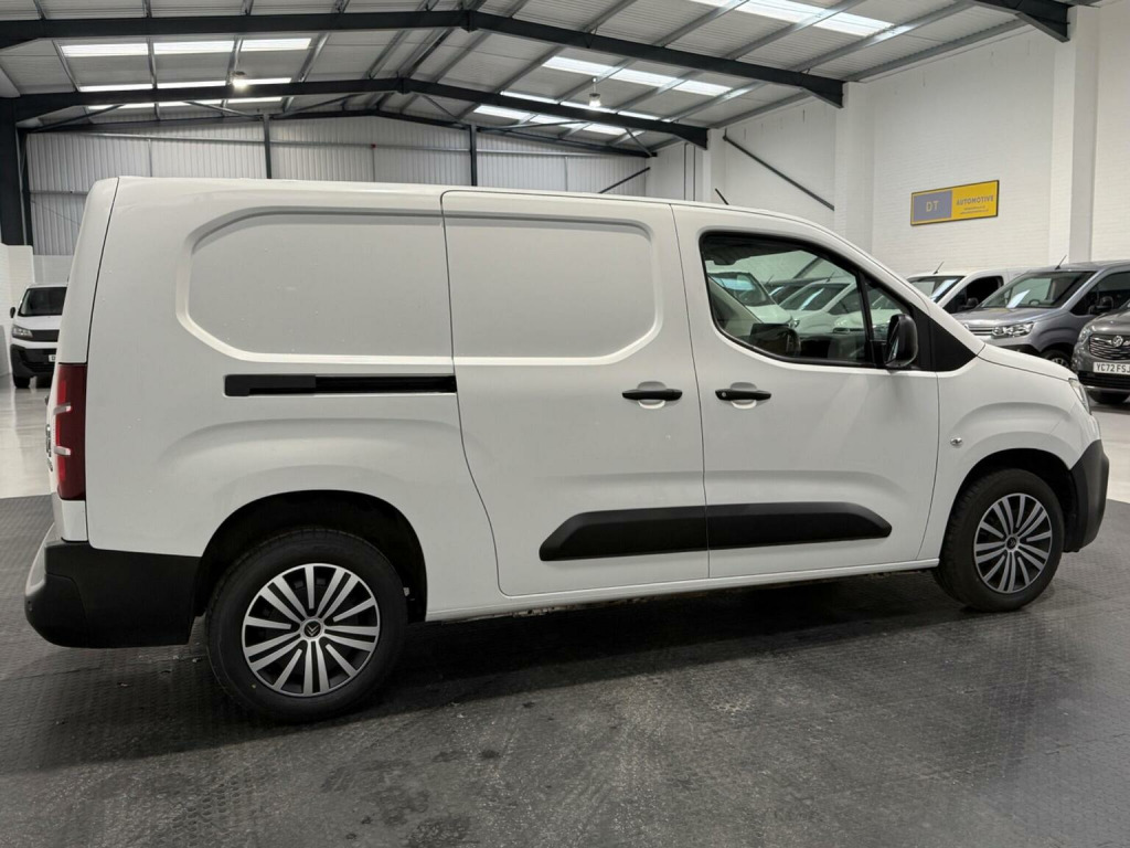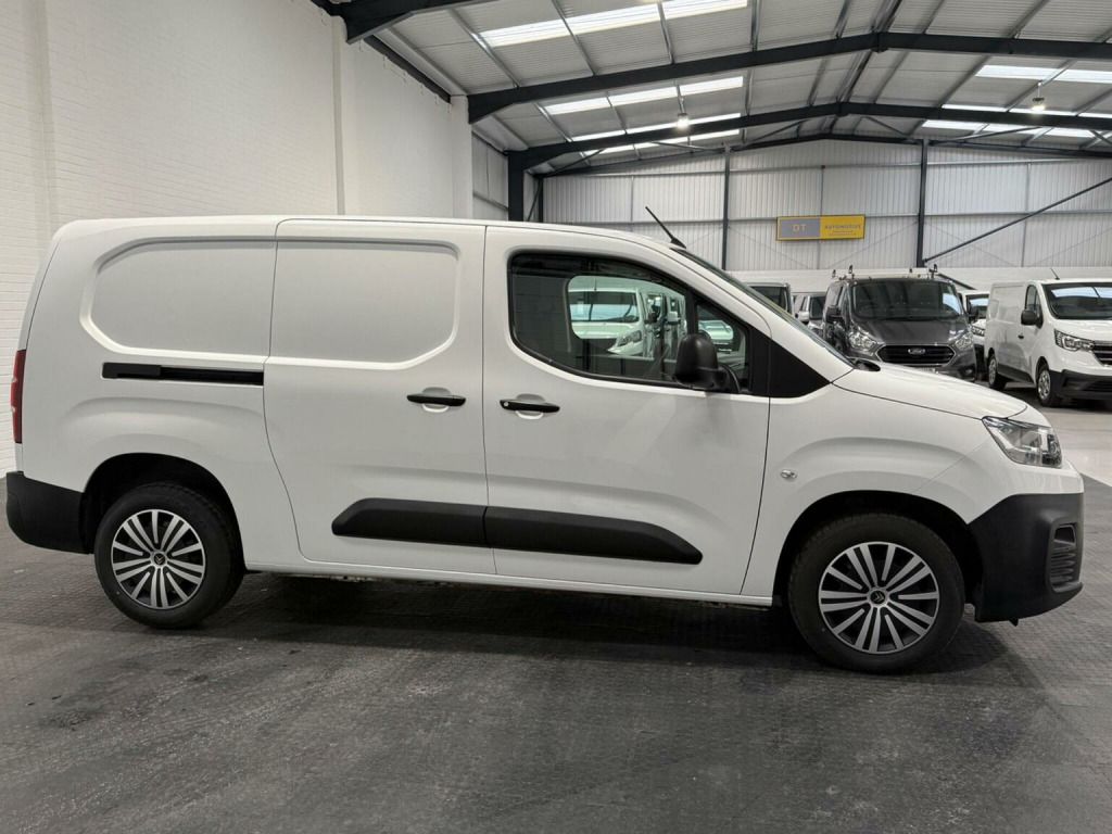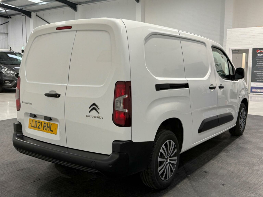 ***VIEWING BY APPOINTMENT ONLY*** DT AUTOMOTIVE ARE PLEASED TO OFFER THIS FANTASTIC, Citroen Berlingo 1.5 BlueHDi 950 Enterprise XL LWB Euro 6, THE VAN WILL COME FRESHLY SERVICED SO ITS ALL UP TO DATE READY TO BE PUT TO WORK. Boasting a full service history and only one previous owner, this 2021 Citroen Berlingo 1.5 BlueHDi 950 Enterprise XL LWB Euro 6 (s/s) 6dr is a well maintained example. This practical vehicle is powered by an efficient 1.5 litre diesel engine and meets Euro 6 emissions standards. It comes with a 6 month warranty for your peace of mind, and its MOT is valid until January 2027. Notable features include height adjustable halogen headlights with automatic on, rear parking sensors for easier manoeuvring, and air conditioning to keep you comfortable. Inside, youll find an 8in colour touchscreen with Citroen Connect DAB radio, Bluetooth handsfree, and USB and Aux in sockets. This Berlingo offers impressive fuel economy, achieving up to 54 miles per gallon, which is excellent for a vehicle of its size. Its low CO2 emissions also contribute to its economical running costs. Furthermore, the generous cargo volume of 4400 litres makes it an ideal choice for those needing ample space for goods or equipment, highlighting its superiority over many similar vehicles.