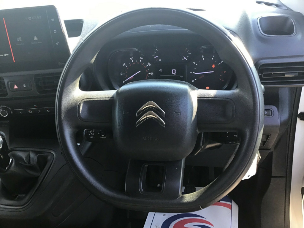 ** SERVICE HISTORY PLUS CAMBELT REPLACED ** Introducing the 2021 Citroen Berlingo 1.5 BlueHDi 950 Enterprise XL Panel Van, a reliable and efficient commercial vehicle with only 67149 miles on the clock. This diesel-powered panel van is ULEZ compliant and boasts a gross weight of 2375kg, making it perfect for heavy-duty tasks. With MOT valid until 25/09/2026, you can trust in its roadworthiness for years to come. Inside, you'll find 3 spacious seats and a range of modern features, including a 8in Colour Touchscreen with Citroen Connect DAB Radio, Bluetooth Handsfree, and USB Socket. The 6 doors provide easy access to the cargo area and are great for loading and unloading. If you're in need of a dependable workhorse, this Citroen Berlingo is the perfect choice for you. v socket in dashboard, 8in colour touchscreen with citroen connect dab radio - bluetooth handsfree - usb socket and aux-in jack, citroen connect box with emergency and assistance system, 16in steel wheel - twirl wheel trim, electric windows - front with one touch operation, electrically folding - adjustable door mirrors with temperature sensors, lockable fuel cap, side rubbing strips, spare wheel - full size steel, 6 floor-mounted load securing rings, 6 way adjustable drivers seat - includes lumbar adjustment and under seat storage, air conditioning, cup holders for driver and passenger on either side of the dashboard, extenso modular folding passenger bench seat with pivoting writing table - storage under central seat - load through hatch in bulkhead and load protection cover compliant with iso27956, full steel bulkhead, hard plastic floor protection in cabin, offside sliding side loading door, overhead storage shelf in cabin, storage - door pockets with bottle holders, top box dashboard storage compartment, twin sliding side loading doors, two speed intermittent front windscreen wipers, unglazed asymmetric rear doors opening to 180 degrees, airbags - driver, alarm - parametric and volumetric - thatcham category 1 approved alarm with tilt sensor, automatic activation of hazard warning lights on major deceleration, automatic electronic parking brake, dashboard mounted central locking push buttons and auto locking above 7 mph, door opening warning light and audible lights-on warning, esc with hill start assist - abs braking including eba and ebfd, remote central locking with deadlocks, rolling code transponder immobiliser, seat belt unfastened warning - driver, visible vehicle identification number at base of windscreen, cruise control with programmable speed limiter, electric power assisted steering with reach and rake adjustable steering column, multi-function on-board trip computer, rear parking sensors, rev counter with maintenance and gear efficiency - gei - indicators, tyre pressure monitor, front fog lights, height adjustable halogen headlights, high level third brake light