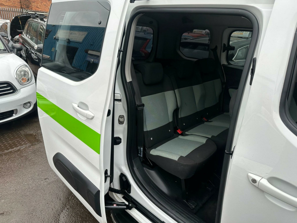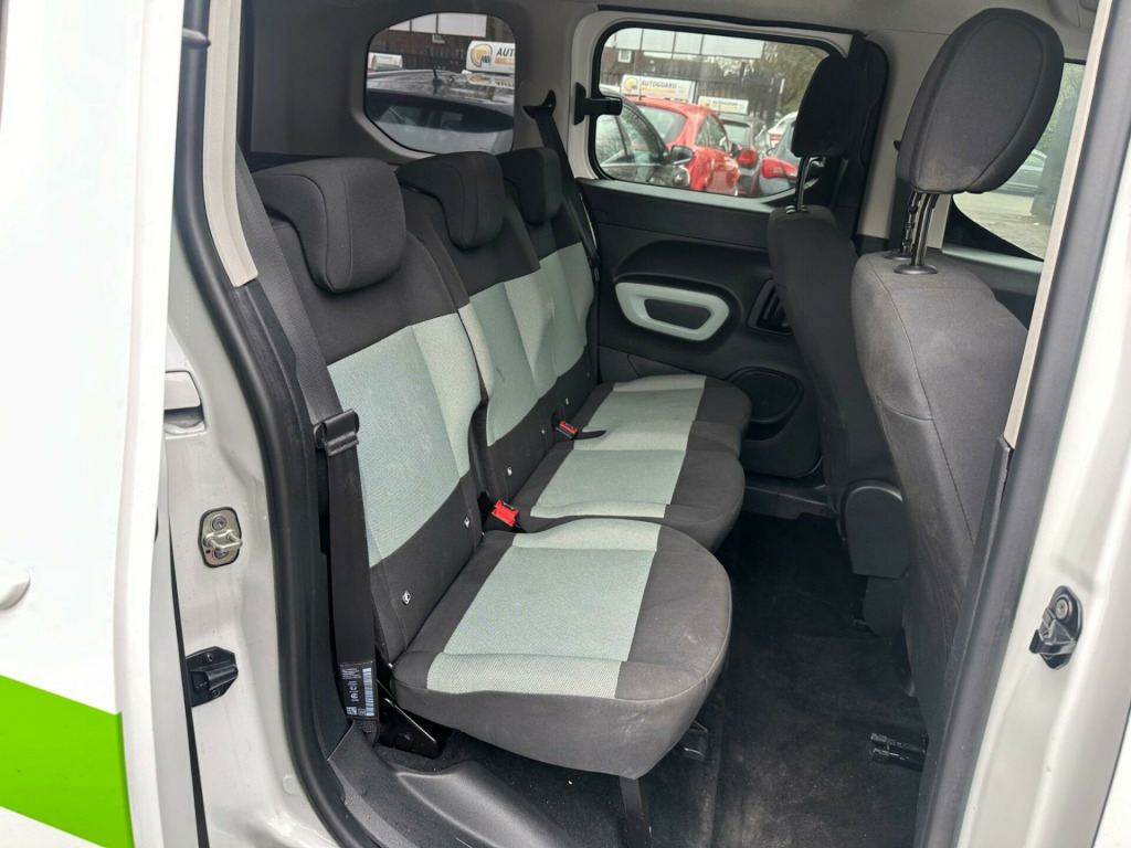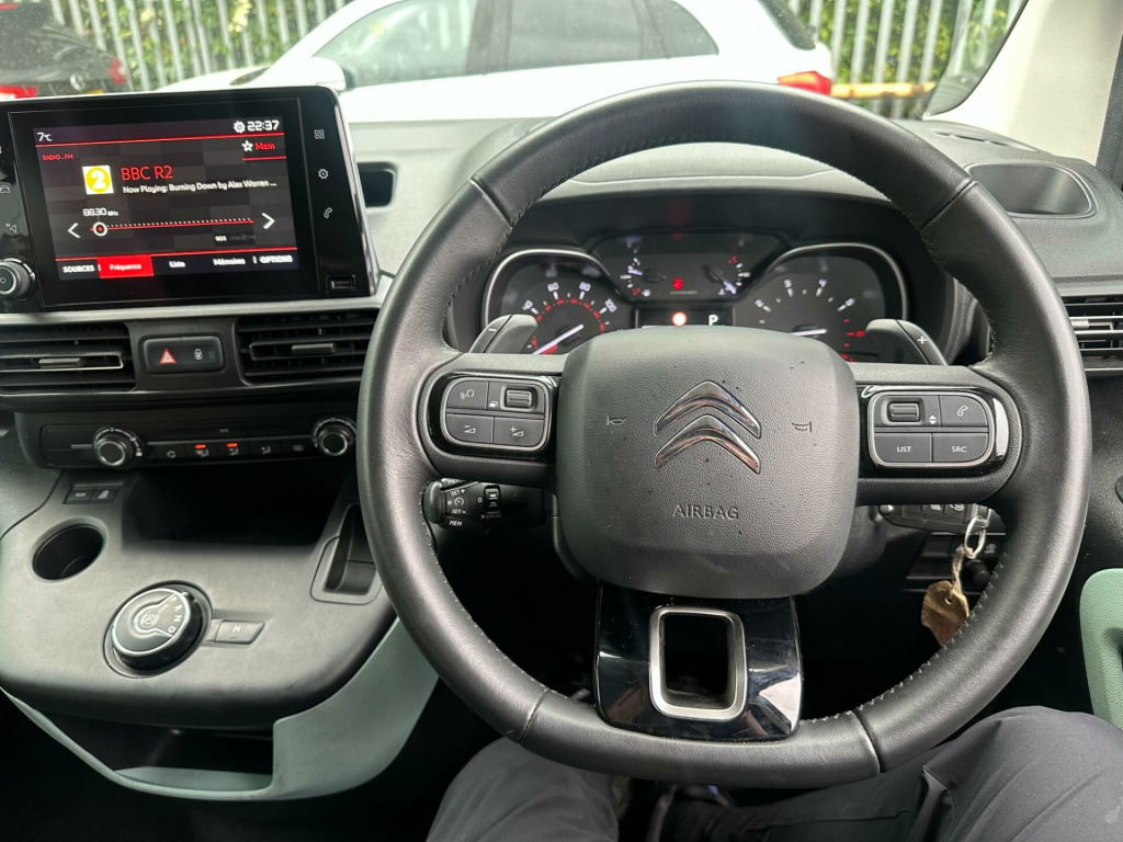 With only 18885 miles on the clock, this 2019 Citroen Berlingo is a smart buy. As a Feel trim variant with a 1.5L Diesel engine and Euro 6 emission class, this Berlingo offers a practical and efficient driving experience. The vehicle is equipped with several features, including Mirror Screen with Apple CarPlay and Android Auto, a Bluetooth Telephone Facility, Manual Air Conditioning, and a Visibility Pack that includes automatic headlights.This Berlingo stands out with its large boot space, making it ideal for families or anyone needing extra room for luggage or equipment. Its low CO2 emissions mean it's kinder to the environment and potentially cheaper to run than similar vehicles with higher emissions. Furthermore, acceleration from 0-62mph in 11.0 seconds means that this vehicle is responsive and suitable for both city driving and longer journeys. v socket, 16in steel wheel - twirl wheel trim, 2 height parcel shelf, 6 speakers radio - mp3 compatible, 8.0in capacitive touchscreen, abs- anti-lock braking system with ebd - electronic braking distribution and eba - emergency braking assistance, airbags - adaptive driver and front passenger airbags, airbags - driver and front passenger side airbag, airbags - front and rear curtain airbags, airbumps, automatic door locking when moving off, automatic hazard light activation upon heavy brake application, bluetooth telephone facility, body - colour door mirrors, body colour exterior door handles, bumpers - body coloured front, child locking functionality on rear doors, dab radio - digital audio broadcasting, daytime running lights, deadlocking, door mirrors - electric and heated, driver and passenger dashboard mounted cup holders, esp - electronic stability program with hill start assist, electric front windows, electric power assisted steering with reach and rake adjustable steering column, electronic code immobiliser, fixing rings in load area x4, front fog lights with cornering function, front interior light with reading spotlights x2 and rear interior light with timer, front optimised safety headrests and rear retractable headrests x3 height adjustable, front three - point retractable seatbelts with force limiters, front windscreen wiper with multi-speed settings, full width front overhead storage shelf, gear shift indicator, headlights - halogen, headlights left on audible warning, heated rear windscreen, isofix child seat fittings x3 in the second row, leather steering wheel, manual air conditioning, mirror screen - apple carplay - android auto, multifunction trip computer, nemo grained interior ambiance, pop - out opening rear side windows, programmable cruise control with speed limiter, rear windscreen wiper - triggered automatically in reverse gear, remote central locking, row 2 underfloor storage compartments, safety pack, seatbelt unfastened audible and visual alert for front and rear seats, seating - height adjustable driver seat, seats - 1-3 - 2-3 split folding rear, steel spare wheel, top box glove compartment, two sliding side doors, two tier light signature, tyre pressure sensors, usb socket, visibility pack, white fog light surrounds and airbump coloured surround on 1st capsule