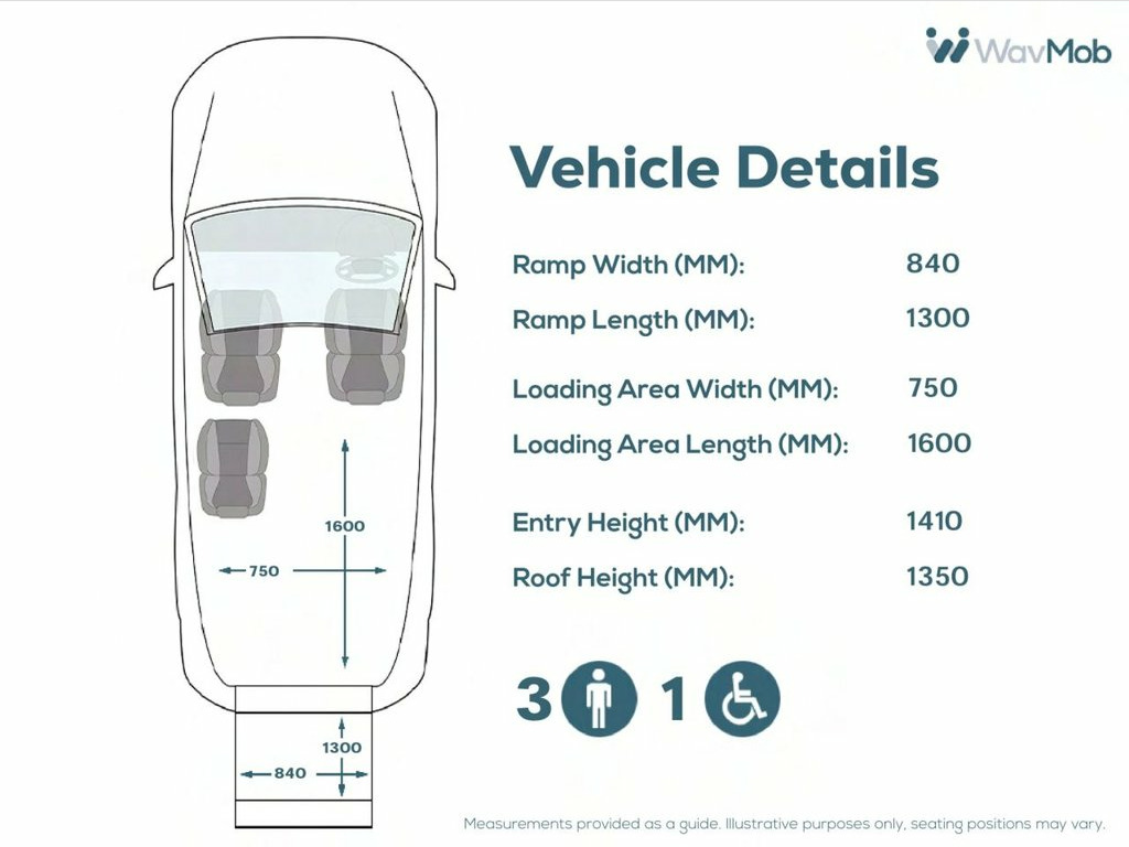 This Automotive Group converted Citroen Berlingo Wheelchair Accessible Vehicle (WAV) has 3 Seats (2 Front and 1 Rear). Equipment includes Wheelchair Ramp, Electric Winch, Air Conditioning, Electric Front Windows, Electric Adjustable Wing Mirrors, Power Steering, Remote Central Locking, Tinted Rear Windows.