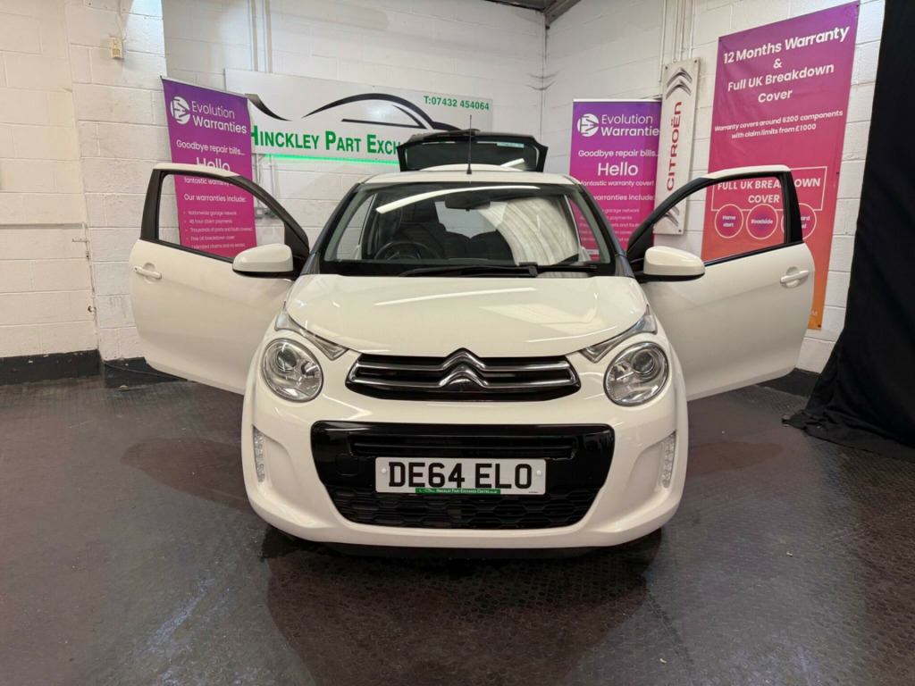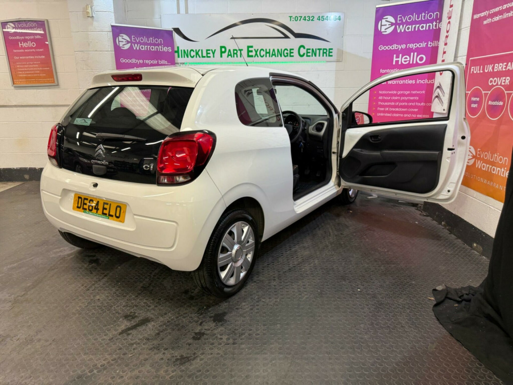 CITROEN C1 FEEL - 3 DOOR - White - 68935 / £20 a Year Tax / Group 7 Insurance / Comes With a New 12 Months MOT (No Advisories) / Just Been Serviced SERVICE INTERVALS @3393 @9882 @15157 @15323 @38388 @68935 @69049/Tyres Very Good / AIR CON / Great Runner / Fully Valeted Including Polish and Seats Cleaned. Note ***** Please See Option Which Reads ''Other Vehicles From This Dealer'' To See Our Range Of Peugoet 107s and Citreon C1s as We Specialize in these Vehicles or Look at our Website www.hinckleypartexchangecentre.co.uk ............. We Are Open 7 Days A Week For Appointment Only, Call Or Email Us Any Time To Arrange a Viewing, We Are A Part Exchange Site Which Sells Maintained Dealer Part Exchanges. We Inspect All Vehicles To Ensure Vehicles Are Correct Before Leaving Site. location is based in Hinckley, Leicestershire, LE101PN, We have a large well lit and heated showroom to keep you out of the elements along with a outside area for all your viewing needs or any special requirements. Check out our full stock see:- ***( www.Hinckleypartexchangecentre.co.uk )*** Hinckley Part Exchange Centre the family run first time driver specialists with 50+ vehicles in stock. Solely dealing in Peugeot 107, Citroen C1 & Toyota Aygo since 2015. We have over 30 years experience in the vehicle trade and will be sure to find you the right car to suit your budget and requirements. All vehicles leave our showroom with a new MOT (no advisories) a service and full vehicle check from our in house full-time dedicated mechanic. All vehicles are HPI clear and we do not sell any category damaged vehicles so you can be sure your getting the right vehicle for you or your loved one. Up to 12 months FREE warranty and the best after care and service available.. 12V Socket, 15in Wheel Covers - Comet, ABS - Anti-Lock Braking System, Air Conditioning, Airbags - Driver, Airbags - Front Passenger with Cut-Off Device, Black Front Bumper Trim, Black Interior Door Handles, Bluetooth Handsfree, Bluetooth Media Streaming, Body Colour Door Handles, Body Colour Painted Rear Bumper, Body Coloured Door Mirrors, Central Locking - Remote, Cornering Stability Control, Courtesy Reading Lights - Front, Cup Holders, Curtain Airbags, Deadlocks, Drivers and Passengers Sunvisor with Courtesy Mirror, EBFD - Electronic Brakeforce Distribution, ESP - Electronic Stability Programme, Electric Fabric Roof, Emergency Brake Assistance, Folding Front Seats with Return to Position, Front Electric Windows, Front Lateral Airbags, Front Passenger Airbag, Gloss Black Grille with Chrome Chevrons, Glovebox, Height-Adjustable Driver Seat, Height-Adjustable Steering Wheel, Hill Start Assist, ISOFIX - Child Seat Anchorage Points - Outer Rear, LED Daytime Running Lights - DRLs, Multi-Function On-Board Trip Computer, Pollen Filter, Puncture Repair Kit, Radio - DAB, Radio - RDS with MP3 Player, Rear 50-50 Split-Folding Seats, Rear Head Restraints, Rear Spoiler, Satin Grey Centre Console, Satin Grey Lower Dashboard, Seat Belt Unfastened Warning, Speakers x4, Steering Wheel Mounted Controls, Touch Drive Interface - 7in with Mirror Screen, Transponder Immobiliser, Tyre Pressure Monitor, USB Socket, Variable Power Assisted Steering. Part service history