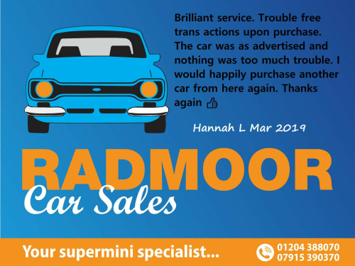 For sale is a 2016 Citroen C1 1.0 VTi Feel Hatchback with only 74600 miles on the clock. This petrol-powered 3-door, 4-seat vehicle is ULEZ compliant and comes with an MOT valid until 15/10/2026. Features include 2 keys, remote locking with deadlocking, hill assist, DAB radio, Bluetooth connectivity, and more. With a Euro 6 engine producing 68 ps, this compact hatchback is an efficient and practical choice for city driving. Don't miss out on this well-maintained car that's ready to hit the road. Radmoor Car Sales is a family business, has been trading over 45 years. Please look at our 5* reviews on Autotrader. We also have great reviews on Google. Feel free to ring 01204 388070, text 07915 390370,or email radmoorcarsalesgmail.com for a prompt reply( check your SPAM folder, we reply to all emails). The car you are looking at today and are thinking of buying tomorrow, is the car someone else looked at yesterday and they want to buy it today. We are on the A665 Radcliffe Moor Rd, Radcliffe, Bury opposite Bradley Fold Garden Centre. If you are using Google Maps App, just search for Radmoor Car Sales for our marker Why not have a look at our LIKE page on Facebook. Join us to see new and exciting fresh stock. keys, air conditioing with chilled glovebox, bluetooth, dab radio, daytime running lights, electric front windows, height adjustable drivers seat, isofix, media player with satnav & bluetooth, remote locking with deadlocking, usb and aux. input, hill assist