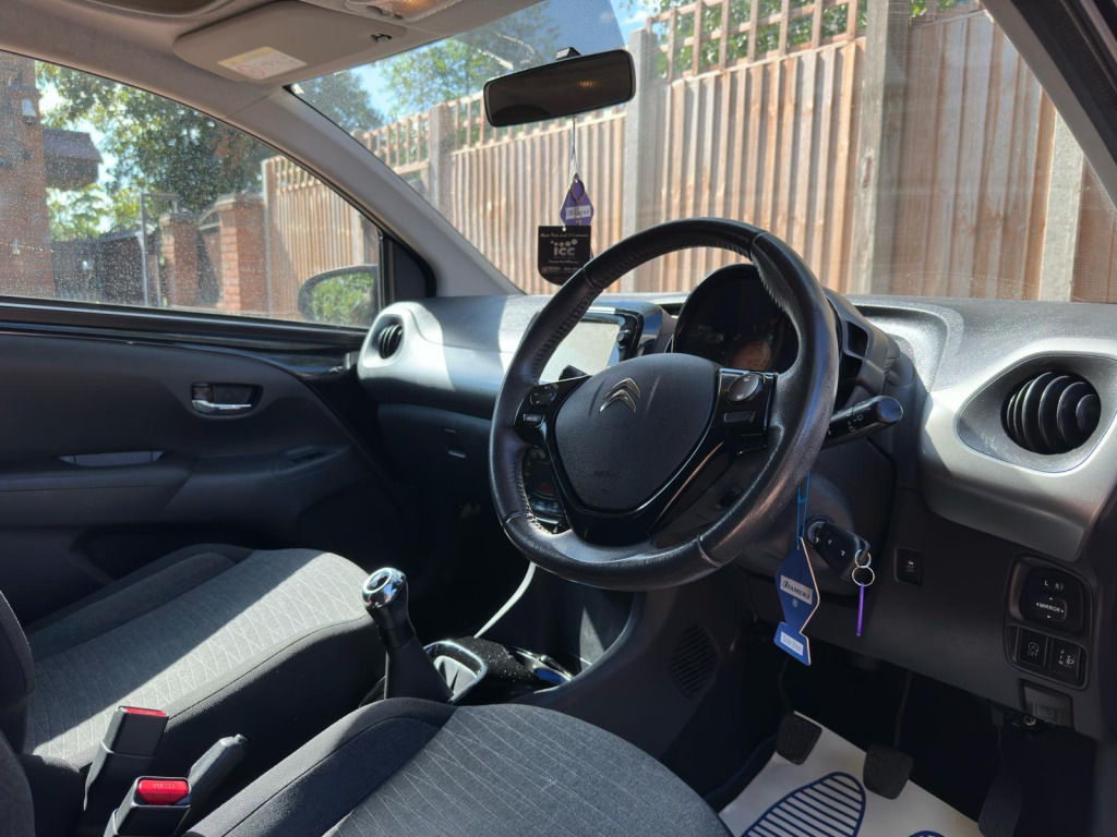 With only 42000 miles on the clock and just two previous owners, this 2014 Citroen C1 VTi Flair represents a great find. As a C1 Flair, it comes with a 1.0L petrol engine and a host of features to enhance your driving experience. The vehicle's history is clear, providing peace of mind. The exterior is enhanced with colour-coded roof and door mirrors, along with a stylish black fabric roof.Inside, you'll find air conditioning to keep you comfortable, plus Bluetooth for media streaming and hands-free calls. This C1 stands out with its exceptional fuel economy of 74 mpg, meaning lower running costs compared to similar cars. It also falls into a low insurance group, making it an affordable option for many drivers. Furthermore, its low CO2 emissions contribute to reduced road tax and a smaller environmental footprint. A 12 month's Warranty will be provided with the car, also 12 month AA Roadside Assistance for your peace of mind v socket, 15in alloy wheels - planet, abs - anti-lock braking system, air conditioning, airbags - driver, airbags - front passenger with cut-off device, bluetooth handsfree, bluetooth media streaming, body colour door handles, body colour painted rear bumper, central locking - remote, cornering stability control, courtesy reading lights - front, cup holders, curtain airbags, dark tinted rear windows, deadlocks, drivers and passengers sunvisor with courtesy mirror, ebfd - electronic brakeforce distribution, esp - electronic stability programme, electric fabric roof, electrically adjustable heated door mirrors, emergency brake assistance, fabric roof - black, front electric windows, front lateral airbags, front passenger airbag, gear knob - gloss black surround, gear knob - leather with chrome inserts, gloss black centre console, gloss black front bumper trim, gloss black grille with chrome chevrons, glovebox, height-adjustable driver seat, height-adjustable steering wheel, hill start assist, isofix - child seat anchorage points - outer rear, led daytime running lights - drls, leather steering wheel, multi-function on-board trip computer, pollen filter, puncture repair kit, radio - dab, radio - rds with mp3 player, rear 50-50 split-folding seats, rear head restraints, rear spoiler, rev counter, reversing camera, roof colour door mirrors, satin chrome interior door handles, satin grey lower dashboard, seat belt unfastened warning, speakers x4, speed limiter, steering wheel mounted controls, touch drive interface - 7in with mirror screen, transponder immobiliser, tyre pressure monitor, usb socket, variable power assisted steering, window trims - chrome