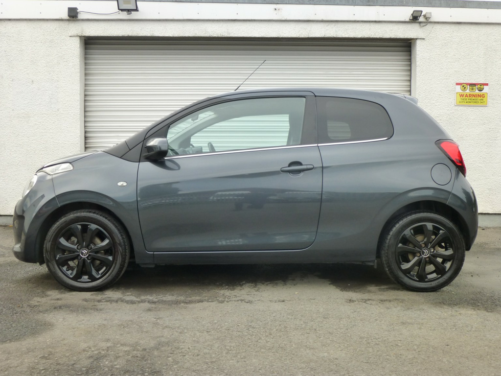 citroen c1 1.2 pure tech flair edition euro6 ulez compliant low miles just 39,000 with its history booklet [2 x sets of keys] handbooks 7 inch Touch Drive Interface DAB Digital Radio MP3 Audio System with 4 Speakers Bluetooth Handsfree USB Socket and Steering Mounted Controls, Rev Counter Reversing Camera Trip Computer Tyre Pressure Monitor 15 inch planet Alloy Wheels in gloss black Black A and B Pillars Chrome Lower Window Trim Insert exterior Chrome Pack Dark Tinted Rear Windows Electrically Adjustable Heated Door Mirrors Front Electric Windows Gloss Black Front Bumper Trim Gloss Black Grille with Chrome Chevrons Rear Spoiler Space Saver Spare Wheel Elliptical Lights, LED Daytime Running Lights [DRLs] Air Conditioning Cup Holders Drivers and Passengers Sunvisor with Courtesy Mirror Folding Front Seats with Return to Position Front Courtesy Reading Lights Gloss Black Centre Console Glovebox Height-Adjustable Driver Seat Height-Adjustable Steering Wheel Leather Gear Knob with Chrome Inserts and Gloss Black Surround Leather Steering Wheel Rear 50-50 Split-Folding Seats, Rear Head Restraints Rear Parcel Shelf Satin Chrome Interior Door Handles Satin Grey Lower Dashboard Speed Limiter Variable Power Assisted Steering ABS with Electronic Brakeforce Distribution and Emergency Braking Assistance multiple Airbags Automatic Door and Boot Locking when in Motion Cornering Stability Control Electronic Stability Control Front Seat Belt Pre-Tensioners with Force-Limiters Hill Start Assist Rear ISOFIX Mounting Points Remote Central Locking with Deadlocks Transponder Immobiliser Warning System for all Unfastened Seat Belts just 39000 miles with history boot tidy plastic tray all important parcel shelf local p/x is super condition inside and out looks and drives superb 5spd manual transmission fully colour coded in citroens ktb] gallium grey metallic, , , , , , , , , , hpi report available on all vehicles