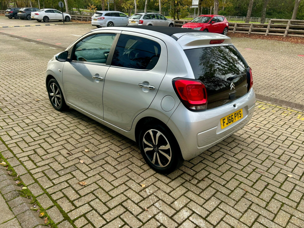 This 2016 Citroen C1 1.2 PureTech Flair Airscape 5dr Petrol Manual Euro 6 (82 ps) is a stylish and efficient hatchback with only 43831 miles on the clock. With its economical petrol engine and ULEZ compliance, it's the perfect city car. This model comes with a valid MOT until 13/12/2025 and boasts 4 seats and 5 doors, making it practical for everyday use. The 15in Alloy Wheels and sleek design with black A and B pillars give it a modern and sporty look. Inside, the 7 inch Touchscreen, DAB Digital Radio, and Bluetooth Handsfree ensure you're always connected and entertained on the go. This Citroen C1 truly stands out with its blend of style, performance, and practicality.  volt socket in cabin, 7 inch touchscreen, dab digital radio - mp3 audio system with 4 speakers - bluetooth handsfree - usb socket and steering mounted controls, 15in alloy wheels - planet, black a and b pillars, black centre wheel caps, body colour painted rear bumper, chrome lower window trim insert, chrome pack, dark tinted rear windows, electric fabric roof, electrically adjustable heated door mirrors, fabric roof - black, front electric windows, gloss black front bumper trim, gloss black grille with chrome chevrons, hinged rear windows, puncture repair kit, rear spoiler, abs with electronic brakeforce distribution and emergency braking assistance, airbags, cornering stability control, electronic stability control, front seat belt pre-tensioners with force-limiters, hill start assist, rear isofix mounting points, remote central locking with deadlocks, transponder immobiliser, warning system for all unfastened seat belts, air conditioning, cup holders, drivers and passengers sunvisor with courtesy mirror, front courtesy reading lights, gloss black centre console, glovebox, height-adjustable driver seat, height-adjustable steering wheel, interior door and boot locking, leather gear knob with chrome inserts and gloss black surround, leather steering wheel, rear 50-50 split-folding seats, rear head restraints, rear parcel shelf, satin chrome interior door handles, satin grey lower dashboard, elliptical lights, led daytime running lights - drls, rev counter, reversing camera, speed limiter, trip computer, tyre pressure monitor, variable power assisted steering