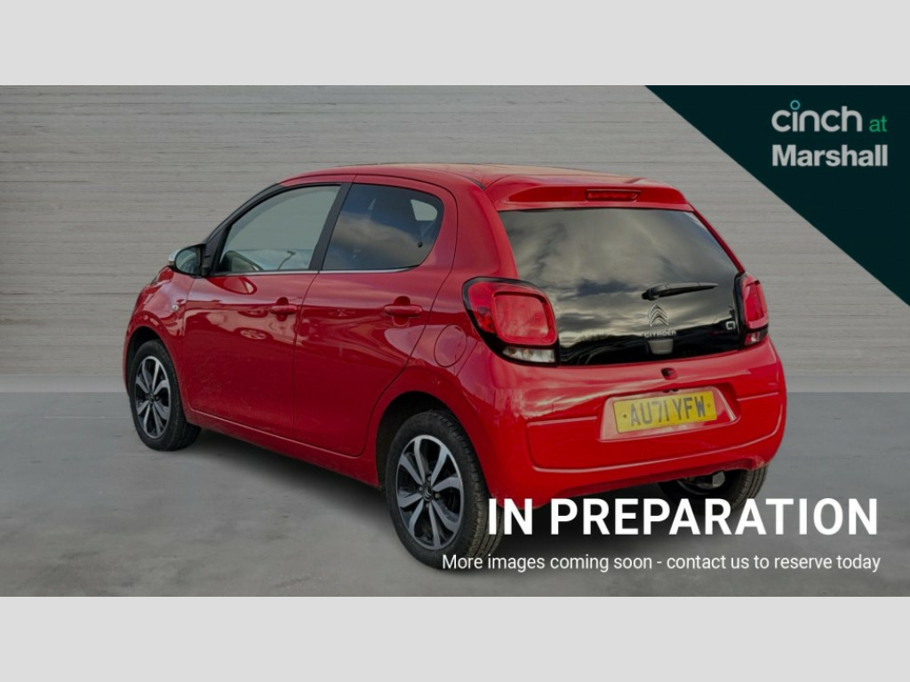 Citroen C1 1.0 VTi 72 Shine 5dr 7'' Touch Drive interface with Mirror Screen (compatible with Apple CarPlay & Android Auto), Audible warnings for lights on, opened doors and handbrake, Rev counter, Reversing camera, Speed limiter, Speedometer and fuel gauge, Stop/start system, Tailgate, Trip computer, Variable power steering, DAB digital radio, MP3 audio system with 4 speakers, bluetooth handsfree, USB socket and steering mounted controls, Black coloured A & B pillars, Black front bumper insert, Body colour door handles, Body colour rear bumper, Chrome chevrons with gloss black surround, Dark tinted rear windows, Electric front windows, Electrically heated and adjustable external rear view mirrors, Elliptical lights, Hinged rear windows, LED daytime running lights, Rear side wing doors, Rear spoiler, Rear wiper, Roof aerial, Third brake light, Variable front intermittent wipers, 12 volt front socket, 2 seat bench in 2nd row, 50/50 split folding rear seat, Cupholders, Dashboard storage, Driver and passenger sunvisor with courtesy mirror, Front courtesy reading lights, Front door pockets, Front head restraints, Gloss black multimedia and gear lever surround with satin grey upper dashboard and matt black air vent surround, Glovebox, Height adjustable drivers seat, Height adjustable steering wheel, Interior door and boot locking, ISOFIX child seat anchorage points attached on outer rear seats, Leather gear knob with chrome insert and gloss black surround, Leather steering wheel, Pollen filter, Rear headrests, Rear parcel shelf, Rear storage pockets, Satin chrome interior door handles, Single front passenger seat, Zebra cloth upholstery, 2 rear 3 point safety belts, 3-point front seatbelts, ABS with Electronic brakeforce distribution and Emergency braking assistance, Airbags - Driver and front passenger with cut off device, front lateral and curtain, CSC - Cornering stability control, Electronic stability control, Front seatbelt pretensioners with force limiters, Hill start assist, Mono-tone horn, Passenger airbag deactivate switch, Tyre pressure monitor, Unfastened seat belt warning on all seats, High-frequency remote control central locking with deadlocks, Transponder immobiliser, Gloss black centre console, Black wheel centre caps