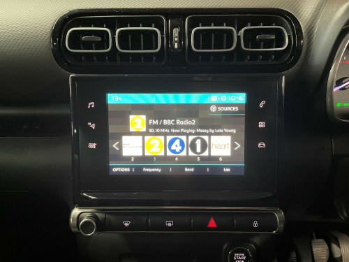 This 2019 Citroen C3 Aircross 1.2 PureTech GPF Flair SUV has only 49000 miles on the clock. This spacious SUV runs on petrol, making it an efficient car to drive. With a powerful 130 PS engine and smooth manual transmission, this Euro 6 compliant vehicle offers you a great drive The interior boasts modern features including 12V sockets in the front and rear, auxiliary socket, Bluetooth handsfree and media streaming with USB socket and jack, and Citroen Connect DAB Radio with 6 speakers. All of our vehicles go through a detailed mechanical and safety inspection and are fully serviced with a 12 month MOT with no advisories prior to collection, uetooth handsfree and media streaming with usb socket and jack, citroen connect nav on 7in touchscreen with citroen connect box with emergency and assistance system, touchscreen - colour 7in, 17in alloy wheels - 4 ever - diamond cut, black exterior colour pack, dark tinted rear windows, ink black roof bars and mirror caps, immobiliser, keyless entry and start, steering wheel mounted controls, cruise control with speed limiter, rear parking sensors, top rear vision reversing camera, apple/android car play