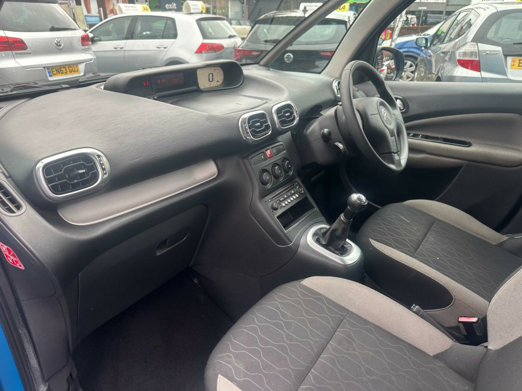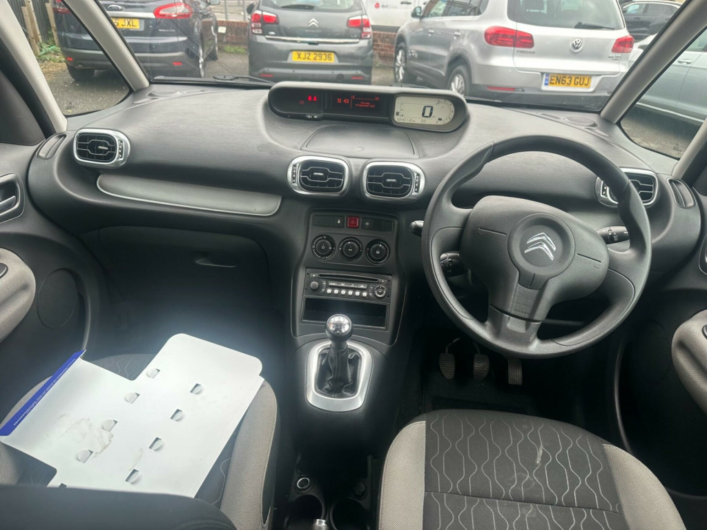Discover this exceptional 2014 Citroen C3 Picasso VTi VTR+ with remarkably low mileage for its year, having covered just 40,112 miles. This VTR+ model is powered by a reliable 1.4 litre petrol engine and comes equipped with the convenient Connecting Box system, offering Bluetooth connectivity for handsfree calls and music streaming. For your comfort, it also features air conditioning, ensuring a pleasant driving experience in all seasons.This particular C3 Picasso stands out due to its very low mileage, suggesting it has been used sparingly and well cared for. Furthermore, its placement in a low insurance group makes it an economical choice for many drivers, indicating lower running costs compared to similar vehicles. This combination of low mileage and affordable insurance makes this Citroen C3 Picasso a sensible and attractive option. v socket, 16in alloy wheels - blade, abs - anti-lock braking system, air conditioning, airbags - driver, audible lights on and key in ignition warning, automatic activation of hazard warning lights, automatic door and boot locking when in motion, auxiliary socket, black door handles, black panel night-time instrument lighting, bottle holder, bumpers - body coloured front, bumpers - chrome front insert, bumpers - chrome rear inserts, central locking - remote, child lock control, child lock control and indicator, chrome interior detailing, connecting box - bluetooth system, cruise control, curtain airbags, deadlocks, digital rev counter, digital speedometer, door handles - chrome, eba - electronic brake assistance, ebfd - electronic brakeforce distribution, electric windows - front with one touch operation and anti pinch on drivers side, electrically adjustable door mirrors, exterior temperature display, front courtesy reading lights, front fog lights, front lateral airbags, front passenger airbag, gei - gear efficiency indicator, headlights - halogen, height and reach adjustable steering wheel, height-adjustable driver seat, isofix - child seat anchorage points - outer rear, led daytime running lights - drls, laminated windscreen, lashing eyes in the boot, lockable fuel cap, luggage compartment - adjustable floor space, luggage compartment - lighting, multi-function on-board trip computer, oil level indicator, panoramic windscreen, pollen filter, puncture repair kit, radio - rds with cd and mp3 player, safety pack, scented air freshener, seat belt unfastened warning, seats - 1-3 - 2-3 split folding flat tiltable and sliding rear, seats - height adjustable front passenger, side rubbing strips - black, spare wheel - full size, speakers x6, speed limiter - adjustable, steering wheel mounted controls, storage - central dashboard lidded compartment, storage - drawer under front passengers seat, storage - front door pockets, storage - front seat back pockets, usb socket, upper dashboard - soft-touch effect, variable power assisted steering