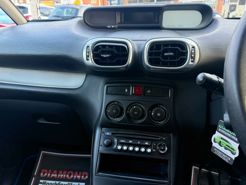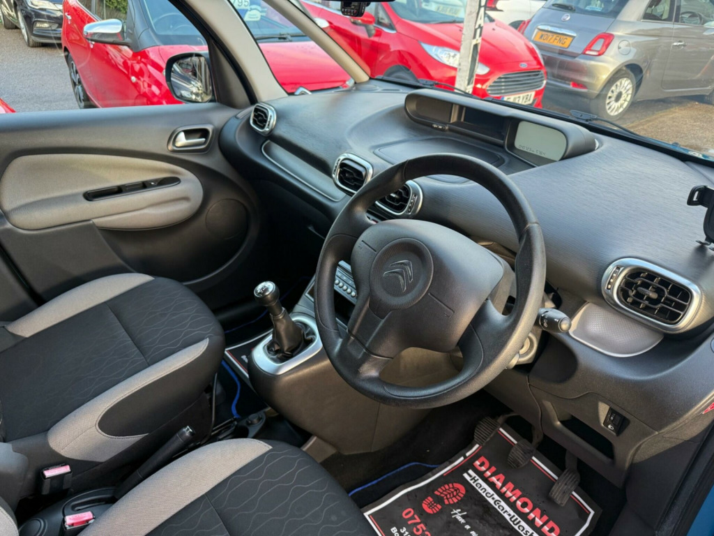 Discover this 2014 Citroen C3 Picasso VTi VTR+ with exceptionally low mileage for its year, having covered just 40,723 miles. This practical 1.4 litre petrol model, presented in the VTR+ trim, comes equipped with essential features to enhance your driving experience. Stay comfortable in all conditions with its air conditioning system, and enjoy seamless connectivity thanks to the Connecting Box which includes a Bluetooth system for handsfree calls and music streaming.This particular C3 Picasso stands out due to its remarkably low mileage, suggesting it has been used sparingly and well cared for. Furthermore, its placement in a low insurance group indicates that running costs are likely to be more affordable compared to many other vehicles in its class. These factors combine to make this Citroen C3 Picasso VTi VTR+ a sensible and appealing choice for those seeking a reliable and economical compact car. v socket, 16in alloy wheels - blade, abs - anti-lock braking system, air conditioning, airbags - driver, audible lights on and key in ignition warning, automatic activation of hazard warning lights, automatic door and boot locking when in motion, auxiliary socket, black door handles, black panel night-time instrument lighting, bottle holder, bumpers - body coloured front, bumpers - chrome front insert, bumpers - chrome rear inserts, central locking - remote, child lock control, child lock control and indicator, chrome interior detailing, connecting box - bluetooth system, cruise control, curtain airbags, deadlocks, digital rev counter, digital speedometer, door handles - chrome, eba - electronic brake assistance, ebfd - electronic brakeforce distribution, electric windows - front with one touch operation and anti pinch on drivers side, electrically adjustable door mirrors, exterior temperature display, front courtesy reading lights, front fog lights, front lateral airbags, front passenger airbag, gei - gear efficiency indicator, headlights - halogen, height and reach adjustable steering wheel, height-adjustable driver seat, isofix - child seat anchorage points - outer rear, led daytime running lights - drls, laminated windscreen, lashing eyes in the boot, lockable fuel cap, luggage compartment - adjustable floor space, luggage compartment - lighting, multi-function on-board trip computer, oil level indicator, panoramic windscreen, pollen filter, puncture repair kit, radio - rds with cd and mp3 player, safety pack, scented air freshener, seat belt unfastened warning, seats - 1-3 - 2-3 split folding flat tiltable and sliding rear, seats - height adjustable front passenger, side rubbing strips - black, spare wheel - full size, speakers x6, speed limiter - adjustable, steering wheel mounted controls, storage - central dashboard lidded compartment, storage - drawer under front passengers seat, storage - front door pockets, storage - front seat back pockets, usb socket, upper dashboard - soft-touch effect, variable power assisted steering