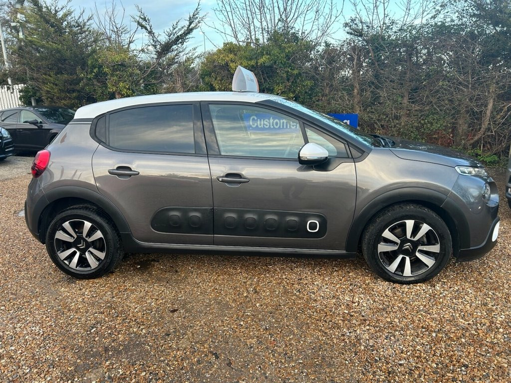 This 2019 Citroen C3 Flair boasts a full service history, with 7 services recorded, its last service completed on 27th November 2025 at 62,975 miles, offering you peace of mind. This Euro 6 compliant 1.2L petrol model comes with 2 keys, a 3 month warranty and a 12 month MOT provided on purchase. The Flair trim level includes desirable features such as automatic air conditioning with climate control, a reversing camera with rear parking assistance, and rear parking sensors. Stay connected and entertained with Bluetooth handsfree and media streaming, a USB socket, and Mirror Screen with MirrorLink and Apple CarPlay. The Citroen C3 Flair is designed to be economical and affordable to run, highlighted by its impressive fuel economy of 52 mpg. Its low CO2 emissions and low insurance group further indicate that this vehicle is a more cost effective choice compared to similar models. This well maintained and feature packed C3 Flair offers a practical and enjoyable driving experience. Mica Cloth - Grey, Cumulus Grey with Opal White Roof, 12 Volt Socket in Cabin, 16in Alloy Wheels - Matrix, 2 Rear ISOFIX Mounting Points - Outside , 7 inch Touchscreen, ABS with Electronic Brakeforce Distribut, Airbump - Black, Airbump Coloured Highlight, Alarm, Auto-Dimming Electrochrome Rear View Mir, Automatic Air Conditioning, Automatic Lights and Windscreen Wipers, Bluetooth Handsfree and Media Streaming , Body Colour Painted Door Handles, Boot Light, Citroen Connect DAB Radio with 6 Speaker, Coffee Break Alert, ConnectedCAM Citroen, Cruise Control with Speed Limiter, Cupholders, Dark Tinted Rear Windows, Driver - Front Passenger - Front Lateral, Drivers - Passengers and Rear Seats Unfa