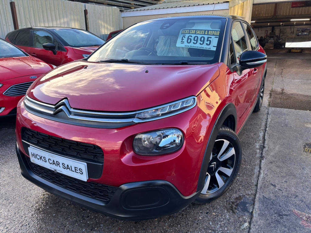 2019 69 CITROEN C3 1.2 PURETECH FEEL VERY CLEAN EXAMPLE LOW ROAD TAX NICE SPEC ONLY 77,000 SSH PX WELCOME FINANCE OPTIONS AVAILABLERemote Central Locking, Electric Windows, power Mirrors, ABS, Traction Control, Power Steering, Drivers Airbag, Passenger Airbag, Side Airbags, Alarm, Immobiliser 5 door hatch finished in met red clean example nice spec with parking sensors and more only 77,000 service history just had a full service including a new mot on sale low road tax ideal first car px welcome credit and debit cards taken warranty included cheap run please call for more information finance options available other cars available new arrival