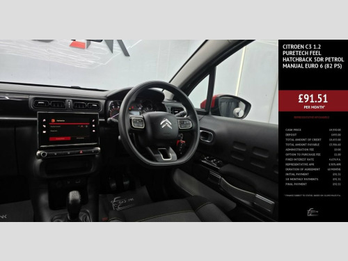 Enjoy every journey in the Citroën C3, a car that perfectly blends bold design, everyday comfort, and advanced technology. Its distinctive look, with 16" Matrix Alloy Wheels, contrasting Onyx Black Roof, and LED Daytime Running Lights, makes it stand out from the crowd wherever you go. Inside, the cabin is designed for comfort and convenience, featuring a 7" Touchscreen with Apple CarPlay & MirrorLink, Bluetooth Handsfree & Media Streaming, and Automatic Air Conditioning to keep you connected and comfortable at all times. Driving is effortless thanks to Cruise Control with Speed Limiter, Lane Departure Warning System, Hill Start Assist, and Variable Power Steering, ensuring a smooth and safe experience every time you're on the road. 12 Volt Socket in Cabin, 16in Alloy Wheels - Matrix, 2 Rear ISOFIX Mounting Points - Outside , 7 inch Touchscreen, ABS with Electronic Brakeforce Distribut, Automatic Air Conditioning, Bluetooth Handsfree and Media Streaming , Body Colour Painted Door Handles, Boot Light, Citroen Connect DAB Radio with 6 Speaker, Coffee Break Alert, Cruise Control with Speed Limiter, Cupholders, Driver - Front Passenger - Front Lateral, Drivers - Passengers and Rear Seats Unfa, Drivers and Passengers Sunvisor with Cou, Electric Child Locks, Electrically Adjustable - Heated Folding, Electronic Stability Control - ESC, Exterior Temperature Display, Five Three-Point Inertia Reel Seat Belts, Front Courtesy Readi