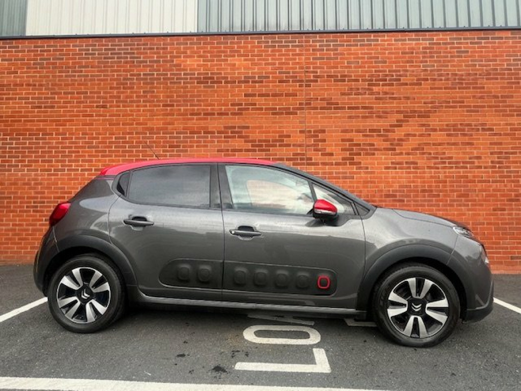 or sale is this stylish 2018 Citroën C3 Flair PureTech, finished in grey with striking red accents on the mirrors, roof and fog light covers, giving it a distinctive and modern look. This five-door hatchback has covered 69,000 miles and is powered by the economical yet lively 1.2 litre petrol engine, paired with a smooth manual gearbox, making it both fun to drive and efficient to run. , The Flair specification offers an impressive range of features designed for comfort and convenience. Inside, the touchscreen centre console puts everything at your fingertips, including satellite navigation to make journeys easier and more enjoyable. Reverse cameras and parking sensors make maneuvering simple, while modern connectivity keeps you in control on the move. , This C3 comes with alloy wheels, two keys, and the reassurance of being HPI clear. It has a full service history, highlighting that it has been well cared for, and it will be supplied with an MOT valid until August 2026. To add further peace of mind, it comes with a three-month warranty. , Supplied by a trusted family-run business with a proud reputation for customer care, this car is backed by consistent 5-star reviews on both Google and AutoTrader. Driving superbly and offering style, comfort and practicality in one package, this Citroën C3 Flair PureTech is an excellent choice for anyone looking for a modern, well-equipped hatchback with personality.