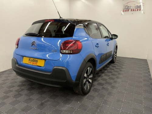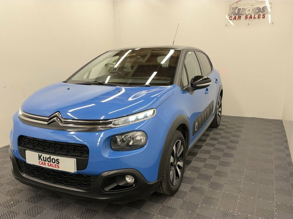 2019 CITROEN C3 1.2 PureTech 110 Flair 5dr - FINISHED IN STUNNING COBALT BLUE WITH ONYX BLACK ROOF. NO DEPOSIT FINANCE AVAILABLE FROM ONLY £147 per mth. 6 MTH WARRANTY INCLUDED. EACH VEHICLE COMES WITH A FREE HPI CLEAR REPORT AND 1 YEAR AA BREAKDOWN COVER. FULL SERVICE HISTORY [ 7 STAMPS ] LAST SERVICED @ 74744 MILES. 76000 MILES. MOT UNTIL 29/09/2026 . **ULEZ COMPLIANT** GREAT SPEC: REAR PARKING SENSORS, REAR PARKING CAMERA, CRUISE CONTROL, SAT NAV INTEGRATION, AIRCON, LED DAYTIME LIGHTS, AUTO LIGHTS, DAB RADIO, BLUETOOTH HANDS FREE, ELEC FRONT AND REAR WINDOWS AND ELEC MIRRORS, TRACTION CONTROL, USB AND AUX INPUT, ISOFIX REAR, 16'' ALLOY WHEELS. PREVIOUS NON SMOKER. FINANCE PACKAGES - With a number of lenders on board i am able to offer Finance to suit individual circumstances, including Sub Prime. All CARS ARE HPI CHECKED AND CLEAR. WARRANTY - At KUDOS CAR SALES every vehicle comes with a FREE 6 MONTH Warranty. Any repairs under warranty can be carried out at your local garage - Extended warranty available on request at extra cost. ***ALL PART EXCHANGE'S CONSIDERED*** 12 Volt Socket in Cabin, 16in Alloy Wheels - Matrix, 2 Rear ISOFIX Mounting Points - Outside , 7 inch Touchscreen, ABS with Electronic Brakeforce Distribut, Airbump - Black, Airbump Coloured Highlight, Alarm, Auto-Dimming Electrochrome Rear View Mir, Automatic Air Conditioning, Automatic Lights and Windscreen Wipers, Bluetooth Handsfree and Media Streaming , Body Colour Painted Door Handles, Boot Light, Citroen Connect DAB Radio with 6 Speaker, Cobalt Blue with Onyx Black Roof, Coffee Break Alert, ConnectedCAM Citroen, Cruise Control with Speed Limiter, Cupholders, Dark Tinted Rear Windows, Driver - Front Passenger - Front Lateral, Drivers - Passengers and Rear Seats Unfa, Drivers and Passen