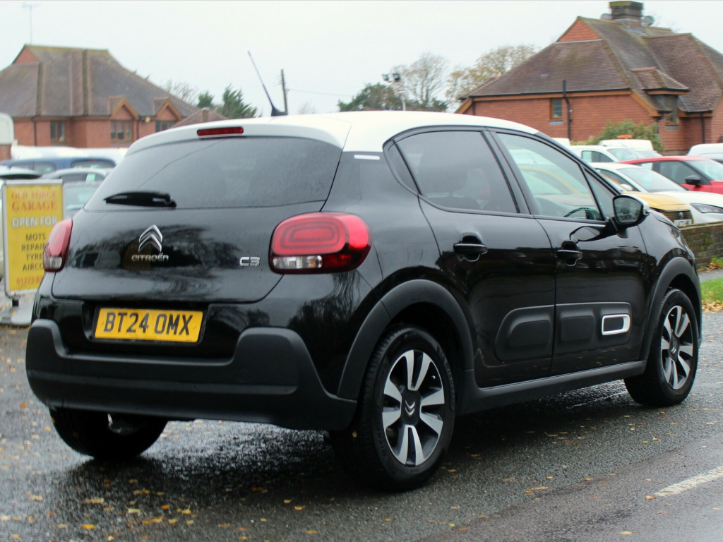 This 2024 Citroen C3 1.2 PureTech PLUS Hatchback 5dr Petrol EAT6 Euro 6 (s/s) (110 ps) with only 19700 miles is a stylish and reliable vehicle that is perfect for city driving. With a spacious interior and 5 seats, this hatchback is perfect for families or those who regularly have passengers. The 5 doors provide easy access to the comfortable and well-equipped interior, which includes features such as 1 USB connection, 12V socket, Citroen Connect DAB Radio with 6 speakers, and 16in alloy wheels. The 3D rear lights signature adds a modern touch to the vehicle's design. Powered by a petrol engine, this car is ULEZ compliant, making it an environmentally friendly option. With its sleek design and practical features, this Citroen C3 is the perfect choice for those looking for a reliable and efficient vehicle., OPEN 7 DAYS A WEEK - A SELECTION OF UP TO 200 CARS AND VANS AVAILABLE. Click on dealer 'VISIT WEBSITE' link for many more large photographs of this car. We are a West Sussex Trading Standards Approved 'Buy with Confidence Dealership'. usb connection, 12v socket, citroen connect dab radio with 6 speakers, 16in alloy wheels - matrix - bi-tone, 3d rear lights signature, airbump on side door panel, body colour door handles, body colour front and rear bumpers, chrome decoration on front face - under chevrons and around daytime running lights, citroen illuminated signature in led headlights and led daytime running lights, dark tinted - rear side and tailgate windows, electrically adjustable - heated folding door mirrors, front sequential electric windows with one-touch - open-close and anti pinch system, glossy black colour pack, matt black b pillars, puncture repair kit, rear sequential electric windows with one-touch - open-close and anti pinch system, roof - bi-tone - perla nera black, roof-colour rear view mirror caps, visibility pack, 2-3 - 1-3 split folding rear bench, automatic air conditioning, boot light, day-night switchable interior rear view mirror, drivers and passengers sunvisor with courtesy mirror - non illuminated, front head restraint with height adjustment, front lighting panel with map reading lights, front seats adjustable with forward-back slide and adjustable backrest, gloss black dashboard with grey surround, height adjustable drivers seat, height and reach adjustable steering wheel, instrument cluster with white lcd and analogue gauges, leather gear lever with leather-effect gaiter and overstitching, manual parking brake with chrome finish button, parcel shelf, rear windscreen wiper with intermittent mode linked to vehicle speed and automatic activation when reverse gear selected, steering wheel with satin chrome elements and audio-telephone controls, three rear seats with headrests, upholstered armrest in front and rear doors, abs - anti-lock braking system, airbags - driver, anti-theft alarm, automatic activation of hazard warning lights in case of severe deceleration, automatic door and boot locking when in motion, central locking with locked indicators and interior one-touch lock button, driver and front seatbelts with pyrotechnic pretensioners and force limiters, esp - electronic stability programme with anti-skid system, electric child locks, front passenger airbag - can be deactivated, front side airbags and front and rear curtain airbags, hill start assist, isofix mountings on outer rear seats with top tether and labels indicating fixing points, monotone horn, remote central locking with two plip keys, safety pack, seatbelt unfastened on the move audible and visual alert for front and rear seats, three rear three-point seatbelt - outer seats have pretensioners and force limiters, coffee break alert, cruise control with speed limiter, lane departure warning system, multi-function on-board trip computer, power assisted steering, rear parking sensors, reversing camera, tyre pressure monitoring system, fog lights integrated into the front bumper, led daytime running lights, led headlights