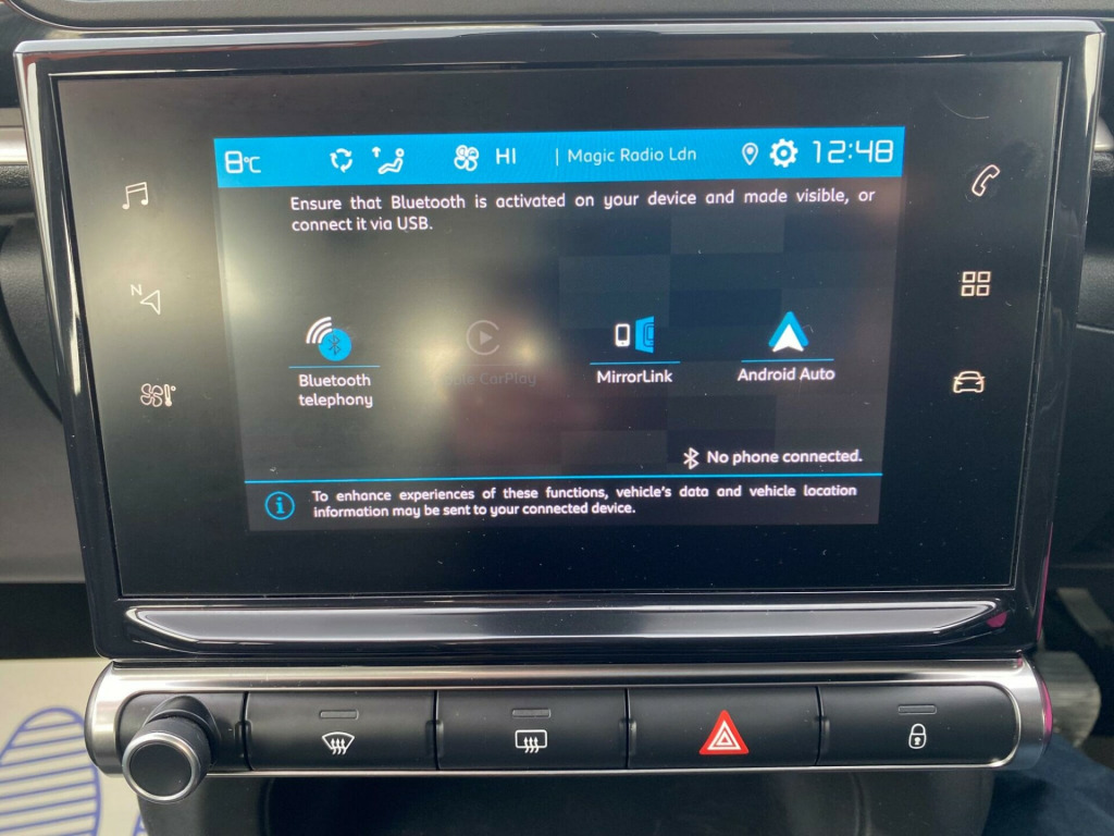 This 2021 Citroen C3 Shine is presented with a clear vehicle history check, offering you peace of mind. Powered by an efficient 1.2 litre Euro 6 petrol engine, this model combines practicality with modern technology. Inside, you'll find the Citroen Connect DAB radio, complete with 6 speakers, Android Auto, Apple CarPlay, and Bluetooth connectivity, ensuring your journeys are always accompanied by your favourite music or podcasts. The Visibility Pack, including automatic headlights, and LED headlights, enhances your driving experience, while rear parking sensors make manoeuvring simple.Experience comfort and convenience with the automatic air conditioning, which provides effortless climate control. This Citroen C3 Shine achieves an impressive fuel economy of 54 miles per gallon, demonstrating its efficiency compared to other vehicles in its class. The combination of its stylish design, user friendly technology, and economical performance makes this C3 a compelling choice for everyday driving., Cars are available for immediate collection. Pre-Delivery/AA Inspection. 3 months warranty, 1yr MOT. Finance and Extended Warranties are available. 1 Year RoadsideAssistance. Call Today! https://www.carcitymedway.co.uk usb socket, 12v socket, 16in alloy wheels - hellix diamond cut, 2-3 - 1-3 split folding rear bench, 3d rear lights signature, abs - anti-lock braking system, airbags - driver, airbump on side door panel, anti-theft alarm, automatic activation of hazard warning lights in case of severe deceleration, automatic air conditioning, automatic door and boot locking when in motion, bi-tone onyx black roof, black colour pack, body colour door handles, body colour front and rear bumpers, boot light, central locking with locked indicators and interior one-touch lock button, chrome decoration on front face - under chevrons and around daytime running lights, citroen connect dab radio with 6 speakers, citroen illuminated signature in led headlights and led daytime running lights, coffee break alert, cruise control with speed limiter, day-night switchable interior rear view mirror, driver and front seatbelts with pyrotechnic pretensioners and force limiters, drivers and passengers sunvisor with courtesy mirror - non illuminated, esp - electronic stability programme with anti-skid system, electric child locks, electrically adjustable - heated folding door mirrors, fog lights integrated into the front bumper, front head restraint with height adjustment, front lighting panel with map reading lights, front passenger airbag - can be deactivated, front seats adjustable with forward-back slide and adjustable backrest, front sequential electric windows with one-touch - open-close and anti pinch system, front side airbags and front and rear curtain airbags, gloss black dashboard with grey surround, height adjustable drivers seat, height and reach adjustable steering wheel, hill start assist, isofix mountings on outer rear seats with top tether and labels indicating fixing points, instrument cluster with white lcd and analogue gauges, led daytime running lights, led headlights, lane departure warning system, manual parking brake with chrome finish button, manual rear windows, matt black b pillars, monotone horn, multi-function on-board trip computer, parcel shelf, power assisted steering, puncture repair kit, rear parking sensors, rear windscreen wiper with intermittent mode linked to vehicle speed and automatic activation when reverse gear selected, remote central locking with two plip keys, roof-colour rear view mirror caps, safety pack, seatbelt unfastened on the move audible and visual alert for front and rear seats, soft-touch gear lever with leather-effect gaiter and overstitching, standard ambience, steering wheel with satin chrome elements and audio-telephone controls, storage space under touchscreen with rubber mat, three rear seats with headrests, three rear three-point seatbelt - outer seats have pretensioners and force limiters, tinted windows - side, tyre pressure monitor, upholstered armrest in front and rear doors, visibility pack