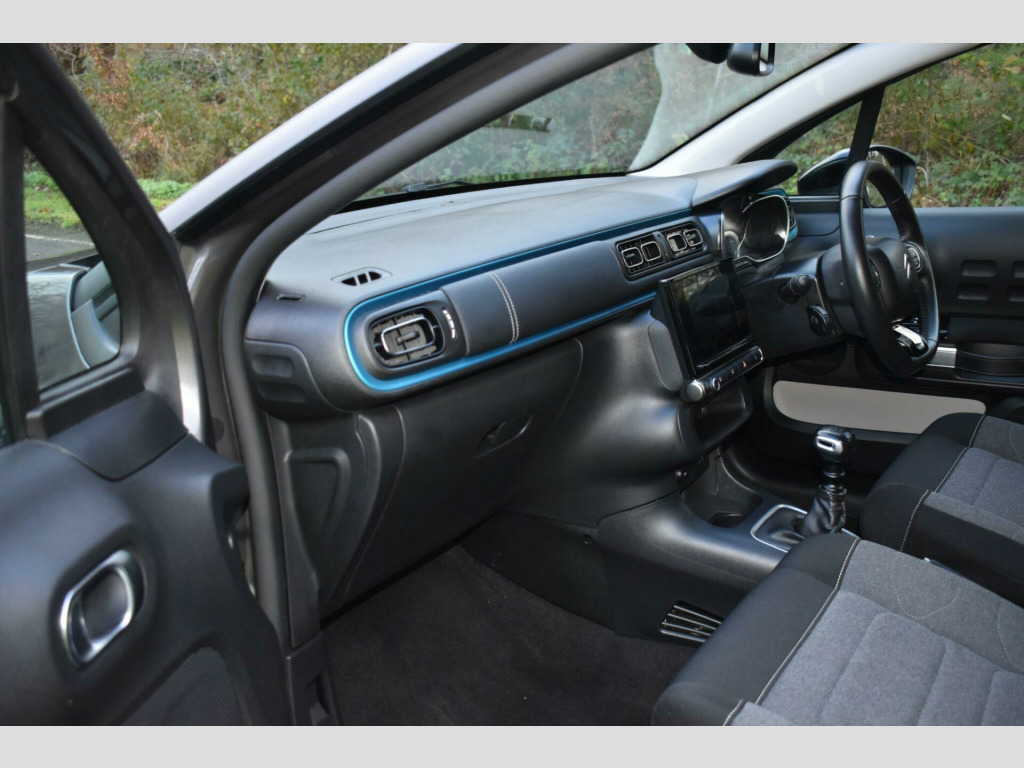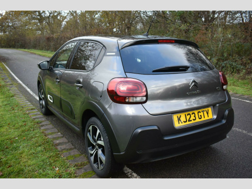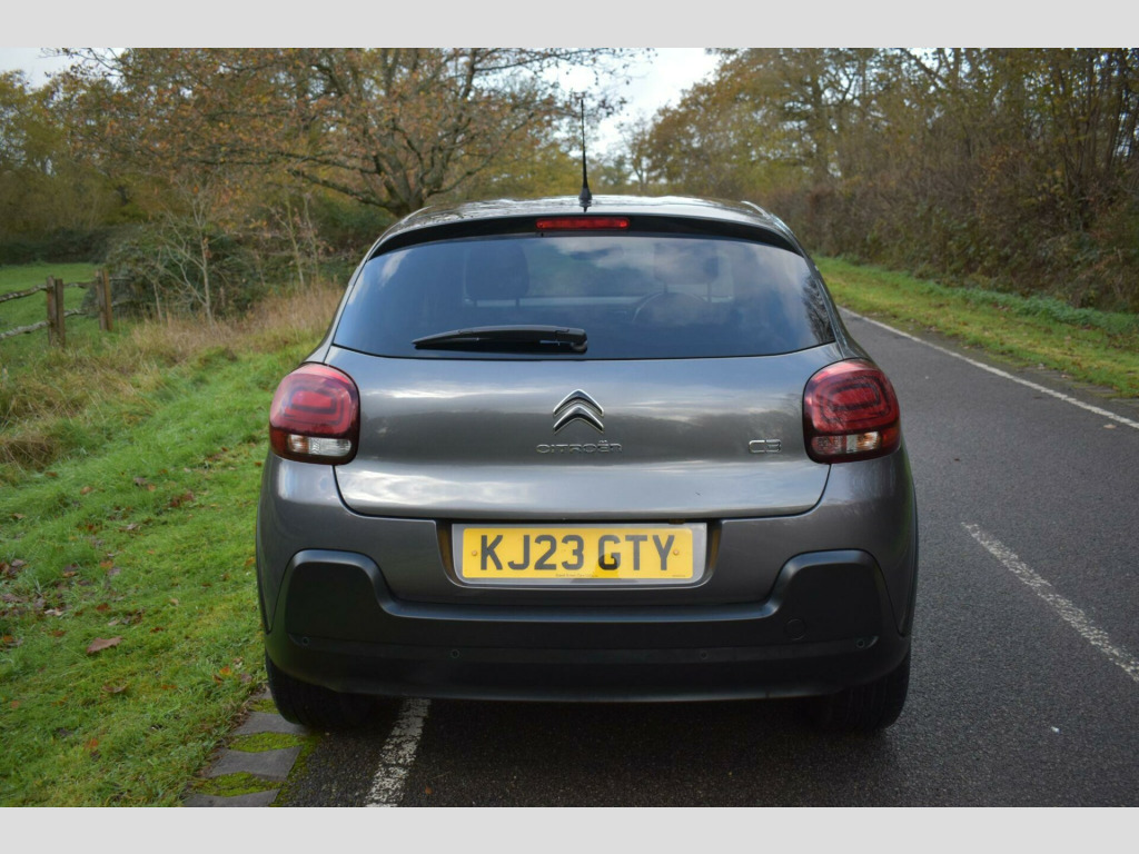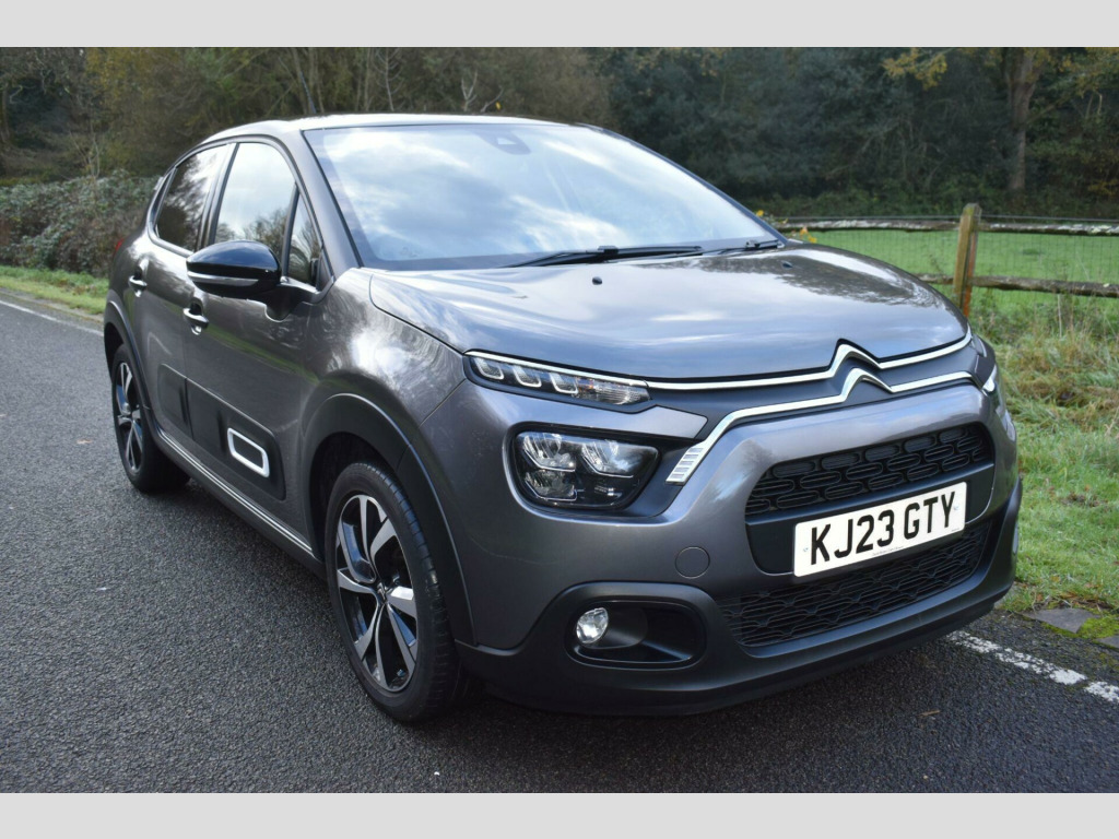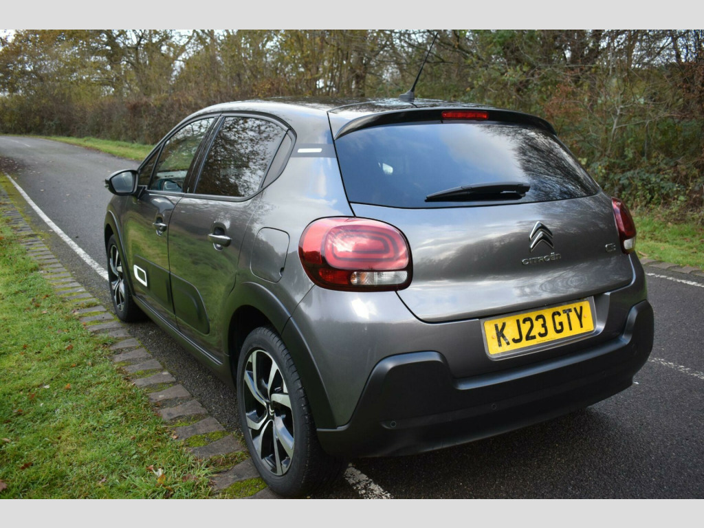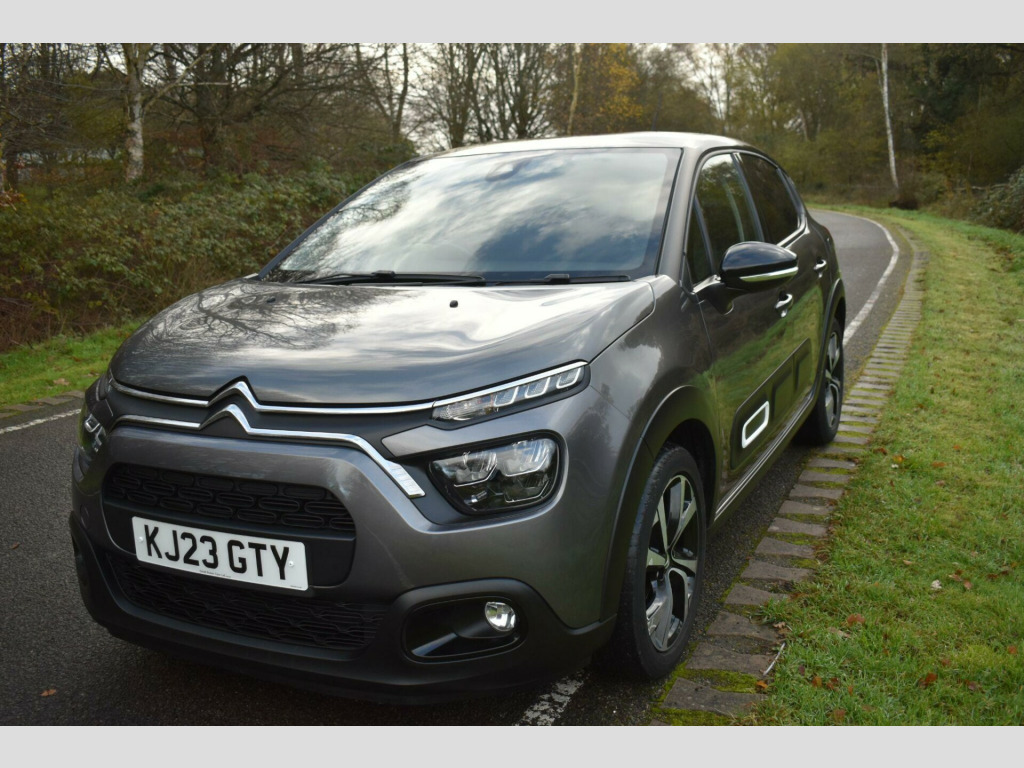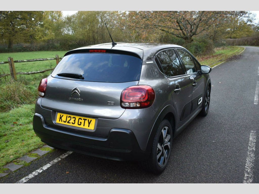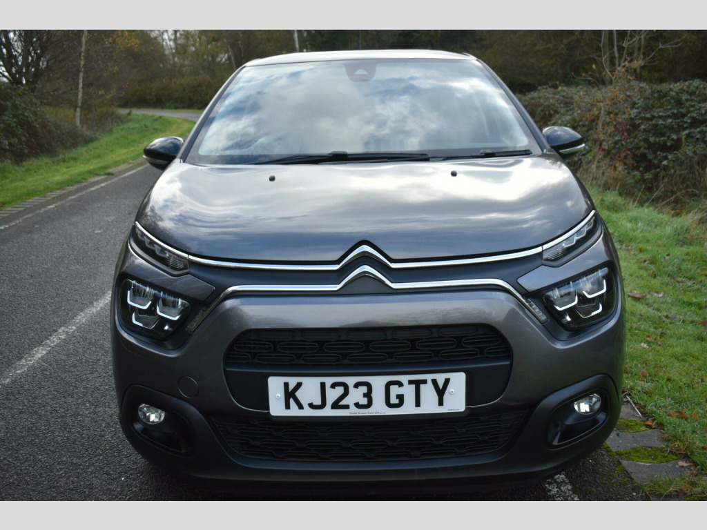 This 2023 Citroen C3 Shine Plus is a superb example, having had only one owner since new. This stylish hatchback is equipped with a responsive 1.2 litre petrol engine and meets Euro 6 emission standards. The Shine Plus trim level ensures you benefit from a range of convenient features, including a reversing camera with rear parking assistance and rear parking sensors. You'll also appreciate the Visibility Pack, which includes automatic headlights, and the comfort of automatic air conditioning with climate control. The vehicle also boasts modern LED headlights for enhanced visibility.Experience impressive fuel economy with this C3, achieving up to 55 miles per gallon, and benefit from its low CO2 emissions. Its performance is equally noteworthy, with an acceleration of 0 to 62 miles per hour in just 9.4 seconds. These highlights demonstrate how this particular Citroen C3 offers a compelling blend of efficiency, performance, and advanced features compared to other vehicles in its class.Finished in Grey with cloth interior, one owner from new, service history, privacy glass, rear parking sensors, 17'' alloy wheels, DAB radio, 6 speed manual, remote central locking, electric windows, electric mirrors, sat nav, reverse camera with guide lines, cruise control, Apple Car Plat/Android Auto, air con, finance available with this vehicle.... for further information please contact us on 01483 236417. usb connection, 12v socket, 17in alloy wheels - vector - diamond cut, 2-3 - 1-3 split folding rear bench, 3d rear lights signature, abs - anti-lock braking system, airbags - driver, airbump on side door panel, anti-theft alarm, armrest - drivers central, auto-dimming electrochrome rear view mirror, automatic activation of hazard warning lights in case of severe deceleration, automatic air conditioning, automatic door and boot locking when in motion, black colour pack, body colour door handles, body colour front and rear bumpers, boot light, central locking with locked indicators and interior one-touch lock button, chrome decoration on front face - under chevrons and around daytime running lights, citroen connect box with emergency and assistance system, citroen connect nav, citroen illuminated signature in led headlights and led daytime running lights, coffee break alert, cruise control with speed limiter, dark tinted - rear side and tailgate windows, driver and front seatbelts with pyrotechnic pretensioners and force limiters, drivers and passengers sunvisor with courtesy mirror - non illuminated, esp - electronic stability programme with anti-skid system, electric child locks, electrically adjustable - heated folding door mirrors, fog lights integrated into the front bumper, front head restraint with height adjustment, front lighting panel with map reading lights, front passenger airbag - can be deactivated, front seats adjustable with forward-back slide and adjustable backrest, front sequential electric windows with one-touch - open-close and anti pinch system, front side airbags and front and rear curtain airbags, gloss black b pillars, height adjustable drivers seat, height and reach adjustable steering wheel, hill start assist, isofix mountings on outer rear seats with top tether and labels indicating fixing points, instrument cluster with white lcd and analogue gauges - with satin chrome surround, led headlights, lane departure warning system, leather steering wheel with gloss black and satin chrome elements and audio-telephone controls, leather trimmed gear lever with leather-effect gaiter and overstitching, manual parking brake with leather handle and chrome finish button, map pockets in back of driver and front passenger seats, monotone horn, multi-function on-board trip computer, parcel shelf, power assisted steering, rear parking sensors, rear sequential electric windows with one-touch - open-close and anti pinch system, rear windscreen wiper with intermittent mode linked to vehicle speed and automatic activation when reverse gear selected, remote central locking with two plip keys, reversing camera, roof - bi-tone - perla nera black, roof-colour rear view mirror caps, safety pack, safety pack 2, seatbelt unfastened on the move audible and visual alert for front and rear seats, space saver spare wheel, storage space under touchscreen with rubber mat, techwood ambience, three rear seats with headrests, three rear three-point seatbelt - outer seats have pretensioners and force limiters, tyre pressure monitoring system, upholstered armrest in front and rear doors, visibility pack