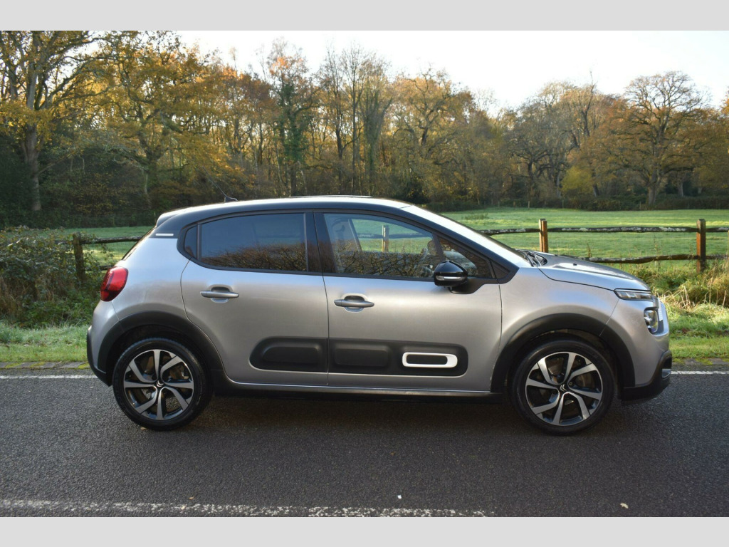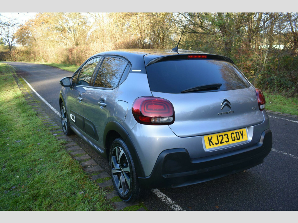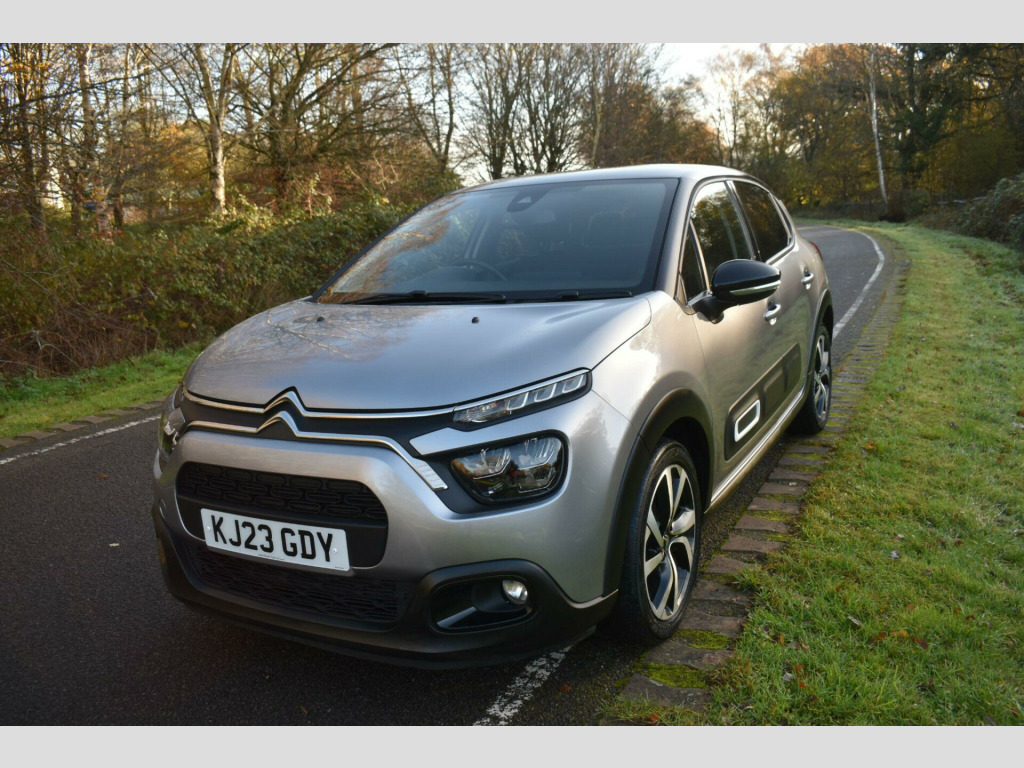 This 2023 Citroen C3 Shine Plus is a superb example, having had only one owner since new. This stylish hatchback is equipped with a responsive 1.2 litre petrol engine and meets Euro 6 emissions standards. Inside, you'll find a comfortable cabin featuring automatic air conditioning for effortless climate control. For convenience and safety, it includes a reversing camera with rear parking assistance and the Visibility Pack, which automatically activates the LED headlights when needed. Staying connected is simple with Citroen Connect Nav, offering Android Auto, Apple CarPlay, and Bluetooth connectivity.Experience impressive efficiency with this C3, achieving a highlight fuel economy of 55 miles per gallon and boasting low CO2 emissions, making it a more economical choice for your journeys. Its performance is also noteworthy, with an acceleration of 0 to 62 miles per hour in just 9.4 seconds, demonstrating a good balance of power and efficiency compared to similar vehicles. This combination of features, efficiency, and single owner provenance makes this Citroen C3 Shine Plus a compelling option.Finished in Grey with cloth interior, one owner from new, privacy glass, rear parking sensors, 6 speed manual, remote central locking, electric windows, electric mirrors, cruise control, Bluetooth, reverse camera with guide lines, sat nav, DAB radio, HPI clear, finance available with this vehicle.... for further information please contact us on 01483 236417. usb connection, 12v socket, 17in alloy wheels - vector - diamond cut, 2-3 - 1-3 split folding rear bench, 3d rear lights signature, abs - anti-lock braking system, airbags - driver, airbump on side door panel, anti-theft alarm, armrest - drivers central, auto-dimming electrochrome rear view mirror, automatic activation of hazard warning lights in case of severe deceleration, automatic air conditioning, automatic door and boot locking when in motion, black colour pack, body colour door handles, body colour front and rear bumpers, boot light, central locking with locked indicators and interior one-touch lock button, chrome decoration on front face - under chevrons and around daytime running lights, citroen connect box with emergency and assistance system, citroen connect nav, citroen illuminated signature in led headlights and led daytime running lights, coffee break alert, cruise control with speed limiter, dark tinted - rear side and tailgate windows, driver and front seatbelts with pyrotechnic pretensioners and force limiters, drivers and passengers sunvisor with courtesy mirror - non illuminated, esp - electronic stability programme with anti-skid system, electric child locks, electrically adjustable - heated folding door mirrors, fog lights integrated into the front bumper, front head restraint with height adjustment, front lighting panel with map reading lights, front passenger airbag - can be deactivated, front seats adjustable with forward-back slide and adjustable backrest, front sequential electric windows with one-touch - open-close and anti pinch system, front side airbags and front and rear curtain airbags, gloss black b pillars, height adjustable drivers seat, height and reach adjustable steering wheel, hill start assist, isofix mountings on outer rear seats with top tether and labels indicating fixing points, instrument cluster with white lcd and analogue gauges - with satin chrome surround, led headlights, lane departure warning system, leather steering wheel with gloss black and satin chrome elements and audio-telephone controls, leather trimmed gear lever with leather-effect gaiter and overstitching, manual parking brake with leather handle and chrome finish button, map pockets in back of driver and front passenger seats, monotone horn, multi-function on-board trip computer, parcel shelf, power assisted steering, rear parking sensors, rear sequential electric windows with one-touch - open-close and anti pinch system, rear windscreen wiper with intermittent mode linked to vehicle speed and automatic activation when reverse gear selected, remote central locking with two plip keys, reversing camera, roof - bi-tone - perla nera black, roof-colour rear view mirror caps, safety pack, safety pack 2, seatbelt unfastened on the move audible and visual alert for front and rear seats, space saver spare wheel, storage space under touchscreen with rubber mat, techwood ambience, three rear seats with headrests, three rear three-point seatbelt - outer seats have pretensioners and force limiters, tyre pressure monitoring system, upholstered armrest in front and rear doors, visibility pack