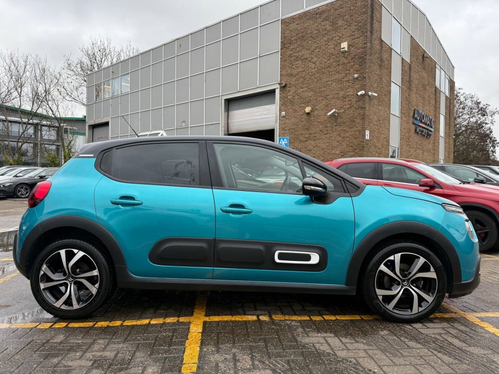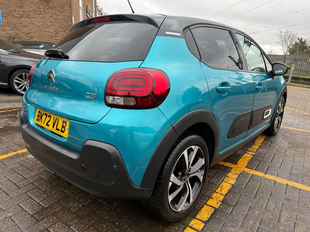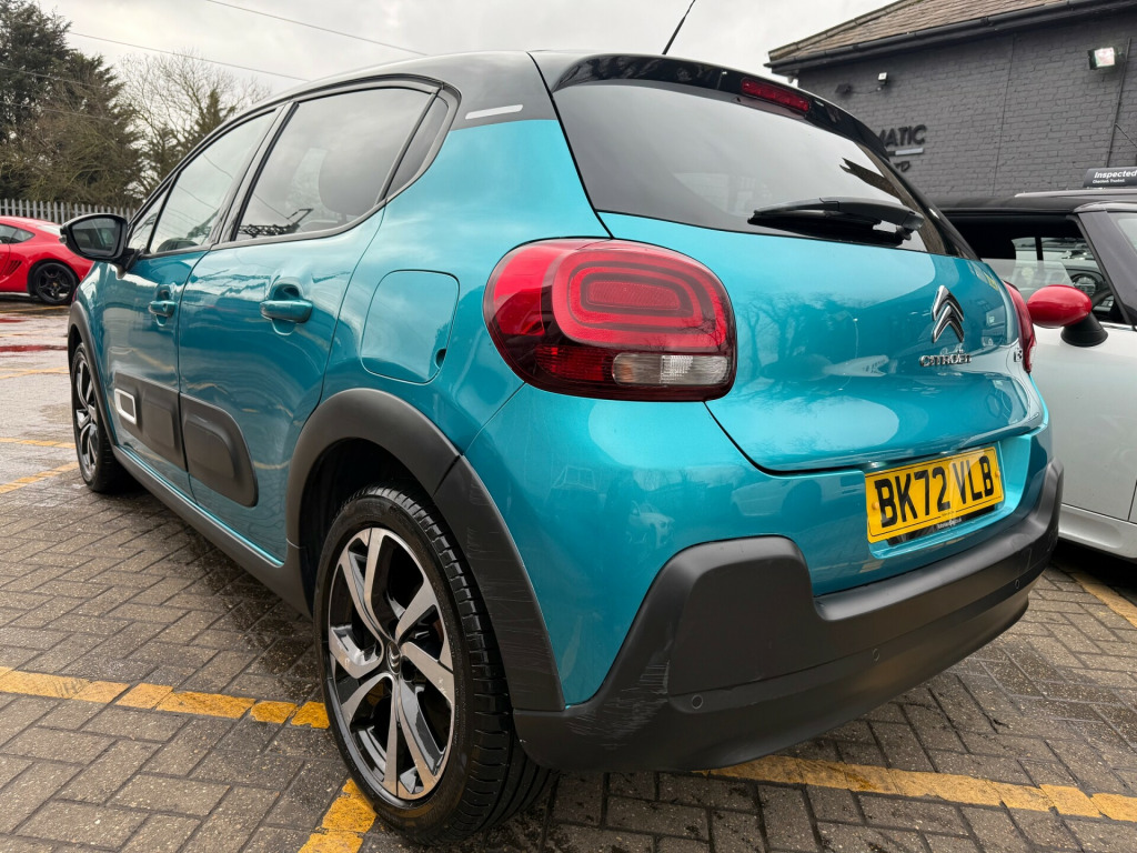 2 KEYS, ULEZ FREE, FRESH SERVICE, TOTAL OF 3 SERVICES, FRESH MOT, SATNAV, BLUETOOTH, PARKING SENSORS, AIRCON, ALLOY WHEELS, SPARE WHEEL, PRIVACY GLASSThis 2022 Citroen C3 1.2 PureTech Shine Plus Hatchback with only 32466 miles on the clock is a stylish and efficient petrol vehicle that is ULEZ compliant. With its 5 seats and 5 doors, it's perfect for everyday use and spacious enough for the whole family. It comes with a range of modern features, including 1 USB Connection, 12V Socket, Citroen Connect Box with Emergency and Assistance System, Citroen Connect Nav, and 17in Alloy Wheels - Vector - Diamond Cut. This is a reliable hatchback that offers both practicality and style, making it a great choice for those in need of a versatile and efficient vehicle. usb connection, 12v socket, citroen connect box with emergency and assistance system, citroen connect nav, 17in alloy wheels - vector - diamond cut, 3d rear lights signature, airbump on side door panel, black colour pack, body colour door handles, body colour front and rear bumpers, chrome decoration on front face - under chevrons and around daytime running lights, citroen illuminated signature in led headlights and led daytime running lights, dark tinted - rear side and tailgate windows, electrically adjustable - heated folding door mirrors, front sequential electric windows with one-touch - open-close and anti pinch system, gloss black b pillars, rear sequential electric windows with one-touch - open-close and anti pinch system, roof - bi-tone - perla nera black, roof-colour rear view mirror caps, space saver spare wheel, visibility pack, 2-3 - 1-3 split folding rear bench, armrest - drivers central, auto-dimming electrochrome rear view mirror, automatic air conditioning, boot light, drivers and passengers sunvisor with courtesy mirror - non illuminated, front head restraint with height adjustment, front lighting panel with map reading lights, front seats adjustable with forward-back slide and adjustable backrest, height adjustable drivers seat, height and reach adjustable steering wheel, instrument cluster with white lcd and analogue gauges - with satin chrome surround, leather gear lever with leather-effect gaiter and overstitching, leather steering wheel with gloss black and satin chrome elements and audio-telephone controls, manual parking brake with leather handle and chrome finish button, map pockets in back of driver and front passenger seats, parcel shelf, rear windscreen wiper with intermittent mode linked to vehicle speed and automatic activation when reverse gear selected, storage space under touchscreen with rubber mat, techwood ambience, three rear seats with headrests, upholstered armrest in front and rear doors, abs - anti-lock braking system, airbags - driver, anti-theft alarm, automatic activation of hazard warning lights in case of severe deceleration, automatic door and boot locking when in motion, central locking with locked indicators and interior one-touch lock button, driver and front seatbelts with pyrotechnic pretensioners and force limiters, esp - electronic stability programme with anti-skid system, electric child locks, front passenger airbag - can be deactivated, front side airbags and front and rear curtain airbags, hill start assist, isofix mountings on outer rear seats with top tether and labels indicating fixing points, monotone horn, remote central locking with two plip keys, safety pack, safety pack 2, seatbelt unfastened on the move audible and visual alert for front and rear seats, three rear three-point seatbelt - outer seats have pretensioners and force limiters, coffee break alert, cruise control with speed limiter, lane departure warning system, multi-function on-board trip computer, power assisted steering, rear parking sensors, reversing camera, tyre pressure monitoring system, fog lights integrated into the front bumper, led headlights