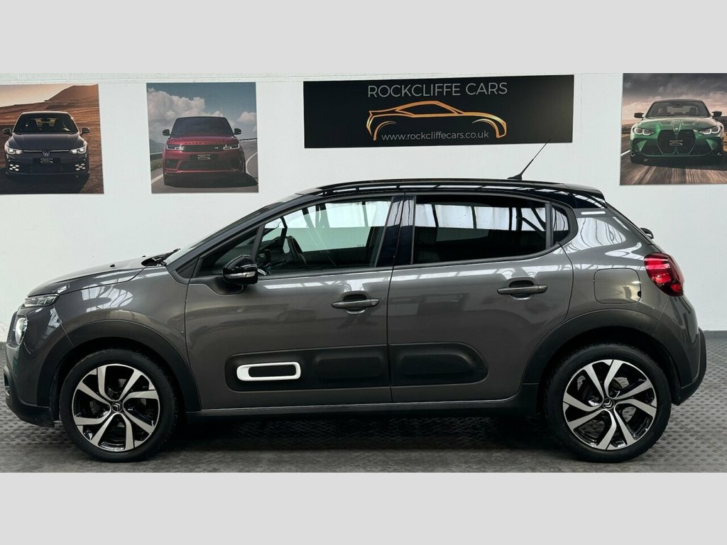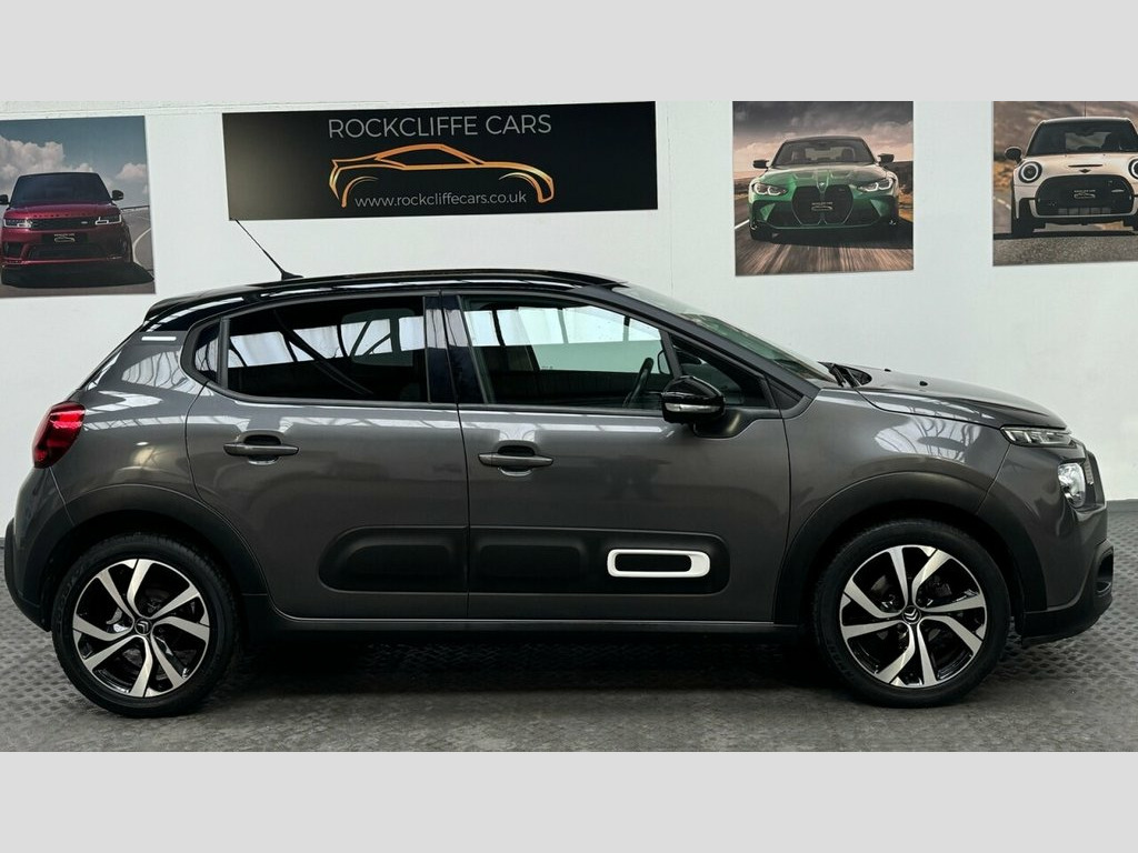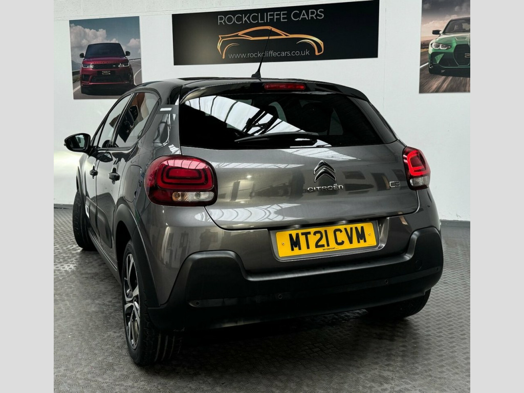 Citroën C3 1.2 PureTech Shine Plus Hatchback | Manual | Only 56,000 Miles Rockcliffe Cars are pleased to offer this excellent MT21CVM Citroën C3 1.2 PureTech Shine Plus Hatchback, finished in smart Grey. With just 56,000 miles, this well-presented and highly specified hatchback is an ideal choice for first-time drivers, commuters, or anyone looking for a stylish, economical, and comfortable car. Vehicle Overview Registration: MT21CVM Model: Citroën C3 1.2 PureTech Shine Plus Body Type: Hatchback (5 Door) Engine: 1.2 Petrol Transmission: Manual Power: 83 PS Emissions Standard: Euro 6 (s/s) Mileage: 56,000 miles Colour: Grey Exterior Features The Shine Plus specification gives the C3 a modern and distinctive appearance: Alloy wheels LED daytime running lights LED rear lights Front fog lights Body-coloured bumpers Colour-coded door mirrors Privacy glass Interior and Comfort Inside, the Citroën C3 offers a bright and comfortable cabin with excellent specification: Part leather interior Height-adjustable driver's seat Leather-trimmed multifunction steering wheel Air conditioning Cruise control with speed limiter Split-folding rear seats Spacious rear seating for a car of this class Practical boot space for everyday use Technology and Safety Well equipped with modern technology and safety features: Touchscreen infotainment system Satellite navigation Apple CarPlay and Android Auto Bluetooth hands-free and audio streaming 1 USB Socket, 12V Socket, 17in Alloy Wheels - Vector - Diamond Cut, 2-3 - 1-3 Split Folding Rear Bench, 3D Rear Lights Signature, ABS - Anti-Lock Braking System, Airbags - Driver, Airbump on Side Door Panel, Anti-Theft Alarm, Armrest - Drivers Central, Auto-Dimming Electrochrome Rear View Mir, Automatic Activation of Hazard Warning L, Automatic Air Conditioning, Automatic Door and Boot Locking when in , Bi-Tone Onyx Black Roof, Black Colour Pack, Body Colour Door Handles, Body Colour Front and Rear Bumpers, Boot Light, Central Locking with Locked Indicators a, Chrome Decoration on Front Face - Under , Citroen Connect Box with Emergency and A, Citroen Connect Nav, Citroen Illuminated Signatur