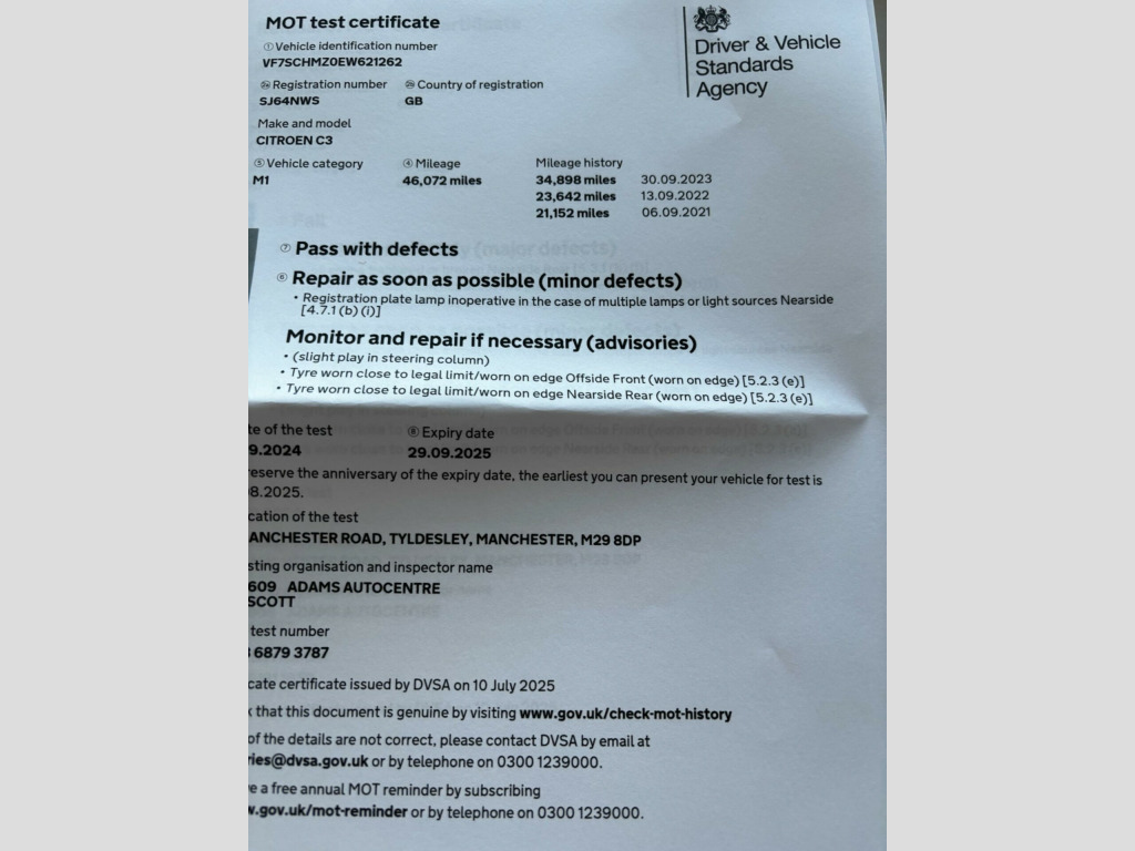 With only 53,223 miles on the clock, this 2014 Citroen C3 is a great option. As a VTi VTR+ variant with the VTR+ trim, it features a 1.2L petrol engine. The car includes a Connecting Box Bluetooth System, incorporating Bluetooth connectivity, and comes equipped with air conditioning.Mot Sept 2026 Fitted 3 new tyresThis Citroen C3 stands out with its impressive fuel economy of 61 mpg, meaning fewer trips to the petrol station. It also falls into a low insurance group, potentially saving you money on your premiums. Furthermore, its low CO2 emissions mean it's kinder to the environment.. 12V Socket, 15in Alloy Wheels - Parkes, ABS - Anti-Lock Braking System, Air Conditioning, Airbags - Driver, Airbags - Front Passenger with Cut-Off Device, Automatic Activation of Hazard Warning Lights, Automatic Door and Boot Locking when in Motion, Auxiliary Socket, Black Panel Night-time Instrument Lighting, Body Coloured Door Mirrors, Bottle Holder, Bumpers - Chrome Front Insert, Bumpers - Chrome Rear Inserts, Centre Console - Matt Black, Child Locks - Electric with Indicator, Chrome Handbrake Surround, Connecting Box - Bluetooth System, Cruise Control with Speed Limiter, Crystal Effect Rear Lights, Curtain Airbags, Door Handles - Chrome, EBA - Electronic Brake Assistance, EBFD - Electronic Brakeforce Distribution, Electric Windows - Front with One-touch Operation on Drivers Side, Electrically Adjustable Door Mirrors, Exterior Temperature Display, Front Courtesy Reading Lights, Front Lateral Airbags, GEI - Gear Efficiency Indicator, Headlights - Halogen, Height and Reach Adjustable Steering Wheel, Height-Adjustable Driver Seat, ISOFIX - Child Seat Anchorage Points - Outer Rear, LED Daytime Running Lights - DRLs, Laminated Windscreen, Leather Steering Wheel, Lower Dashboard - Tungsten, Luggage Compartment - Lighting, Multi-Function On-Board Trip Computer, Pollen Filter, Puncture Repair Kit, Radio - RDS with CD and MP3 Player, Remote Central Locking with Deadlocks, Satin Chrome Interior Door Handles, Seat Belt Unfastened Warning - Driver, Seat Belt Unfastened Warning - Passenger, Seats - 1-3 - 2-3 Split Folding Rear, Seats - Height Adjustable Front Passenger, Serenity Pack, Spare Wheel - Full Size, Steering Wheel Mounted Controls, USB Socket, Upper Dashboard - Soft-Touch Effect, Variable Power Assisted Steering, White Instrument Dial Illumination. Part service history