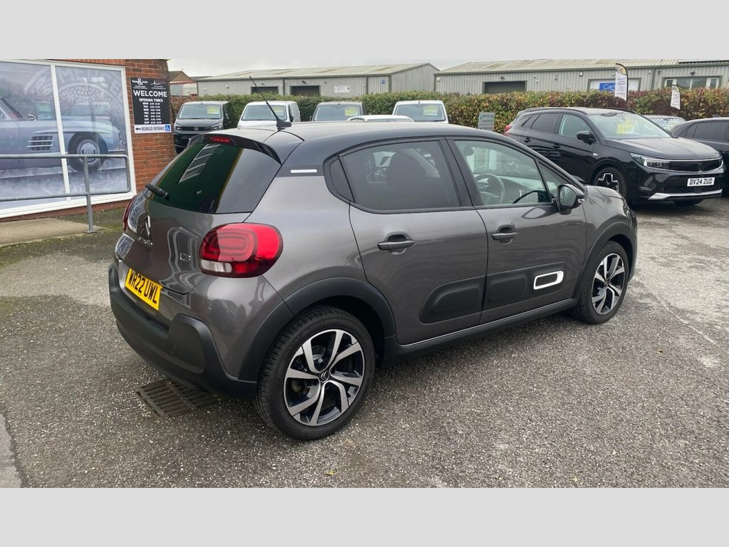 Citroen C3 1.5 BlueHDi Shine Plus Hatchback 5dr Diesel Manual Euro 6 (s/s) (100 ps) finished in grey metallic. This vehicle comes with Satellite navigation, apple car play/android support, rear sensors, reversing camera, 17" alloys, lane departure warning, heated electric mirrors, electric windows, automatic air conditioning, LED daytime running lights, LED headlights, cruise control/speed limiter, privacy glass, 6 months RAC warranty which can be extended. 1 USB Connection, 12V Socket, 17in Alloy Wheels - Vector - Diamond Cut, 2-3 - 1-3 Split Folding Rear Bench, 3D Rear Lights Signature, ABS - Anti-Lock Braking System, Airbags - Driver, Airbump on Side Door Panel, Anti-Theft Alarm, Armrest - Drivers Central, Auto-Dimming Electrochrome Rear View Mir, Automatic Activation of Hazard Warning L, Automatic Air Conditioning, Automatic Door and Boot Locking when in , Black Colour Pack, Body Colour Door Handles, Body Colour Front and Rear Bumpers, Boot Light, Central Locking with Locked Indicators a, Chrome Decoration on Front Face - Under , Citroen Connect Box with Emergency and A, Citroen Connect Nav, Citroen Illuminated Signature in LED Hea, Coffee
