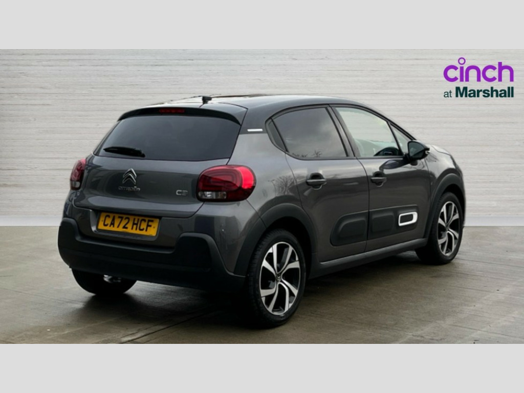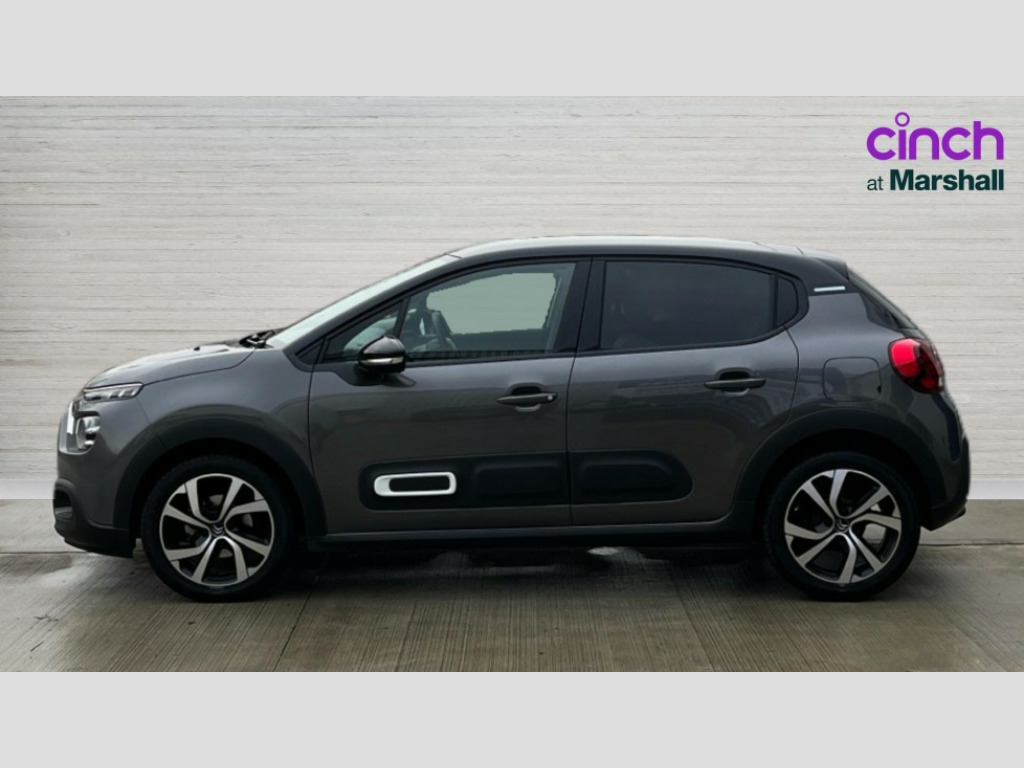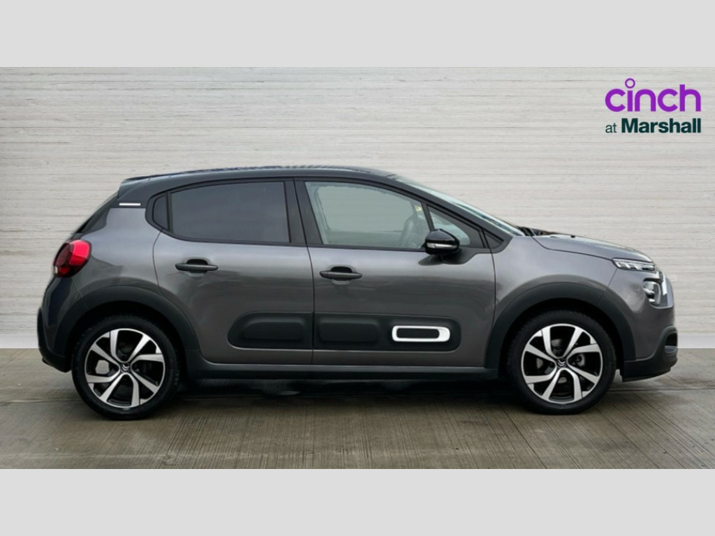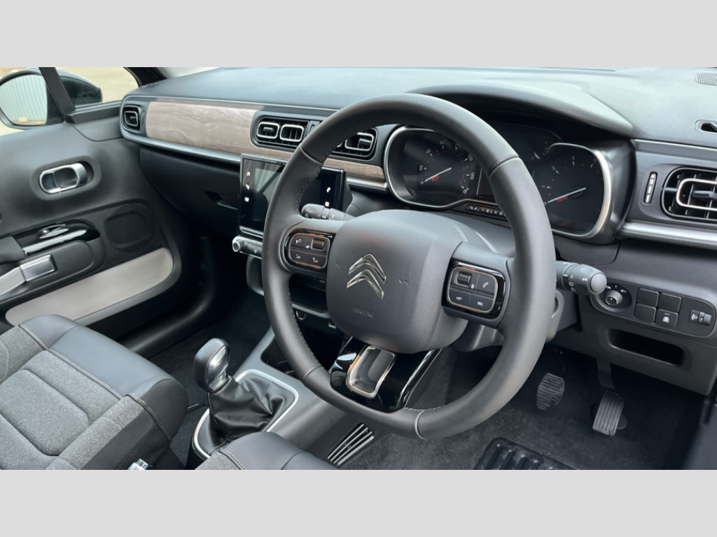 Citroen C3 1.2 PureTech Shine Plus 5dr Citroen connect box emergency and assistance system, Citroen connected nav with DAB, 6 speakers, 7" captive touch screen, mirror screen includes apple carplay/android auto and bluetooth, Coffee Break Alert, Cruise control + speed limiter, eCall emergency call system, Exterior temperature display, Multi function trip computer, Reversing camera, Satin chrome surround instrument cluster with white LCD and analogue gauges, Variable assistance power steering, USB connection, 3D rear light signature, Airbump on side door panel, Auto dimming electrochrome rear view mirror, Auto headlights, Automatic activation of hazard warning lights, Body colour bumpers, Body colour door handles, Chrome decoration on front face, under chevrons and around daytime running lights, Citroen illuminated signature in LED headlights and LED daytime running lights, Dark tinted tailgate and rear side windows, Electrically adjustable door mirrors, Electrically folding door mirrors, Fog lights integrated into front bumper, Front sequential electric windows with one-touch open/close and anti-pinch system, Front windscreen wipers with two speeds and intermittent mode linked to vehicle speed, Gloss black finish B pillar, Heated door mirrors, LED Headlights, LED third brake light, Rear sequential electric windows with one-touch open/close and anti-pinch system, Rear side wing doors, Rear windscreen wiper with intermittent mode linked to vehicle speed and automatic activation when reverse gear selected, Roof colour rear view mirror caps, 1/3 to 2/3 split folding rear seat, 12V socket, Automatic air conditioning, Boot light, Cloth/leather effect upholstery, Driver and passenger's sun visor with courtesy mirror, Driver's central armrest, Driver's seat height adjustment, Front lighting panel with map reading lights, Front seats adjustable with forward back slide and adjustable backrest, Height adjustable front head restraints, Height/reach adjust steering wheel, ISOFIX mounting on outer rear seats with top tether and labels indicating fixing points, Leather steering wheel with gloss black + satin chrome elements and audio/telephone controls, Leather trimmed gear lever with leather effect gaiter and overstitching, Map pockets in back of driver and front passenger seats, Parcel shelf, Row 2 - Three seats with individually adjustable head rests, Seatbelt unfastened on the move audible and visual alert for front and rear seats, Single front passenger seat, Storage space under touchscreen with rubber mat, Three rear headrests, Upholstered armrest in front and rear doors, Safety pack 1 - C3, Safety pack 2 - C3, Visibility pack with automatic lights - C3, ABS with Electronic brakeforce distribution and Emergency braking assistance, Driver and front passenger seatbelts with pyrotechnic pretensioners and force limiters, Driver's airbag, Electric child locks, ESP with anti skid system, Front passenger airbag, Front passenger airbag deactivation, Front side airbags + front/rear curtain airbags, Hill start assist, Manual parking brake with leather handle and chrome finish button, Mono-tone horn, Outer rear seats with pretensioners and force limiters, Three rear 3-point seatbelts, Tyre pressure monitoring system, Anti theft alarm, Automatic door and boot locking when moving off with automatic unlocking in case of impact, Central locking with locked indicator and interior one touch lock button, Immobiliser, Remote control central locking with two plip keys, 17" Vector diamond cut alloy wheels, Tyre puncture repair kit