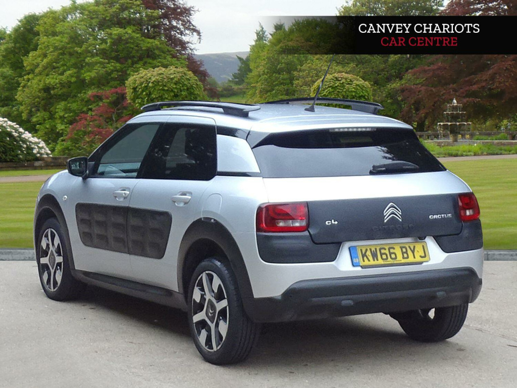 This 2016 Citroen C4 Cactus Flair is a fantastic example, having had only two owners from new. Powered by an efficient 1.2 litre Euro 6 petrol engine, this model offers a compelling blend of style and practicality. Inside, you'll find a host of convenient features designed to enhance your driving experience, including Bluetooth media streaming for seamless audio playback, rear parking sensors and a reversing camera to aid with manoeuvring, and automatic headlights that adjust to changing light conditions.The C4 Cactus Flair truly shines when it comes to its impressive performance and economy. Achieving a remarkable 66 miles per gallon, this vehicle offers excellent fuel efficiency, making it an economical choice for everyday driving. Its low CO2 emissions further contribute to its environmental credentials. For those needing space, the large boot offers ample room for luggage or shopping. Performance is also strong, with a brisk 0 to 62 miles per hour acceleration time of just 9.3 seconds, demonstrating that efficiency does not compromise on responsiveness.. 12V Socket - Front, 17in Alloy Wheels - Diamond Cut Cross, 7in Touch Drive Interface, ABS - Anti-Lock Braking System, ARKAMYS Digital Amplifier, Airbags - Driver, Airbump - Black, Armrest - Front with Storage, Automatic Air Conditioning, Automatic Pack, Auxiliary Socket, Bluetooth Media Streaming, Bluetooth System, Body Colour Door Handles, Central Locking - Remote, City Camera Pack, Cruise Control with Speed Limiter, Cup Holders, Curtain Airbags, Dark Tinted Rear Windows, Deadlocks, Drivers and Passengers Sunvisor with Courtesy Mirror, EBA - Electronic Brake Assistance, EBFD - Electronic Brakeforce Distribution, ESP - Electronic Stability Programme, Electric Child Locks, Electrically Adjustable Heated Door Mirrors, Electronic Owners Manual, European Mapping with 5 Years of Updates, Exterior Temperature Display, Footrest - Drivers, Front Courtesy Reading Lights, Front Electric Windows, Front Fog Lights with Cornering Function, Front Lateral Airbags, Front Passenger Airbag, Front Seat Belt Pretensioners, GEI - Gear Efficiency Indicator, Gloss Black - A and B Pillar, Gloss Black - Rear Spoiler Support, Gloss Black Door Mirrors, Gloss Black Pack, Gloss Black Rear Insert, Head Restraints - Retractable Rear x3, Headlights - Automatic, Headlights - Halogen, Headlights - Height Adjustable, Height and Reach Adjustable Steering Wheel, Height-Adjustable Driver Seat, Hi-Fi System, Hill Start Assist, Hinged Rear Windows, ISOFIX - Child Seat Anchorage Points - Outer Rear, Ice Alert, LED Daytime Running Lights - DRLs, Lashing Eyes in the Boot, Navigation and Hi-Fi Pack, Pollen Filter, Power Assisted Steering - Electric, Radio - DAB, Radio - RDS with MP3 Player, Rain Sensing Automatic Front Windscreen Wipers, Rear Hanging Hooks, Rear Parcel Shelf, Rear Parking Sensors, Reversing Camera, Roof Rails - Gloss Black, Seat Belt Unfastened Warning, Seats - Passenger Folding Rear Bench, Speakers x6, Steering Wheel - Leather/Two-Tone, Steering Wheel Chrome Inserts, Steering Wheel Mounted Controls, Storage - Front Door Pockets, Storage - Front Open Compartment, Storage - Rear Door Pockets with Bottle Holders, Top Box Dashboard Storage Compartment, Transponder Immobiliser, Tyre Pressure Monitor, USB Socket, eMyWay - Colour Satellite Navigation.