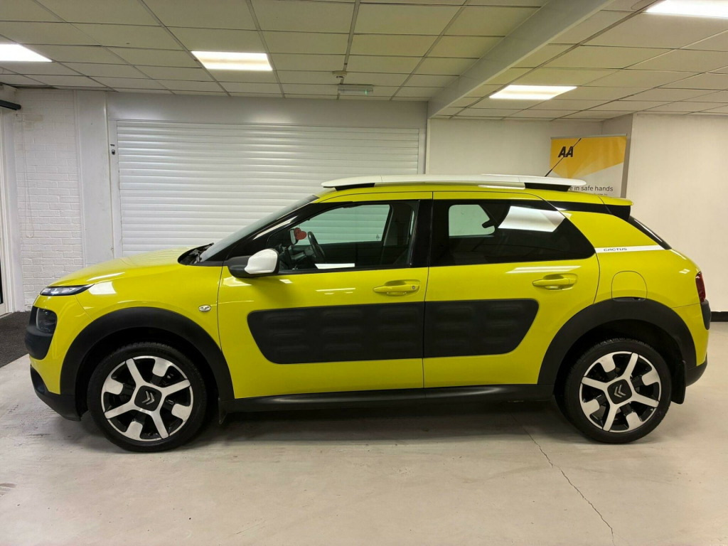 This 2014 Citroen C4 Cactus BlueHDi Feel is ULEZ free and presents an exceptional opportunity with its remarkably low mileage of just 59,000 miles, especially considering its age, and has been cared for by only two owners. This stylish hatchback is equipped with a fuel efficient 1.6 litre diesel engine, meeting the Euro 6 emission standards, and comes with the desirable Feel trim level. Inside, you will find a convenient Bluetooth system for seamless connectivity and air conditioning to ensure a comfortable journey in all conditions.The C4 Cactus BlueHDi Feel stands out with its impressive fuel economy, achieving an outstanding 83 miles per gallon, which is significantly better than many other vehicles in its class. This efficiency, combined with its low CO2 emissions, also means it falls into a low insurance group, making it an economical choice for everyday driving. Furthermore, the generous boot space offers practicality for shopping trips or luggage, adding to the overall appeal of this well maintained and cost effective vehicle. troen multicity connect, door mirrors - white, roof rails - gloss white, city camera pack, 16in alloy wheels - anthracite square, 7in touch drive interface, abs - anti-lock braking system, air conditioning, airbags - driver, airbump - black, auxiliary socket, bluetooth system, body colour door handles, central locking - remote, cruise control with speed limiter, eba - electronic brake assistance, ebfd - electronic brakeforce distribution, esp - electronic stability programme, electrically adjustable door mirrors, exterior trim - gloss black, front electric windows, front passenger airbag, gloss black door mirrors, height and reach adjustable steering wheel, hinged rear windows, led daytime running lights - drls, pollen filter, power assisted steering, radio - dab, roof rails - gloss black, speakers x4, steering wheel - leather/two-tone, steering wheel mounted controls, storage - dashboard, tyre pressure monitor, usb socket