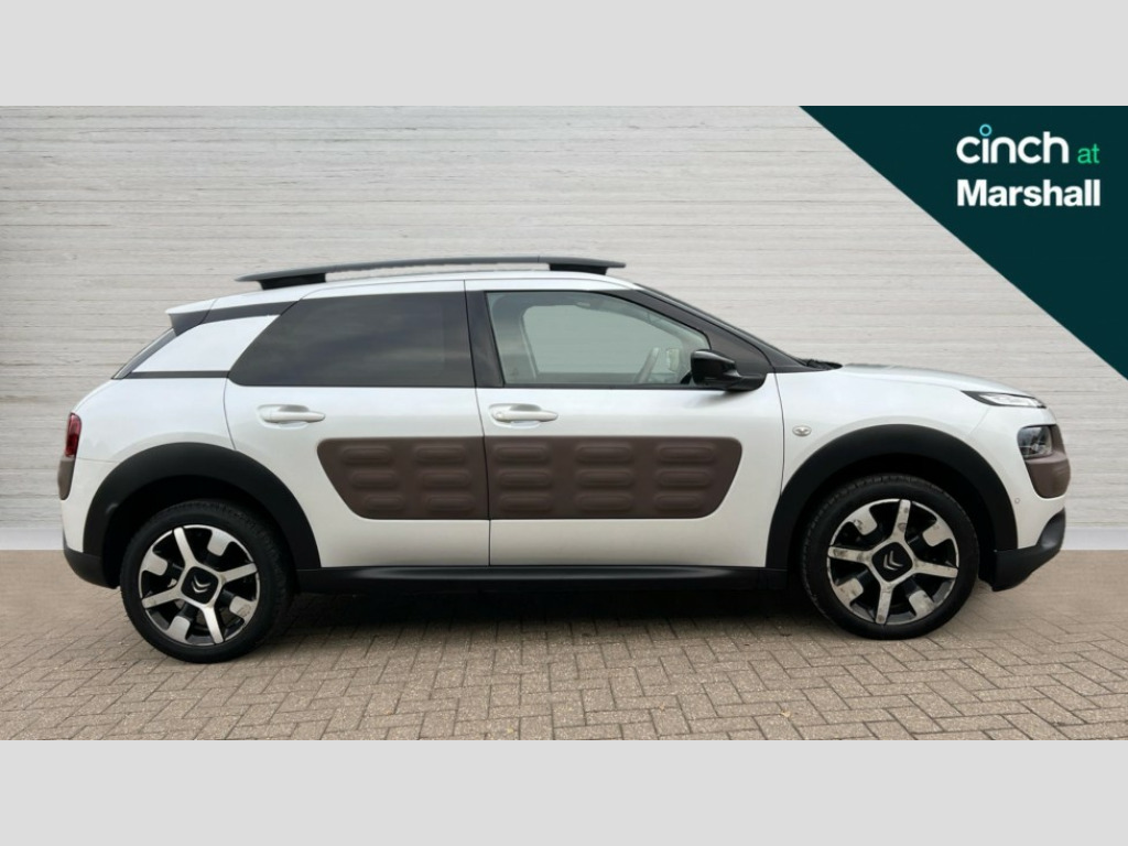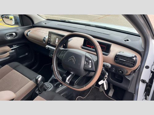 Citroen C4 Cactus 1.2 PureTech [110] Flair 5dr 7" touch screen, Bluetooth Handsfree Phone Connection, Cruise control + speed limiter, Exterior temperature gauge with frost alarm, Gear selection indicator, Rear parking sensor, Reversing camera, Satellite navigation system, Variable PAS, 6 speakers, Arkamys digital amplifier, Auxiliary input socket, Bluetooth audio streaming, DAB Digital radio, RDS radio with MP3 player, Steering wheel mounted controls, USB socket, Automatic lights and wipers, Body colour door handles, Body coloured bumpers, Cornering front fog lights, Dark tinted rear windows, Electric adjustable heated door mirrors, Electric front windows, Hinged rear windows, LED daytime running lights, Rear wiper, 1/3 to 2/3 split folding rear seats, 12V socket, 3 rear headrests, Automatic air conditioning, Cup Holder, Dashboard storage, Driver's footrest, Driver/passenger sunvisors and vanity mirrors, Front courtesy lights, Front door pockets, Front head restraints, Front reading lights, Height adjustable driver's seat, Isofix system on outer rear seats, Load lashing points, Reach + rake adjustable steering column, Rear coat hooks, Rear parcel shelf, Rear storage pockets, Retractable head restraints on all rear seats, Two tone leather steering wheel, 3x3 point rear seatbelts, ABS + EBD + EBA, Curtain airbags, Driver/Front Passenger airbags, Electric child locks, ESP, Front seatbelt pretensioners with force limiters, Front side airbags, Height adjustable front seatbelts, Hill start assist, Passenger airbag deactivate switch, Seatbelt warning lamp, Tyre pressure monitor, Deadlocks, Remote central locking, Transponder immobiliser, Space saver spare wheel