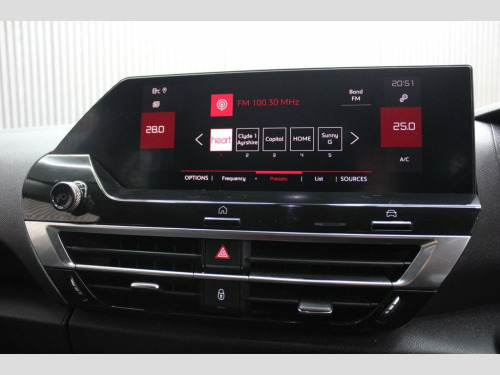 This 2021 Citroen C4 Sense Plus is a superb example, having had only one owner since new. This stylish hatchback is powered by an efficient 1.2 litre petrol engine, meeting Euro 6 emissions standards. It comes equipped with a range of desirable features including automatic headlight activation, a clear Head Up Display, and automatic dual zone air conditioning for your comfort. Parking is made easier with the Visio Park system, which includes a rear camera, and you'll appreciate the bright illumination provided by the LED headlights. Experience impressive performance with a 0-60mph acceleration time of just 8.9 seconds, while also benefiting from excellent fuel economy, achieving up to 55 miles per gallon. This C4 also boasts low CO2 emissions, making it an environmentally conscious choice. Furthermore, you'll find the large boot space incredibly practical for all your luggage and shopping needs, setting this vehicle apart from others in its class. 10in High Resolution Touchscreen User In, 18in Alloy Wheels - Aeroblade Diamond Cu, 2 Position Boot Floor, 5.5in Backlit Full-TFT Drivers Instrumen, ABS - Anti-Lock Braking System, Anti-Theft Alarm - Volumetric Protection, Automatic Dual Zone Air Conditioning, Automatic Headlight Activation, Boot Light, Bumpers - Body Coloured, Citroen Connect Box with Emergency and A, Citroen Connect Nav, City Smart Pad Support - Universal Table, Compressor with Puncture Repair Kit, Cruise Control with Speed Limiter, Dashboard Tray in Front Cabin, Driver and Front Passenger Airbags, Driver and Passenger Sunvisor with Illum, ESP - Electronic Stability Programme, Electric Parking Brake, Electric Power Steerin