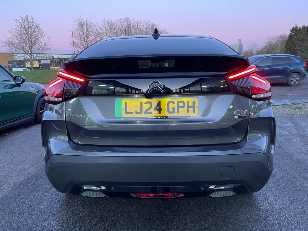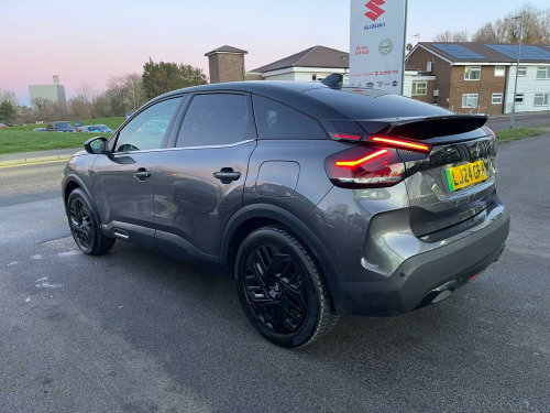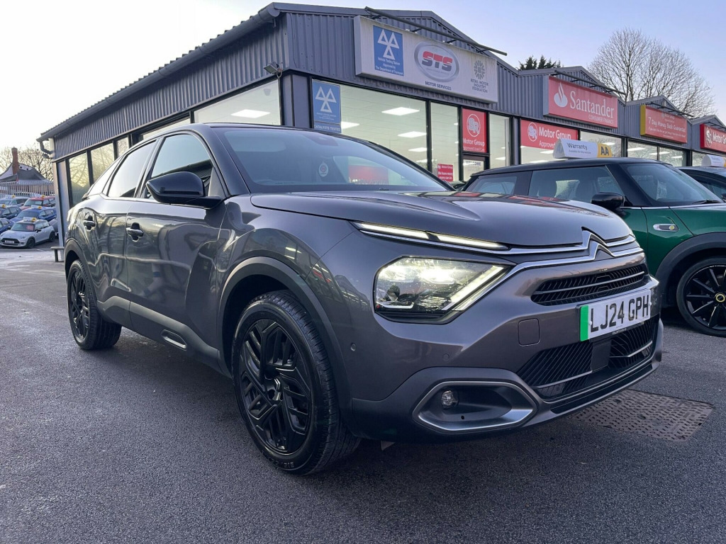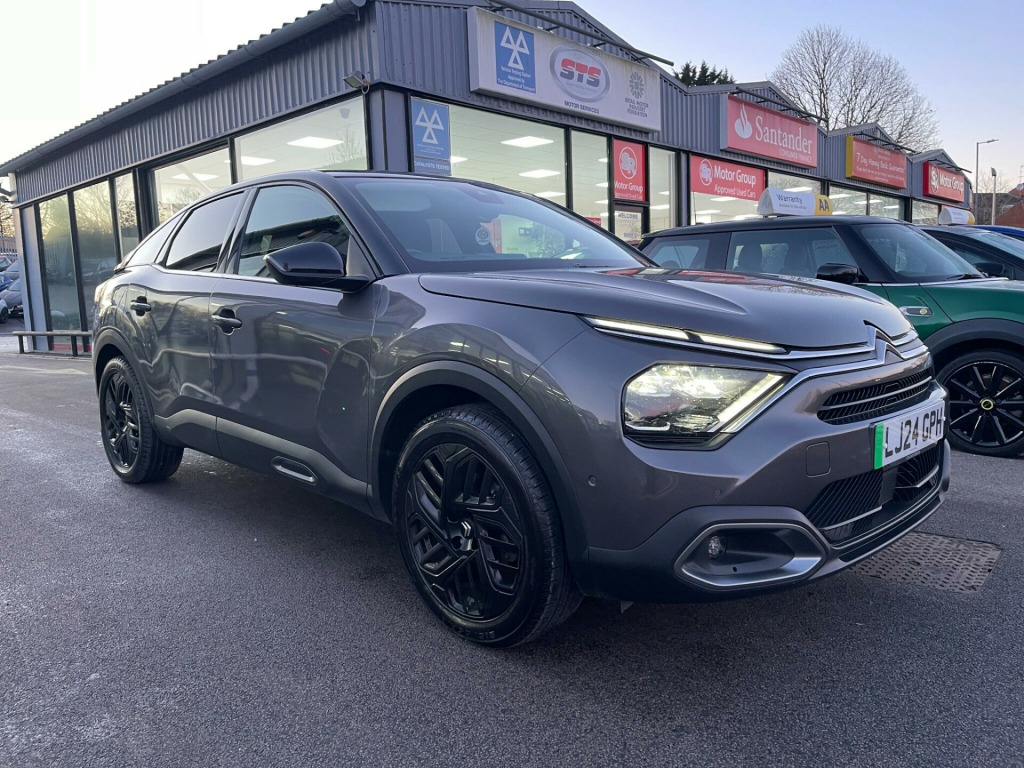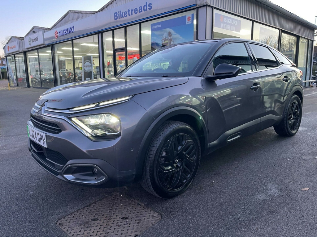 This 2024 Citroen e-C4 e-series is presented with a full service history and a clear vehicle history check, ensuring peace of mind for its next owner. This electric vehicle boasts a 50 kWh battery, offering a maximum range of 221 miles when new. Charging is convenient, with a full charge at home taking approximately 7 hours and 33 minutes using a 7kW charger, while rapid public charging can achieve 80% capacity in just 1 hour and 13 minutes. The vehicle comes with a 3 month warranty and a 12 month MOT provided on purchase, with its last service conducted on 5th January 2026.The e-C4 e-series is equipped with a suite of advanced features designed to enhance your driving experience. These include the My Citroen Drive Plus system, complete with Android Auto, Apple CarPlay, and Bluetooth connectivity. Parking is made effortless with front, rear, and lateral parking aids, including sensors and assistance systems. You'll also benefit from LED headlights for superior visibility and Active Blind Spot Detection for added safety. Keyless entry and start provide ultimate convenience. Furthermore, this model offers generous boot space, making it a practical choice for everyday use and longer journeys, indicating its superior practicality compared to similar vehicles.. 18in Alloy Wheels - Aeroblade Onyx Black, 2 Position Boot Floor, 5.5in Backlit Full-TFT Drivers Instrument Cluster, 7.4kW Single-Phase Onboard Charger, ABS - Anti-Lock Braking System, Active Blind Spot Detection, Advanced Comfort Seats, Advanced Comfort Suspension, Ambient Lighting Around Sides of Driver Instrument Cluster, Anti-Theft Alarm - Volumetric Protection, Automatic Dual Zone Air Conditioning, Body Colour Door Handles, Boot Light, Bumpers - Body Coloured, Citroen Connect Box with Emergency and Assistance System, Citroen HiFi System, City Smart Pad Support - Integrated Support for Attaching a Tablet Computer for Front Passenger, Compressor with Puncture Repair Kit, Dashboard Tray in Front Cabin, Deluxe Leather Steering Wheel with Two Command Blocks, Door Mirrors - Electrically Adjustable-Heated-Folding with Courtesy Lighting, Driver and Front Passenger Airbags, Driver and Passenger Sunvisor with Illuminated Vanity Mirror, ESP - Electronic Stability Programme, Electric Parking Brake, Electric Power Steering, Electric Windows - Front and Rear, Electrically Heated Front Seats, Electrochrome Interior Rear View Mirror with Automatic Day-Night Switching, Front Seat Belt Pretensioners, Front and Rear Interior Lighting - LED, Gloss Black Rear Skirt, Head-Up Display, Height Adjustable Drivers Seat with Adjustable Lumbar Support, Height Adjustable Passengers Seat, Height and Reach Adjustable Steering Wheel, High Level Acoustic Insulation Pack, Highway Driver Assist, Hill Start Assist, In-Crash Braking, Intelligent Beam Headlights, Keyless Entry and Start, LED Daytime Running Lights in V Signature, LED Front Fog Lights with Static Cornering Function, LED Headlights, Manual Child Locks, Manual Deactivation of Front Passenger Airbag, Map Pockets on Front Seat Backs, Mode 3 Charging Cable with Type 2 Connectors, My Citroen Drive Plus, Parking Aid - Front and Rear and Lateral, Perla Nera Black Painted Door Mirrors, Rain Sensing Automatic Front Windscreen Wipers, Raised Central Console with Armrest with Two Cupholders, Rear Central Folding Armrest with Cupholders with Ski Hatch, Remote Locking with Deadlocks, Remote Temperature Pre-Conditioning, Roof - Bi-Tone - Perla Nera Black, Row 1 - 12V Power Outlet and 1x USB Type-C Socket for Charging and Data Connection and 1x USB Type-A Socket for Charging, Row 1 Side Thorax Airbags, Row 1 and 2 Curtain Airbags, Row 2 - 1x USB Type-A Socket for Charging - 1x USB Type-C Socket for Charging, Safety Pack Plus, Seatbelt Unfastened on the Move Warning, Seats Rear - Split Folding, Side Windows with Chrome Detail - Rear Window Dark Tinted, Top Rear Vision Reversing Camera, Tyre Under Inflation Detection, Welcome and Goodbye Lighting, Wireless Smartphone Charging, XXL Storage in Front Cabin. Full service history