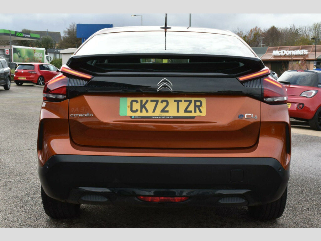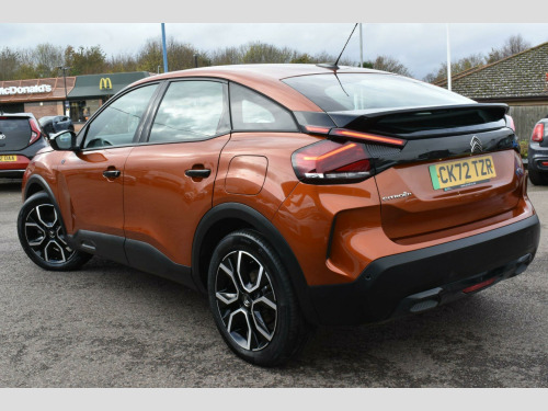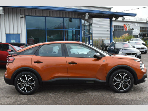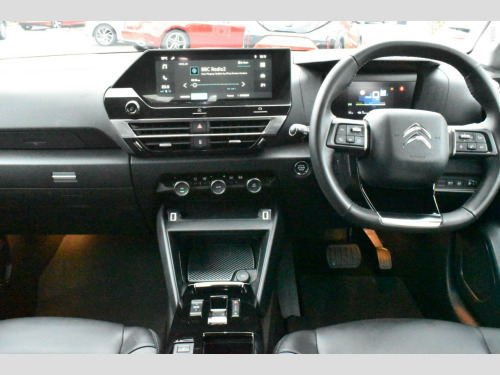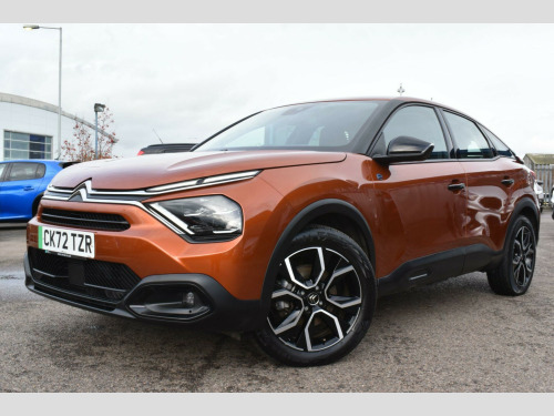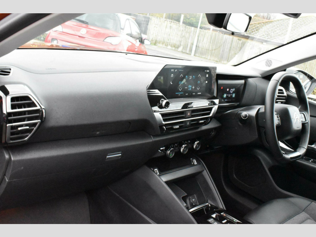 This 2022 Citroen e C4 Sense Plus is a superb example of an electric vehicle, offering a generous 217 mile maximum range from its 50 kWh battery. As a Sense Plus trim, this electric model comes equipped with a 10 inch high resolution touchscreen user interface, complete with Android Auto, Apple CarPlay, and Bluetooth connectivity. Navigating tight spots is made simple thanks to the Visio Park system, which includes rear parking sensors and a top rear vision reversing camera, all complemented by bright LED headlights for enhanced visibility.The large boot space ensures practicality for everyday needs and longer journeys alike. This Citroen e C4 Sense Plus stands out with its advanced parking assistance features, providing confidence and ease when manoeuvring. The integration of modern smartphone connectivity and efficient LED lighting further enhances the driving experience, making this electric hatchback a well rounded and appealing choice. FROM DECEMBER 1ST, ALL OUR VEHCILES ARE BY APPOINTMENT ONLY. in high resolution touchscreen user interface, 11kw three-phase on board charger, 18in alloy wheels - crosslight diamond cut, 5.5in backlit full-tft drivers instrument cluster, abs - anti-lock braking system, anodised blue colour pack, anti-theft alarm - volumetric, automatic dual zone air conditioning, automatic headlight activation, automatic rain sensitive windscreen wipers, body coloured door mirrors, boot light, bumpers - body coloured, citroen connect box with emergency and assistance system, citroen connect nav, citroen smart pad support, compressor with puncture repair kit, cruise control with speed limiter, dashboard tray in front cabin, driver and front passenger airbags, driver and passenger sunvisor with illuminated vanity mirror, esp - electronic stability programme, electric parking brake, electric power steering, electric windows - front and rear, electrically heated and folding door mirrors with courtesy lighting, front seat belt pretensioners, front and rear interior lighting - led, gloss black rear skirt, grained leather steering wheel with two command blocks, head-up display, height adjustable drivers seat with adjustable lumbar support, height adjustable passengers seat, height and reach adjustable steering wheel, high level acoustic insulation pack, hill start assist, in-crash braking, interior rear view mirror with manual day-night switching, keyless entry and start, led daytime running lights in v signature, led front fog lights with cornering function, led headlights, manual child locks, manual deactivation of front passenger airbag, map pockets on front seat backs, matt black a-pillar and gloss black b-pillar, mode 3 charging cable with type 2 connectors, raised central console with armrest with two cupholders, rear parking sensors, remote central locking with deadlocking, remote temperature pre-conditioning, row 1 - 12v power outlet and usb type-c socket for charging and data connection and 1x usb type-a socket for charging, row 1 side thorax airbag, row 1 and 2 curtain airbag, row 2 - 1x usb type-a socket for charging, safety pack, seatbelt unfastened on the move warning, seats rear - split folding, suspension with progressive hydraulic cushions - phc, tinted side windows with matt black detail, top rear vision reversing camera, two remote keys, tyre under inflation indicator, visio park, welcome and goodbye lighting