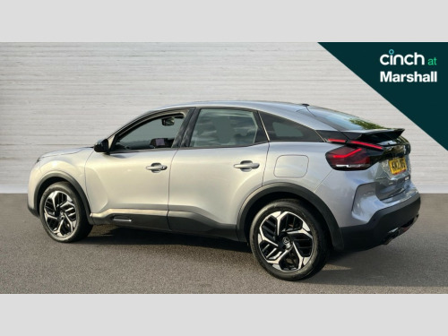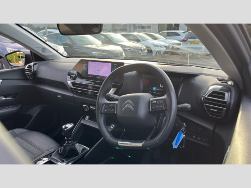 Citroen C4 1.2 PureTech [130] Sense Plus 5dr 10" high resolution touchscreen user interface, controlling media, connectivity and vehicle settings, 5.5 inch backlit full TFT driver's instrument cluster, Apple car play and Android auto, Citroen connect box emergency and assistance system, Citroen connect nav with speed cam and danger zones alert, Cruise control + speed limiter, Driver's head-up display, Electronic Power Steering (EPS), In-crash braking, Rear parking sensors, Visio Park 1 (rear parking camera), Voice commands, Suspension with progressive hydraulic cushions - double hydraulic stops on front suspension and single on rear suspension, 6 speakers, Auxiliary input socket, Bluetooth telephone and audio streaming, DAB Digital radio, Automatic headlights, Body colour bumpers, Body colour door handles, Electrically heated, folding and adjustable external rear view mirrors with courtesy lighting, Electrochrome interior rear-view mirror with automatic day-night switching, Front and rear electric windows, Gloss black rear skirt, LED daytime running lights in V signature, LED front fog lamps with static cornering function, LED front headlamps, Obsidian black painted external rear view mirrors, Rain sensing automatic front windscreen wipers, Welcome and goodbye lighting, 12V power outlet, 1x USB Type-C socket charging & data connection and 1x USB Type-A socket in 1st row and 1x USB Type-A socket charging in 2nd row, 3 rear headrests, Boot light, Chevrons cloth and leather effect textile seat upholstery, Dashboard tray in front cabin, Driver and passenger sunvisors with illuminated vanity mirrors, Dual zone automatic air conditioning, Front and rear LED interior lighting, Front head restraints, Grained leather steering wheel with two command blocks, Height adjustable driver's seat with adjustable lumbar support, Height adjustable front passenger seat, Height and reach adjustable steering wheel, Map pockets in rear of front seats, Raised centre console with two cup holders, Split folding rear seats, Two position boot floor, High level acoustic insulation pack - C4/C4 X/e-C4 X, 3x3 point rear seatbelts, ABS, Driver and front passenger airbags, Electric parking brake, ESP, Front seatbelt pretensioners, Hill start assist, Manual child lock in second row, Manual deactivation of front passenger airbag, Post collision safety brake, Row 1 and 2 curtain airbags, Row 1 side thorax airbags, Seatbelt unfastened on the move warning, Tyre underinflation detection, Anti-theft alarm (volumetric protection), Immobiliser, Remote locking with deadlocks, Two remote keys, 18" Diamond-cut Aeroblade alloy wheels with anti-theft locking wheel nuts, Puncture repair kit with compressor