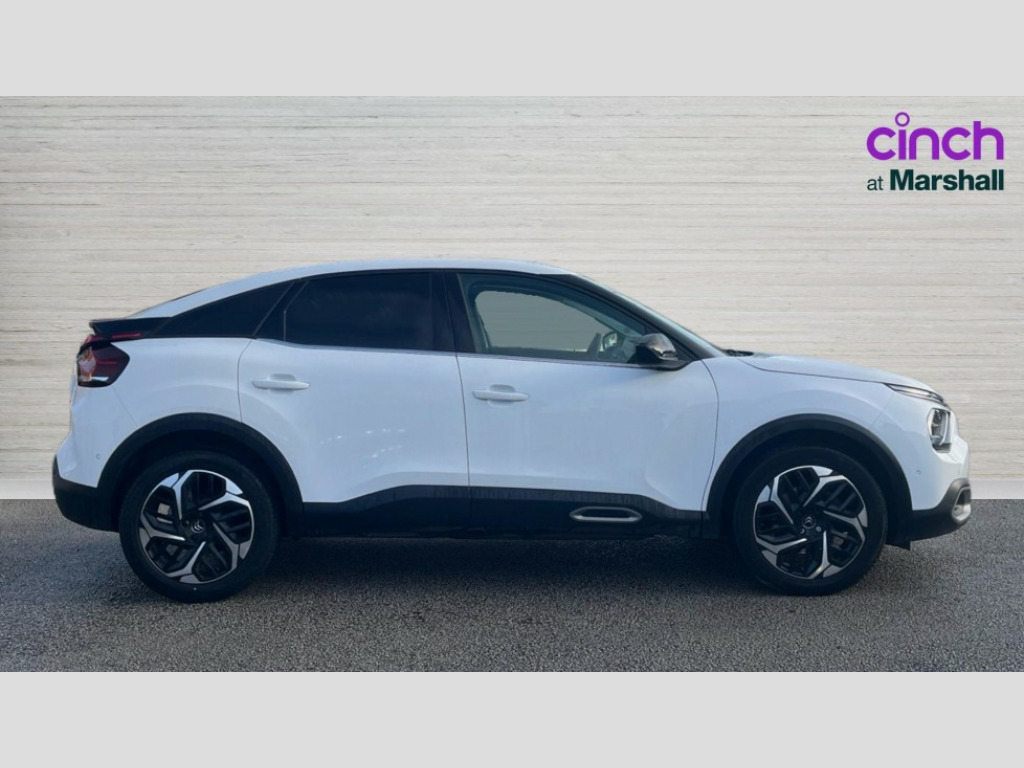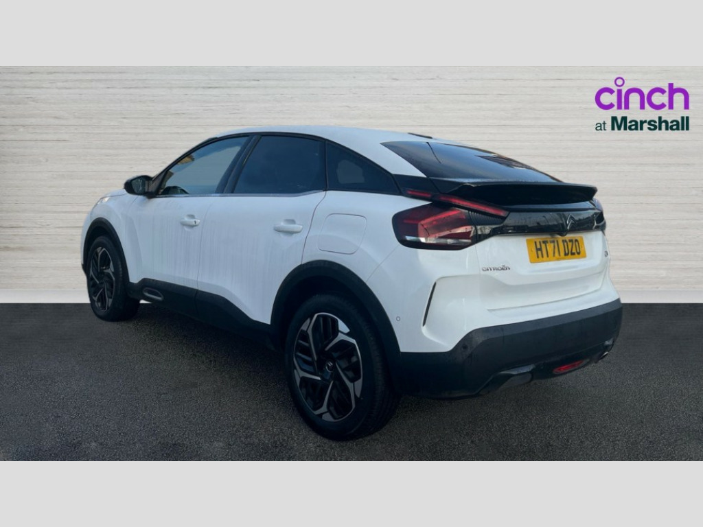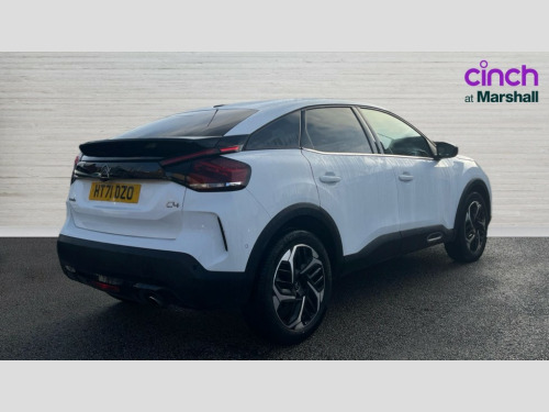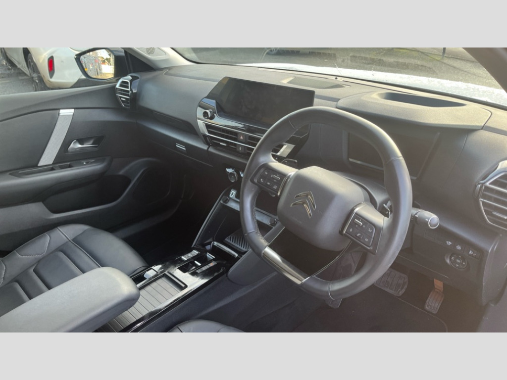 Citroen C4 1.5 BlueHDi [130] Shine Plus 5dr Auto 10" high resolution touchscreen user interface, controlling media, connectivity and vehicle settings, 5.5 inch backlit full TFT driver's instrument cluster with LED ambient lighting, Active blind spot detection, Apple car play and Android auto, Citroen connect box emergency and assistance system, Citroen connect nav with speed cam and danger zones alert, Driver's head-up display, Electronic Power Steering (EPS), In-crash braking, Speed limiter, Voice commands, Wireless smartphone charging, Diesel particulate filter, Suspension with progressive hydraulic cushions - double hydraulic stops on front suspension and single on rear suspension, Auxiliary input socket, Bluetooth telephone and audio streaming, Citroen Hifi system with 1 speaker in dashboard centre, 4 woofers in doors, 2 tweeters in pillars and 1 subwoofer, DAB Digital radio, Body colour bumpers, Body colour door handles, Body colour painted external rear view mirrors, Dark tinted rear windows and side windows with chrome detail, Electrically heated, folding and adjustable external rear view mirrors with courtesy lighting, Electrochrome interior rear-view mirror with automatic day-night switching, Front and rear electric windows, Gloss black rear skirt, Intelligent beam headlights, LED daytime running lights in V signature, LED front fog lamps with static cornering function, LED front headlamps, Rain sensing automatic front windscreen wipers, Welcome and goodbye lighting, 12V power outlet, 1x USB Type-C socket & data connection, 1x USB Type-A socket at 1st row + 1x USB Type-A socket , 1x USB Type-C socket in 2nd row, 3 rear headrests, Boot light, Dashboard tray in front cabin, Deluxe leather steering wheel with two command blocks, Driver and passenger sunvisors with illuminated vanity mirrors, Dual zone automatic air conditioning, Electrically heated front seats, Fitted carpet mats, Front and rear LED interior lighting, Front head restraints, Height adjustable front passenger seat, Height and reach adjustable steering wheel, Map pockets in rear of front seats, Raised centre console with armrest and two cup holders, Rear central folding armrest with cupholders and ski hatch, Split folding rear seats, Two position boot floor, High level acoustic insulation pack - C4/C4 X/e-C4 X, Hype black interior ambience with Siena leather and leather effect textile seats pack - C4 Shine plus/e-series, Safety plus pack with highway driver assist - C4/C4 X/e-C4 X, 3x3 point rear seatbelts, ABS, Driver and front passenger airbags, Electric parking brake, ESP, Front seatbelt pretensioners, Hill start assist, Manual child lock in second row, Manual deactivation of front passenger airbag, Post collision safety brake, Row 1 and 2 curtain airbags, Row 1 side thorax airbags, Seatbelt unfastened on the move warning, Tyre underinflation detection, Anti-theft alarm (volumetric protection), Immobiliser, Keyless entry and start, Remote locking with deadlocks, 18" Bi-tone diamond-cut aeroblade alloy wheels with anti-theft locking wheel nuts, Puncture repair kit with compressor