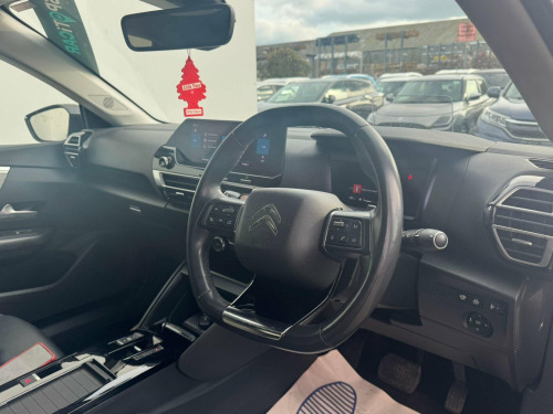 10in High Resolution Touchscreen User Interface, 18in Alloy Wheels - Aeroblade Dark - Smoke Grey Finish, 2 Position Boot Floor, 5.5in Backlit Full-TFT Drivers Instrument Cluster, ABS - Anti-Lock Braking System, Active Blind Spot Detection, Adaptive Cruise Control with Speed Limiter, Anti-Theft Alarm - Volumetric Protection, Automatic Dual Zone Air Conditioning, Automatic Headlight Activation with High Beam Assist, Boot Light, Bumpers - Body Coloured, Citroen Connect Box with Emergency and Assistance System, Citroen Connect Nav, City Smart Pad Support - Universal Tablet Cradle, Compressor with Puncture Repair Kit, Dashboard Tray in Front Cabin, Deluxe Leather Steering Wheel with Two Command Blocks, Driver and Front Passenger Airbags, Driver and Passenger Sunvisor with Illuminated Vanity Mirror, ESP - Electronic Stability Programme, Electric Parking Brake, Electric Power Steering, Electric Windows - Front and Rear, Electrically Heated and Folding Door Mirrors with Courtesy Lighting, Electrochrome Interior Rear View Mirror with Automatic Day-Night Switching, Front Seat Belt Pretensioners, Front and Rear Interior Lighting - LED, Gloss Black Rear Skirt, Head-Up Display, Height Adjustable Drivers Seat with Adjustable Lumbar Support, Height Adjustable Passengers Seat, Height and Reach Adjustable Steering Wheel, High Level Acoustic Insulation Pack, Hill Start Assist, In-Crash Braking, Keyless Entry and Start, LED Daytime Running Lights in V Signature, LED Front Fog Lights with Static Cornering Function, LED Headlights, Manual Child Locks, Manual Deactivation of Front Passenger Airbag, Map Pockets on Front Seat Backs, Matt Black A-Pillar and Gloss Black B-Pillar, Obsidian Black Painted External Rear View Mirrors, Parking Aid - Front and Rear and Lateral, Post Collision Safety Brake, Rain Sensing Automatic Front Windscreen Wipers, Raised Central Console with Armrest with Two Cupholders, Remote Central Locking with Deadlocking, Row 1 - 12V Power Outlet and 1x USB Type-C Socket for Charging and Data Connection and 1x USB Type-A Socket for Charging, Row 1 Side Thorax Airbags, Row 1 and 2 Curtain Airbags, Row 2 - 1x USB Type-A Socket for Charging, Safety Pack Plus, Seatbelt Unfastened on the Move Warning, Seats Rear - Split Folding, Side Windows with Chrome Detail - Rear Window Dark Tinted, Suspension with Progressive Hydraulic Cushions - PHC, Textured Grey Colour Pack, Top Rear Vision Reversing Camera, Tyre Under Inflation Indicator, Visio Park, Welcome and Goodbye Lighting
