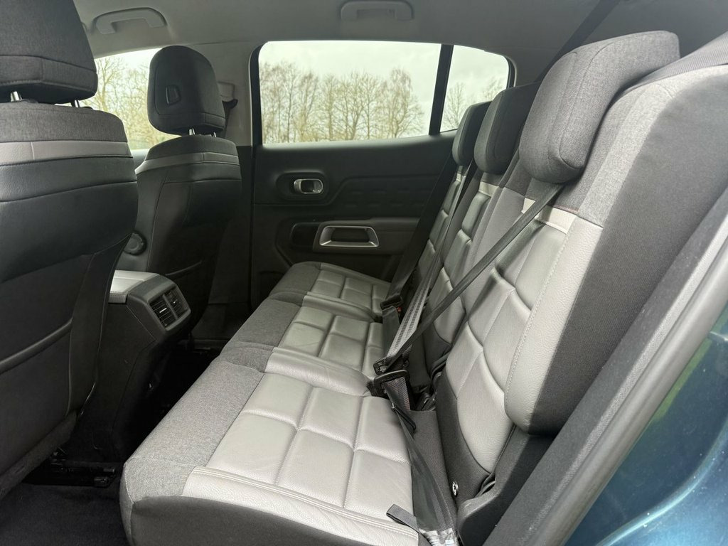 Enjoy peace of mind with a full service history and MOT valid until December 2026 on this 2019 Citroen C5 Aircross Flair. This 1.2 litre petrol model, adhering to Euro 6 emissions standards, comes with a 3 month warranty for added reassurance. Its Flair trim level includes convenient features such as rear parking sensors, a reversing camera displayed on the central screen, and a Park City Camera Pack with front and rear sensors, making parking manoeuvres straightforward. You can also enjoy seamless smartphone integration with Mirror Screen, supporting both Apple CarPlay and Android Auto, and benefit from keyless entry and start for effortless access. This Citroen C5 Aircross stands out with its impressive fuel economy, achieving up to 44 miles per gallon, and its low CO2 emissions, indicating a more environmentally conscious choice. Furthermore, its low insurance group rating suggests that running costs will be more affordable compared to similar vehicles. These highlights demonstrate how this particular C5 Aircross offers a compelling package of efficiency, practicality, and cost effectiveness. Leather Effect Cloth - Wild Grey Ambienc, Tijuca Blue, 12.3in Customisable TFT Instrument Displ, 12V Socket in Front of Cabin, 12v Socket in Boot, 18in Alloy Wheels - Swirl Two Tone Diamo, 2 Central Cup-Holders, 2 Position Boot Floor, 2x USB Sockets, 3 Independent Full Size Rear Seats with , 3D LED Rear Lights, ABS with Electronic Brakeforce Distribut, Active Blind Spot Monitoring System, Active Lane Departure Warning System, Advanced Active Safety Brake, Advanced Comfort Seats, Air Recirculation When Reverse Gear is E, Air Vents for Rear Seat Passengers, Airbags - Adaptive Driver and Front Pass, Airbags - Curtain Front and Rear, Airbags - Driver and Front Passenger Sid, Airbump Panels with