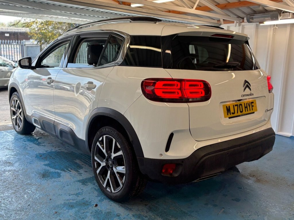 2 KEYS+1 FORMER KEEPER+HISTORY+NAV+DIGITAL DASH+CAMERA+PARKING SENSORS+ALLOYS+CLIMATE+CRUISE+BLUETOOTH+MEDIA+HPI CLEAR WITH VOSA MOT HISTORY, FULL DEALER FACILITIES+PART EXCHANGE WELCOME+GOOD MPG+FINANCE SPECIALISTS PCP AND HP+The car is in very good condition in and out . Bodywork and interior clean for age and mileage . Interior is clean and tyres good ,Engine and gearbox in good order. This 2020 Citroen C5 Aircross Flair Plus boasts exceptionally low mileage for its age, having covered just 15,000 miles. This Euro 6 compliant 1.2 litre petrol model offers impressive fuel economy, achieving up to 45 miles per gallon. The vehicle comes with an MOT valid until June 2026, providing peace of mind. Notable features include a convenient Smartphone Charging Plate with wireless charging capabilities, an Active Blind Spot Monitoring System with Blind Spot Assistance, and Automatic Dual Zone Climate Control for personalised comfort. You'll also find a Bluetooth Telephone Facility for seamless connectivity and Rear Parking Sensors with Parking Assistance to aid manoeuvring. The Flair Plus trim level of this Citroen C5 Aircross is designed to enhance your driving experience. The combination of its low mileage, excellent fuel efficiency, and comprehensive safety features like the Blind Spot Monitoring System clearly sets it apart from other vehicles in its class. The inclusion of modern conveniences such as wireless phone charging and dual zone climate control further demonstrate 12.3in Customisable TFT Instrument Displ, 12v Socket in Boot, 12V Socket in Front of Cabin, 19in Alloy Wheels - Art - Two Tone Diamo, 2 Central Illuminated Cup-Holders, 2 Position Boot Floor, 2x USB Sockets, 3 Independent Full Size Rear Seats with , 3D LED Rear Lights, ABS with Electronic Brakeforce Distribut, Active Blind Spot Monitoring System, Active Cruise Control with Stop and Go, Active Lane Departure Warning System, Advanced Active Safety Brake, Advanced Comfort Seats, Air Recirculation When Reverse Gear is E, Air Vents for Rear Seat Passengers, Airbags - Adaptive Driver and Front Pass, Airbags - Curtain Front and Rear, Airbags - Driver and Front Passenger Sid, Airbump Panels with Col
