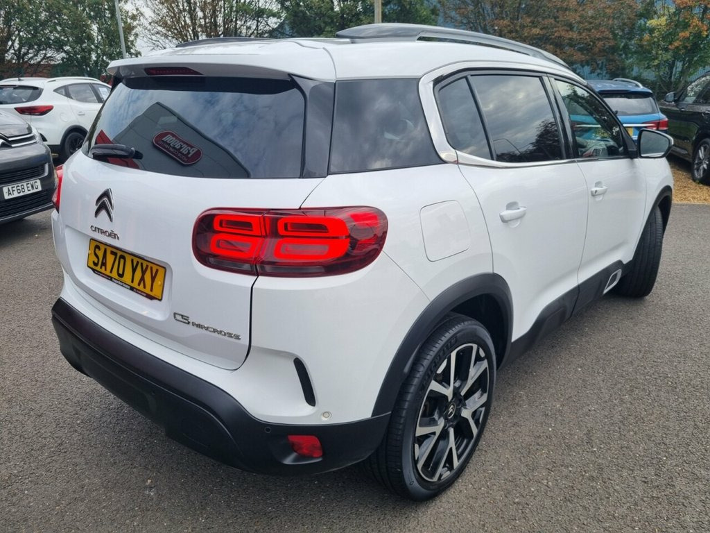 The 2020 Citroën C5 Aircross 1.5 BlueHDi Flair Plus is a bold and comfortable SUV that blends distinctive French design with advanced driving technology. Powered by a refined 1.5L BlueHDi diesel engine and paired with a smooth 6-speed manual transmission, it delivers strong fuel economy and a relaxed driving experience—perfect for long-distance journeys or city commuting. Key Features: Advanced Comfort Suspension: Citroën's unique Progressive Hydraulic Cushions® suspension system ensures a smooth, floaty ride that soaks up road imperfections for a truly serene driving experience. 12.3" Digital Instrument Cluster & 8" Touchscreen: Stay connected and in control with a fully digital cockpit that includes a customizable instrument cluster and a central touchscreen with built-in sat nav, Apple CarPlay, and Android Auto support. With its blend of comfort, practicality, and modern tech, the C5 Aircross Flair Plus stands out in the crowded SUV market as a stylish and family-friendly option 12.3in Customisable TFT Instrument Displ, 12V Socket in Front of Cabin, 12v Socket in Boot, 19in Alloy Wheels - Art - Two Tone Diamo, 2 Central Illuminated Cup-Holders, 2 Position Boot Floor, 2x USB Sockets, 3 Independent Full Size Rear Seats with , 3D LED Rear Lights, ABS with Electronic Brakeforce Distribut, Active Blind Spot Monitoring System, Active Cruise Control with Stop and Go, Active Lane Departure Warning System, Advanced Active Safety Brake, Advanced Comfort Seats, Air Recirculation When Reverse Gear is E, Air Vents for Rear Seat Passengers, Airbags - Adaptive Driver and Front Pass, Airbags - Curtain Front and Rear, Airbags - Driver and Front Passenger Sid, Airbump Panels with Col