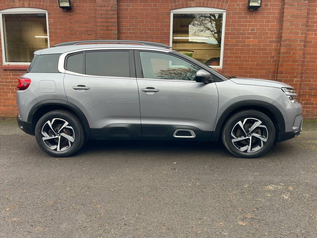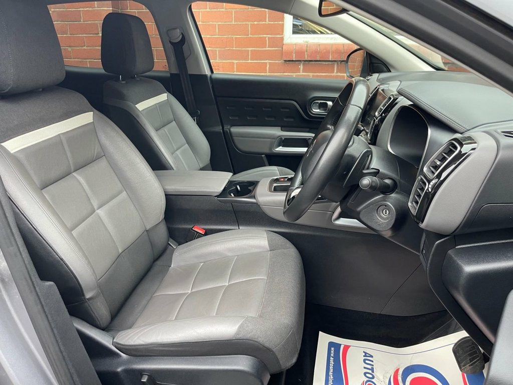 This 2019 Citroen C5 Aircross BlueHDi Flair is a superb example of a well maintained vehicle with full service history, along with the Cambelt just being replaced, for added piece of mind. Inside, you'll find a wealth of technology including a reversing camera displayed on the central screen with rear parking assistance, Mirror Screen functionality for seamless Apple CarPlay and Android Auto integration, and an acoustic laminated windscreen with automatic headlights, rain and brightness sensors. Further enhancing your driving experience are front parking sensors and an active blind spot monitoring system. Finished in stunning Cumulus Grey. Active Blind Spot Monitoring System, Automatic Dual Zone Climate Control, Programmable Cruise Control with Speed L, Active Lane Departure Warning System, 18in Alloy Wheels - Swirl Two Tone Diamo, Advanced Comfort Seats, Traffic Sign Recognition and Recommendat, Air Vents for Rear Seat Passengers, Reversing Camera Displayed on the Centra, Mirror Screen - Apple CarPlay - Android , Alarm, Auto-Dimming Electrochrome Rear View Mir, Bluetooth Telephone Facility, Rear Parking Sensors, Central 8in Capacitive Touch Screen, Exterior Temperature Indicator with Ice , Citroen Connect Box with Emergency and A, Collision Risk Alert, Cumulus Grey, DAB - Digital Audio Broadcasting - AM-FM, Dark Tinted Rear W
