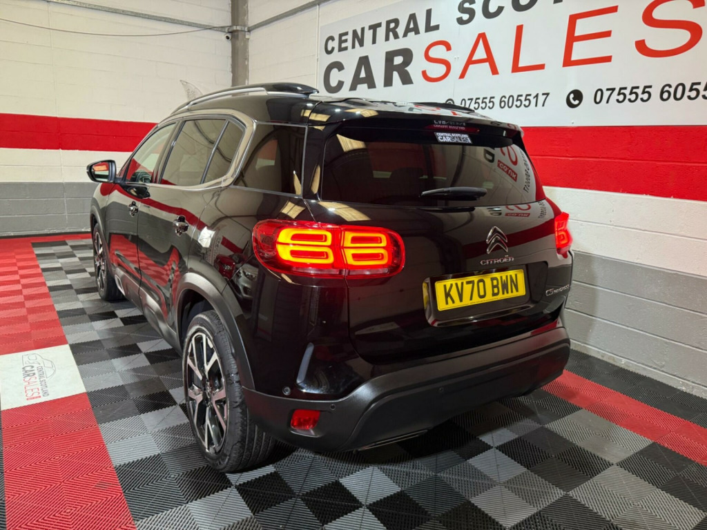 This 2021 Citroen C5 Aircross BlueHDi Shine Plus is a well maintained example of this popular family SUV. Finished in a striking black exterior with 19 inch Art alloy wheels, this Euro 6 compliant model boasts a 1.5 litre diesel engine. Inside, you'll find a smartphone charging plate for convenient wireless phone charging, and the LED headlights ensure excellent visibility. The Shine Plus trim level also includes the Visibility Pack, which offers automatic headlight activation for added convenience.This C5 Aircross is designed for practicality and efficiency. It offers a generous boot space, making it ideal for carrying luggage or shopping. With an impressive fuel economy of 57 miles per gallon, this diesel model is an economical choice for your motoring needs. Furthermore, its low CO2 emissions highlight its environmental consideration compared to many other vehicles in its class. in alloy wheels - art - black, black exterior colour pack, grained leather-cloth - metropolitan grey ambience with grey-graphite, 12.3in customisable tft instrument display, 12v socket in front of cabin, 12v socket in boot, 19in alloy wheels - art - two tone diamond cut, 2 central illuminated cup-holders, 2 position boot floor, 2x usb sockets, 3 independent full size rear seats with adjustable recline angle, 3d led rear lights, abs with electronic brakeforce distribution - ebd, acoustic laminated windscreen with rain and brightness sensors, active blind spot monitoring system, active cruise control with stop and go, active lane departure warning system, advanced active safety brake, advanced comfort seats, air recirculation when reverse gear is engaged, air vents for rear seat passengers, airbags - adaptive driver and front passenger airbags, airbags - curtain front and rear, airbags - driver and front passenger side airbag, airbump panels with colour insert on lower portion of the doors, alarm, aluminium pedals and foot rest, anti odor and pollen filter, auto-dimming electrochrome rear view mirror, automatic door locking when moving off, automatic dual zone climate control, automatic hazard light activation upon heavy brake application, automatic headlight activation via windscreen mounted sensors, automatic windscreen wipers, auxiliary point, black upper and lower grille, bluetooth telephone facility, body colour door handles, body-colour rear spoiler with stainless steel edging trim, c5 aircross monogramme on boot rear, carpet mats - front and rear, central 8in capacitive touch screen, central front armrest with butterfly-wing opening and illuminated storage compartment, citroen connect box with emergency and assistance system, citroen connect nav includes tomtom live updates (3 year subscription from new), citroen logo and monogramme on rear, coffee break alert, collision risk alert, compressor with puncture repair kit, dab - digital audio broadcasting - am-fm and mp3 compatible radio with two tweeters and four speakers, dsc - dynamic stability control and asr - electronic anti-skid system, dark tinted rear windows and rear windscreen, dashboard - open central storage compartment, dimmable white mood lighting, driver attention alert, eco plus mode, esp - electronic stability programme including traction control, electric - heated and folding body coloured door mirrors with integrated led indicator and kerb puddle light, electric child locking functionality on rear windows and doors, electric driver seat adjustment - height - fore/aft and backrest angle, electric power steering, electronic code immobiliser, electronic parking brake, extended traffic sign recognition and recommendation, exterior temperature indicator with ice warning, fixing rings in load area x4, front fog lights with cornering function, front interior light with reading spotlights x2 and rear interior light with timer, front optimised safety headrests and rear retractable headrests x3 height adjustable, front parking sensors, front three-point retractable seatbelts - height-adjustable - with pre-tensioners and force limiters, front and rear led welcome and reading lights, gei - gear efficiency indicator, gear lever - satin chrome, gloss black - a and b pillar, gloss black touch screen surround with integrated tactile buttons and chrome finisher, grab handles x3 - retractable with damping, guide me home headlights function, halogen rear fog lights, halogen rear numberplate lights, hands-free tailgate - button on key - dashboard or foot operation possible, headlights left on audible warning, heated rear windscreen with integrated antenna, height and reach adjustable steering wheel, hinged parcel shelf, horn - two-tone, isofix child seat fittings x3 in the front passenger seat and two outer rear seats, intelligent beam headlights, keyless entry and start, led daytime running lights, led front indicators, led headlights, led high level central brake light, leather effect dashboard facia, leather effect interior door handles, longitudinal roof rails, magic wash, manual passenger seat adjustment - height - fore-aft and backrest angle, map pockets on front seat backs, matt black lower rear skirt, matt black rear bumper facia with chrome exhaust effect trim, matt black side sill with airbump panels and anodised silver colour touch, matt black wheel arch extensions, mirror screen - apple carplay - android auto, multi-function leather steering wheel with 2 command blocks, multifunction trip computer, one-touch electric front and rear windows with pinch protection, open central storage area below touch screen, painted front bumper, painted rear bumper, park city camera pack, rear centre console ventilation system, rear coat hooks x2, rear parking sensors, rear seats with adjustable height headrests, rear three-point retractable seatbelts x 3 - with pre-tensioners and force limiters in the outer rear seats, rear windscreen wiper - triggered automatically in reverse gear, remote central locking with deadlocks, reversing camera displayed on the central 