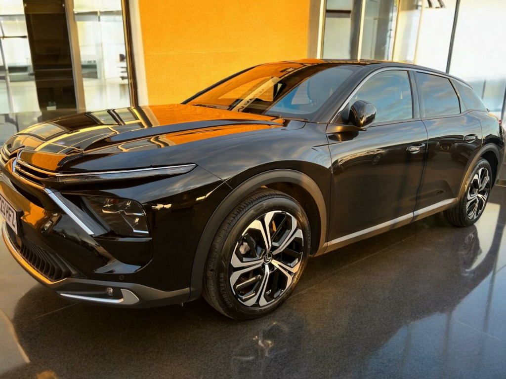 The 2023 Citroen C5 X Shine is a stylish car with a 1.2L petrol engine and Euro 6 emission class. The vehicle comes equipped with My Citroen Drive Plus, including Bluetooth connectivity, and a range of advanced driver assistance systems, such as adaptive cruise control. Parking is made easy and safe with front and rear parking sensors, a reversing camera with top rear vision, and parking assistance features. Electrically adjustable, heated, and folding door mirrors, complete with blind spot assistance, add to the convenience. The LED headlamps, featuring automatic high beam assist, ensure excellent visibility on the road.The Citroen C5 X boasts a large boot space, making it more practical than similar vehicles. It also accelerates from 0-62mph in 10.4 seconds, which means it's quicker off the mark than other cars in its class.