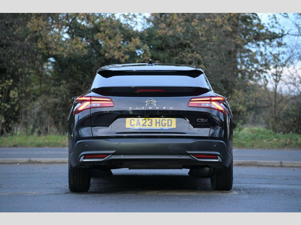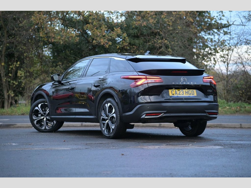 Prestige Car Supermarket in York presents this executive and comfortable 2023 Citroën C5 X 1.2 PureTech Shine Hatchback. Finished in optional Perla Nera Black metallic paintwork, this petrol model delivers 130 horsepower through a smooth EAT8 automatic gearbox and is Euro 6 compliant. The luxurious and spacious cabin includes the Multifunction Heated Leather Steering Wheel with Paddle Shifters, an Acoustic Insulated Windscreen, and Black Leather-Effect central and door panel inserts. Key features that promote comfort are the Citroën Advanced Comfort Suspension and Automatic Dual Zone Air Conditioning. Technology is modern and connected, featuring the 12in Central Touch Screen, 7in Digital Instrument Cluster, My Citroën Drive Plus, an Extended Head Up Display projected onto the windscreen, and Inductive Wireless Smartphone Charging. Exterior styling is enhanced by 19in Aero-X Diamond Cut Alloy Wheels, Automatically Illuminating LED Headlamps, and Gloss Black Door Mirrors. Safety and convenience are excellent with Proximity Keyless Entry and Start, Advanced Driver Assistance System with Active Safety Brake, Front and Rear Parking Sensors, and a Reversing Camera with Top Rear Vision, all ensuring a highly connected, comfortable, and well-equipped driving experience. Perla Nera Black, 12V Socket - Centre Console, 12V Socket - Luggage Compartment, 12in Central Touch Screen with Separate , 19in Alloy Wheels - Aero-X Diamond Cut w, 2 Front USB Plugs - 1 USB Type C Charge , 2 Rear USB Plugs - Charging Only, 7in Digital Instrument Cluster with Smok, ABS - Anti-Lock Braking System, Acoustic Insulated and Tinted Windscreen, Advanced Driver Assistance System with R, Automatic Dual Zone Air Conditioning, Automatic Illumination of Headlamps when, Automatic Rain-Sensitive Flat Blade Wipe, Automatic Welcome and Follow Me Home Lig, Automatically Illuminating LED Headlamps, Black Leather-Effect Central Armrest wit, Black Leather-Effect Front and Rear Door, Black Tie D