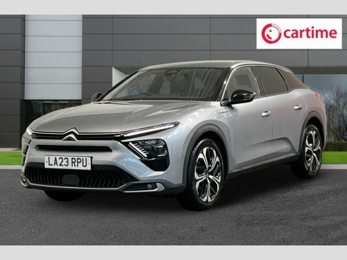 This 2023 Citroen C5 X Shine Plus is presented with a clear vehicle history check, offering you peace of mind. This striking model features a 1.6 litre petrol engine, meeting Euro 6 emission standards. Inside, you'll find a multifunction heated steering wheel crafted from grained leather, complete with paddle shifters for manual gear selection and controls for driving assistance and infotainment. The Shine Plus trim also boasts LED headlamps with automatic high beam assist, and an extended head up display that projects information onto the windscreen. For added convenience, there is a handy storage box located under the main boot floor. The Citroen C5 X Shine Plus excels with its Citroen Advanced Comfort Suspension, designed to provide an exceptionally smooth and refined driving experience, setting it apart from other vehicles in its class. This model also offers generous boot space, perfect for accommodating luggage or shopping. When it comes to performance, the C5 X accelerates from 0 to 60 miles per hour in 10.4 seconds, demonstrating a capable and responsive drive. 12in Central Touch Screen with Separate , 12V Socket - Centre Console, 12V Socket - Luggage Compartment, 19in Alloy Wheels - Aero-X Diamond Cut w, 2 Front USB Plugs - 1 USB Type C Charge , 2 Rear USB Plugs - 1 Type C Charging and, 7in Digital Instrument Cluster with Smok, ABS - Anti-Lock Braking System, Acoustic Insulated and Tinted Front and , Acoustic Insulated and Tinted Windscreen, Advanced Driver Assistance Systems, Aluminium Door Sill Protectors, Automatic Dual Zone Air Conditioning, Automatic Illumination of Headlamps when, Automatic Rain-Sensitive Flat Blade Wipe, Automatic Welcome and Follow Me Home Lig, Black Leather-Effect Central Armrest wit, Black Leather-Effect Front and Rear D