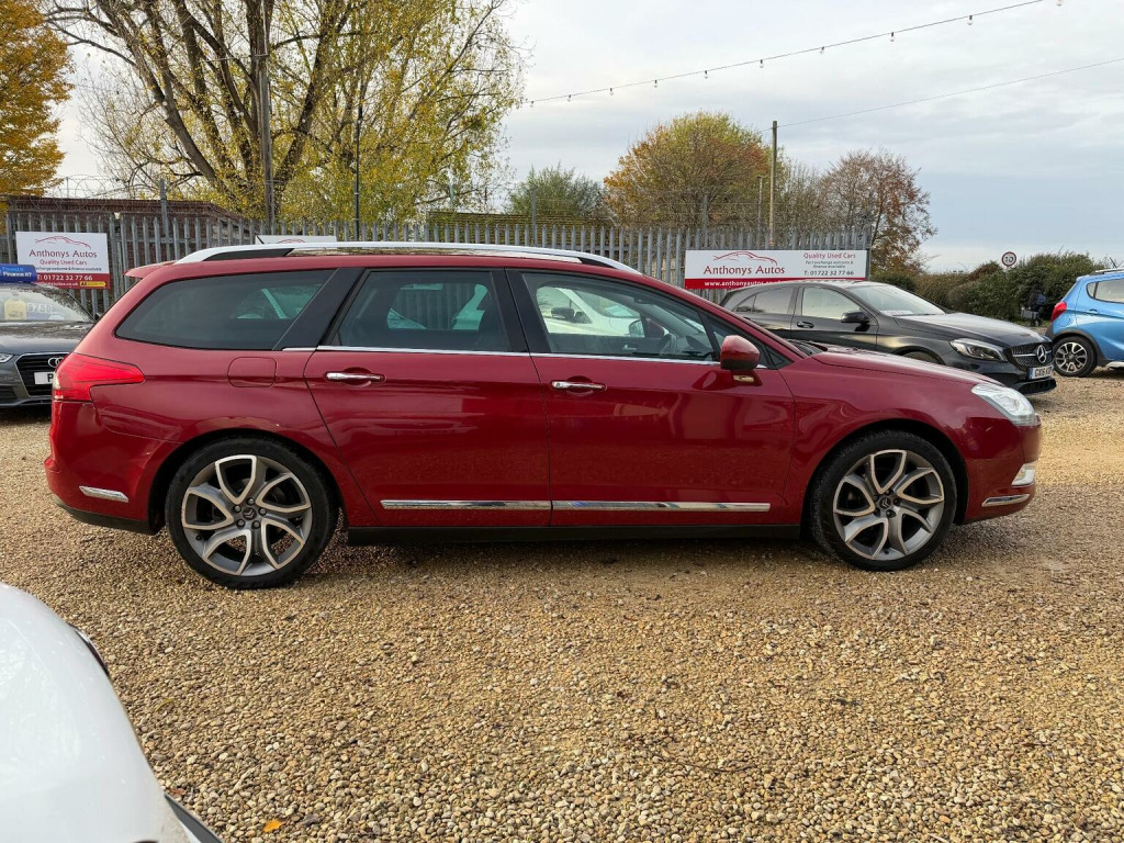 Citroen C5 2.0 HDi 16V Exclusive 5dr in Red with heated black Leather interior. This top of the range car is in excellent condition throughout with a Full Service history. Comes with a NEW MOT and SERVICE. Excellent Condition both inside and out. This is a pet free, non smoker car. Specification includes: Full leather seats, Heated, Panoramic Glass roof, Sat Nav, 4 x electric windows, Dual climate control, height adjustable driver and passenger seat, rain sensor, Hands Free Bluetooth Phone, auto lights, remote central locking, Alarm, immobiliser, dual AC, USB, AUX port, driver information centre, auto dipping rear view mirrors, Isofix, alarm, Leather-covered steering wheel, trip computer, third brake light, traction control, load cover, tow bar, front fog fights + 3 keys and more. All Major Cards Accepted. All Part Exchange Welcome.