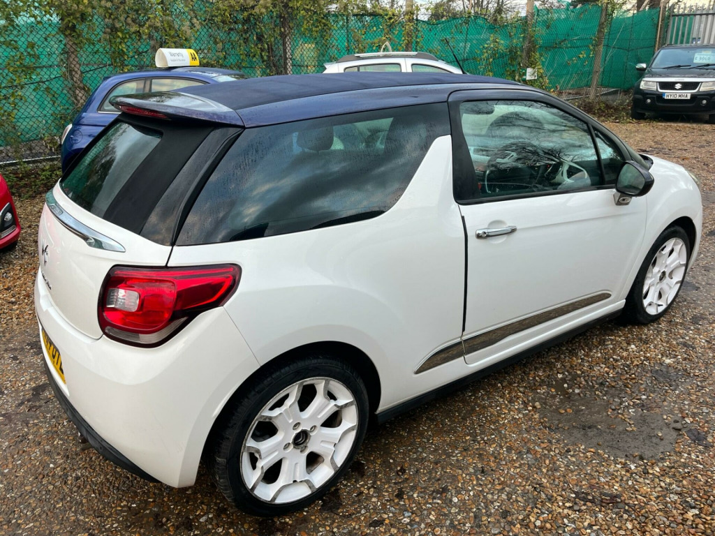 WE ARE DELIGHTED TO OFFER YOU THIS LOVELY CITROEN DS3 CABRIO 1.6 VTi Style Plus 2 DOOR, THE CAR HAS ONLY DONE A GENUINE 46K WITH A FULL SERVICE HISTORY, THE LAST LOVELY LADY OWNER HAS OWNED THIS CAR FOR THE LAST 9 YEARS , AND HAS CLEARLY LOOKED AFTER IT, THE CAR HAS A NEW MOT ( WITH NO ADVISORY NOTICES ) THE CAR HAS A FULL SERVICE HISTORY 8 SERVICES INFACT, THERE ARE 2 X KEYS, 1 X REMOTE & 1 X SPARE, THE CAR IS ALSO SUPPLIED WITH 6 MONTHS AA PARTS AND LABOUR WARRANTY & 12 MONTHS AA BREAKDOWN COVER.......PLEASE FEEL FREE TO RESERVE THIS CAR FOR £100, THIS IS FULLY REFUNDABLE IF YOU ARE NOT 100% HAPPY ONCE YOU HAVE SEEN AND DRIVEN . v socket, 17in alloy wheels - bellone black, 3d led rear lights, abs - anti-lock braking system, air conditioning, air conditioning - automatic-digital, airbags - driver, armrest - front centre, auto-dimming electrochrome rear view mirror, automatic activation of hazard warning lights, automatic door and boot locking when in motion, auxiliary socket, black panel night-time instrument lighting, bottle holder, chrome front grille surround, connecting box - bluetooth system, cruise control, curtain airbags, dark tinted rear windows, dashboard - shiny black, door handles - chrome, door mirrors - electrically adjustable-heated-folding, door sill protector - chrome, ebfd - electronic brakeforce distribution, electric windows - front with one-touch operation on drivers side, electronic stability control, emergency brake assistance, exterior temperature display, front courtesy reading lights, front fog lights, front fog lights - chrome surround, front lateral airbags, front passenger airbag, gei - gear efficiency indicator, gloss black centre console, headlights - automatic, headlights - halogen, height and reach adjustable steering wheel, height-adjustable driver seat, isofix - child seat anchorage points - outer rear, interior mood lighting, intro signature, led daytime running lights - drls, lashing eyes in the boot, luggage compartment - lighting, matching body-roof colour, multi-function on-board trip computer, plus pack, puncture repair kit, radio - rds with cd and mp3 player, rain sensing automatic front windscreen wipers, rear head restraints, rear parking sensors, remote central locking with deadlocks, roof - black touch fabric, roof colour painted door mirrors with chrome base, scented air freshener, seat belt unfastened warning - driver, seats - split folding and reclining rear, side rubbing strips - chrome, speakers x6, speed limiter - adjustable, steering wheel - leather with chrome effect inserts, steering wheel mounted controls, storage - front door pockets, storage - front seat back pockets, storage - rear door pockets, sunvisors - front with covered/illuminated mirror, suspension - sports, usb socket, upper dashboard - soft-touch effect, variable power assisted steering
