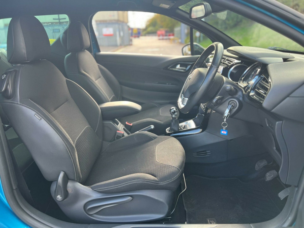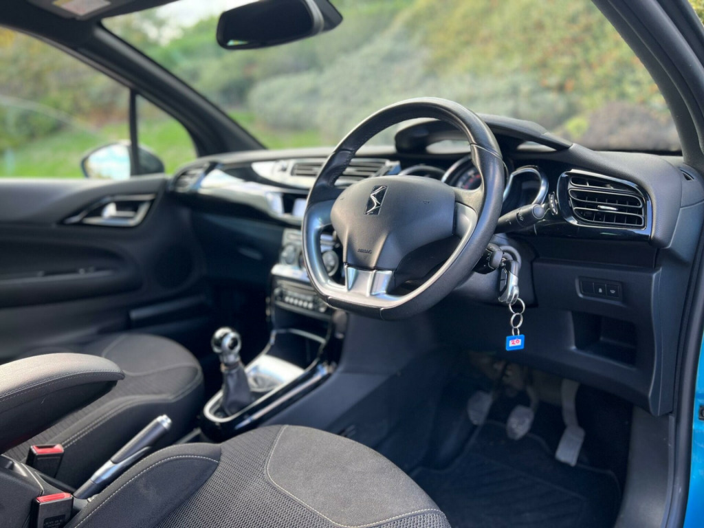 2015 Citroen DS3 1.2 PureTech DStyle Plus Euro 6 (s/s) 3dr in Blue. Only 45,000 warranted miles on the clock. Car comes with a 12 Month Warranty!! MOT till 24th September 2026. Only 2 previous owners from new. £20 Road Tax for the year. Full Service History Available: 10 Services 3 Main Dealer. Car drives well with no mechanical faults. AIRBAG RECALL COMPLETED!!! Full V5 Available. Good spec including: Leather Steering Wheel, CD/DAB Radio/Bluetooth/AUX, Privacy Glass, Parking Sensors, AC/Climate Control, Electric Windows, Electric Mirrors, Alloy Wheels, Cruise Control, Central Locking and many more. Nationwide Delivery Available. P/X Welcome. HPI Clear. 2 Keys. Any questions don't hesitate to contact us on 07443456706. Whatsapp available as well v socket - front, 17in alloy wheels - aphrodite black, 3d led rear lights, abs - anti-lock braking system, air conditioning - automatic-digital, airbags - driver, armrest - front centre, auto-dimming electrochrome rear view mirror, automatic activation of hazard warning lights, automatic door and boot locking when in motion, auxiliary socket, black panel night-time instrument lighting, bottle holder, carpet mats - front and rear, chrome front grille surround, city signature pack, connecting box - bluetooth system, contrasting body-roof colour, courtesy reading lights - front, cruise control with speed limiter, curtain airbags, dark tinted rear windows, door handles - chrome, door mirrors - electrically heated-folding, door sill protector - chrome, drivers and passengers sunvisor with courtesy mirror, ebfd - electronic brakeforce distribution, electric windows - front with one-touch operation on drivers side, electronic stability control, emergency brake assistance, exterior temperature display, front fog lights, front fog lights - chrome surround, front lateral airbags, front passenger airbag, gei - gear efficiency indicator, gloss black centre console, gloss black kit - gloss black dashboard with black gear knob, headlights - automatic, headlights - halogen, height and reach adjustable steering wheel, height-adjustable driver seat, isofix - child seat anchorage points - outer rear, interior mood lighting, led daytime running lights - drls, lashing eyes in the boot, luggage compartment - lighting, matching body-roof colour, multi-function on-board trip computer, plus pack, pollen filter, puncture repair kit, radio - rds with cd and mp3 player, rain sensing automatic front windscreen wipers, rear head restraints, remote central locking with deadlocks, roof colour painted door mirrors with chrome base, scented air freshener, seat belt unfastened warning - driver, seats - 1-3 - 2-3 split folding rear, side rubbing strips - chrome, speakers x6, steering wheel - leather with chrome effect inserts, steering wheel mounted controls, storage - front door pockets, storage - front seat back pockets, storage - rear door pockets, suspension - sports, tyre pressure monitor, usb socket, upper dashboard - soft-touch effect, variable power assisted steering