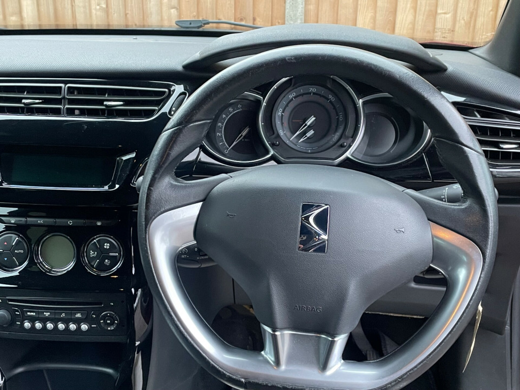 This 2014 Citroen DS3 1.2 PureTech DStyle Plus Hatchback with 79807 miles on the clock is a stylish and efficient choice for a small family or individual driver. With a fuel type of petrol and 3 doors, this car is ULEZ compliant and has an MOT that expires on 04/06/2026. It comfortably seats 5 people and includes features such as a 12V Socket - Front, Auxiliary Socket, Connecting Box - Bluetooth System, Radio - RDS with CD and MP3 Player, and Speakers x6. This Euro 6 (s/s) model offers a smooth manual drive with 110 ps and is a reliable hatchback option for those who value fuel efficiency and style. v socket - front, auxiliary socket, connecting box - bluetooth system, radio - rds with cd and mp3 player, speakers x6, usb socket, 17in alloy wheels - aphrodite black, chrome front grille surround, contrasting body-roof colour, dark tinted rear windows, door handles - chrome, door mirrors - electrically heated-folding, electric windows - front with one-touch operation on drivers side, front fog lights - chrome surround, matching body-roof colour, puncture repair kit, roof colour painted door mirrors with chrome base, side rubbing strips - chrome, 3d led rear lights, front fog lights, headlights - automatic, headlights - halogen, led daytime running lights - drls, abs - anti-lock braking system, airbags - driver, automatic activation of hazard warning lights, automatic door and boot locking when in motion, curtain airbags, ebfd - electronic brakeforce distribution, electronic stability control, emergency brake assistance, front lateral airbags, front passenger airbag, isofix - child seat anchorage points - outer rear, remote central locking with deadlocks, seat belt unfastened warning - driver, air conditioning - automatic-digital, armrest - front centre, auto-dimming electrochrome rear view mirror, black panel night-time instrument lighting, bottle holder, carpet mats - front and rear, city signature pack, courtesy reading lights - front, door sill protector - chrome, drivers and passengers sunvisor with courtesy mirror, gloss black centre console, gloss black kit - gloss black dashboard with black gear knob, height and reach adjustable steering wheel, height-adjustable driver seat, interior mood lighting, lashing eyes in the boot, luggage compartment - lighting, plus pack, pollen filter, rain sensing automatic front windscreen wipers, rear head restraints, scented air freshener, seats - 1-3 - 2-3 split folding rear, steering wheel - leather with chrome effect inserts, steering wheel mounted controls, storage - front door pockets, storage - front seat back pockets, storage - rear door pockets, upper dashboard - soft-touch effect, cruise control with speed limiter, exterior temperature display, gei - gear efficiency indicator, multi-function on-board trip computer, suspension - sports, tyre pressure monitor, variable power assisted steering