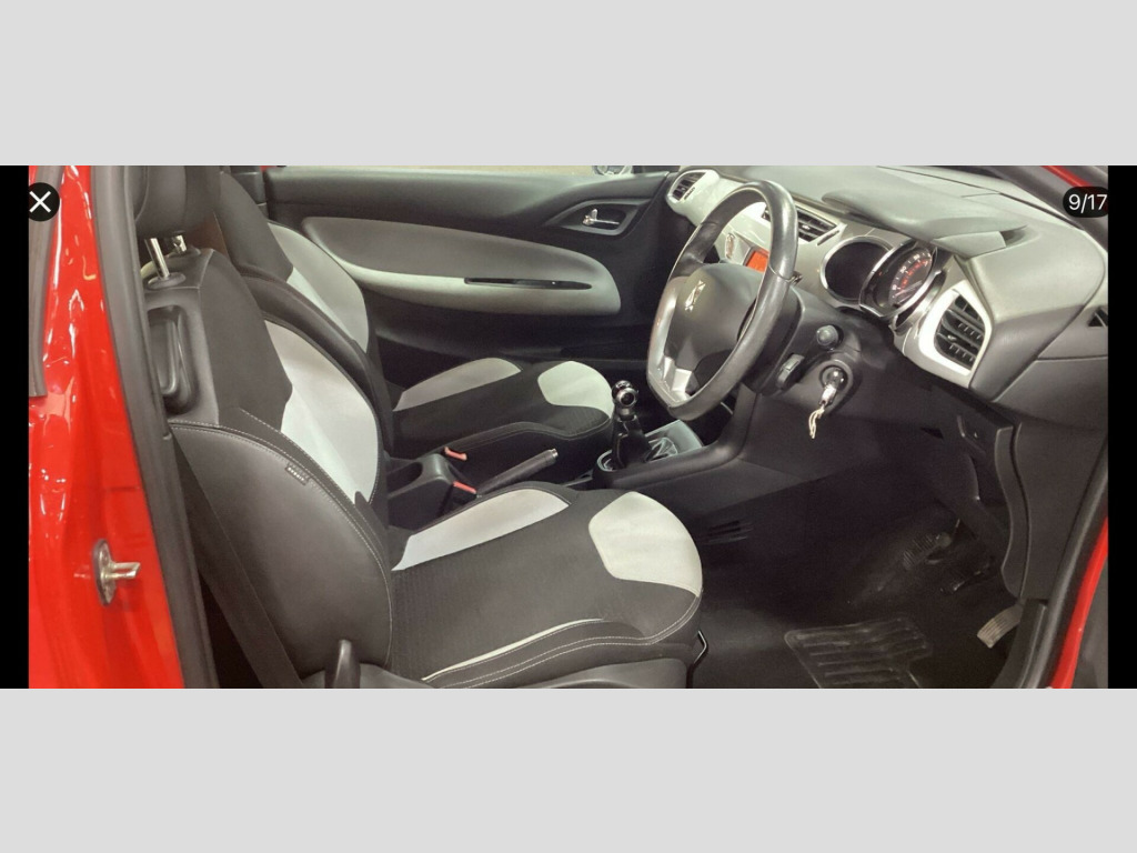 ******** SAME DAY FINANCE AVAILABLE ******** COMES WITH 03 MONTHS FREE WARRANTY ********* **********PERFECT EXAMPLE OF EXCELLENT CAR********* Another Perfect example of 2010 Citreon DS 3 1.4 VT-I 16V D-Sign SE Special Edition , 3 dr Hatchback , 5 Seats , 110 bhp with Metallic Red / Black Colour and Full Grey / Black Velour Interior which has just covered 88000 miles (warranted) .M A N U A L , 88000 Miles , 2010 CITREON DS3 1.4 VT-I 16V D-Sign SE Special Edition , 3 dr , Hatchback , 110 bhp , 5 Seats , 10 Reg , Metallic Red / Black Colour , Excellent Condition , Full Grey / Black Velour Interior , Power Steering , Remote Central Locking , Adjustable Steering Column / Wheel , Front and Rear Head Restraints , Immobiliser ,Front and Rear Fog Lights , Traction Control , Iso-fix child seat , A I R C O N D I T I O N I N G / Climate Control , Anchor Points , A B S ,Body colour Bumpers , Multiple Air - bags , Electric Mirrors , Radio / CD Player , Alloy Wheels , Just been Fully Valeted , Full Service History + Old m.o.ts to Prove Mileage , 4 Good Tyres , M.O.T Till JULY 2026 , Ideal First / Family Car , Very Clean in and out , Cheap to Run and insure , Cheap to Tax , Price for Quick sale . - fi & bluetooth with usb box, led running lights, 16in ashera white alloy wheels, black roof, 17in bellone black alloy wheels, led signature pack, space saver spare wheel, air conditioning, leather- leather signature pack, 16in steel wheels, body coloured roof, tyre repair kit