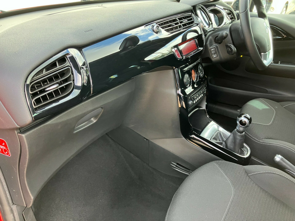 2014 '64' Citroen DS3 1.6 D-Style+* AIRBAG recall completed.Finance available, please call for details.INTERIOR: Black cloth interior. Electric windows. Electric mirrors. Air con. Remote central locking. Power steering. Multiple air bags. Factory radio / cd player / USB etc. Cruise control. EXTERIOR: Red paintwork, colour coded bumpers. Black roof and mirrors. 17'' DS3 alloy wheels. Some minor marks, consistent with age etc.MECHANICALS: 1598cc petrol engine. 5 speed manual gearbox. All running gear good, and the car drives well. Recent full engine service at 77k.PAPERWORK: HPI clear. Full logbook. Will come with a years MOT. Some servicing invoices etc. Invoice for the fresh service. OVERALL: Nice, sensible little car, that is cheap to run and maintain. Sporty looks. Drives great. Recent engine service etc.. Long MOT., v socket - front, auxiliary socket, connecting box - bluetooth system, radio - rds with cd and mp3 player, speakers x6, usb socket, 17in alloy wheels - aphrodite black, chrome front grille surround, contrasting body-roof colour, dark tinted rear windows, door handles - chrome, door mirrors - electrically heated-folding, electric windows - front with one-touch operation on drivers side, front fog lights - chrome surround, puncture repair kit, roof colour painted door mirrors with chrome base, side rubbing strips - chrome, 3d led rear lights, front fog lights, headlights - automatic, headlights - halogen, led daytime running lights - drls, abs - anti-lock braking system, airbags - driver, automatic activation of hazard warning lights, automatic door and boot locking when in motion, curtain airbags, ebfd - electronic brakeforce distribution, electronic stability control, emergency brake assistance, front lateral airbags, front passenger airbag, isofix - child seat anchorage points - outer rear, remote central locking with deadlocks, seat belt unfastened warning - driver, air conditioning - automatic-digital, armrest - front centre, auto-dimming electrochrome rear view mirror, black panel night-time instrument lighting, bottle holder, carpet mats - front and rear, city signature pack, courtesy reading lights - front, door sill protector - chrome, drivers and passengers sunvisor with courtesy mirror, gloss black centre console, gloss black kit - gloss black dashboard with black gear knob, height and reach adjustable steering wheel, height-adjustable driver seat, interior mood lighting, lashing eyes in the boot, luggage compartment - lighting, plus pack, pollen filter, rain sensing automatic front windscreen wipers, rear head restraints, scented air freshener, seats - 1-3 - 2-3 split folding rear, steering wheel - leather with chrome effect inserts, steering wheel mounted controls, storage - front door pockets, storage - front seat back pockets, storage - rear door pockets, upper dashboard - soft-touch effect, cruise control with speed limiter, exterior temperature display, gei - gear efficiency indicator, multi-function on-board trip computer, rear parking sensors, suspension - sports, tyre pressure monitor, variable power assisted steering